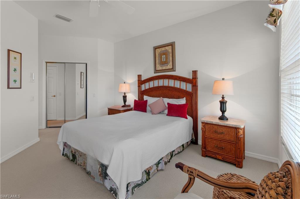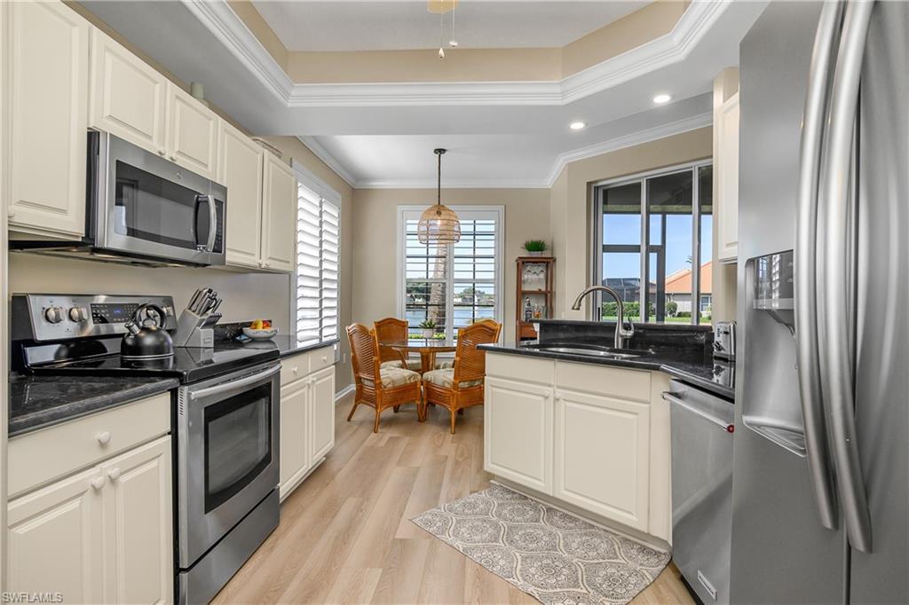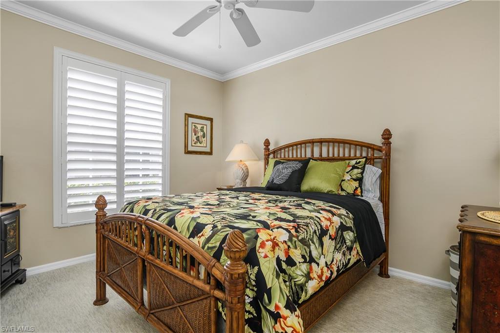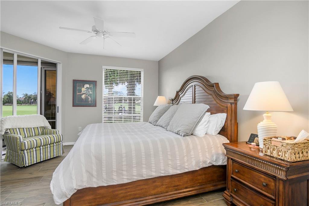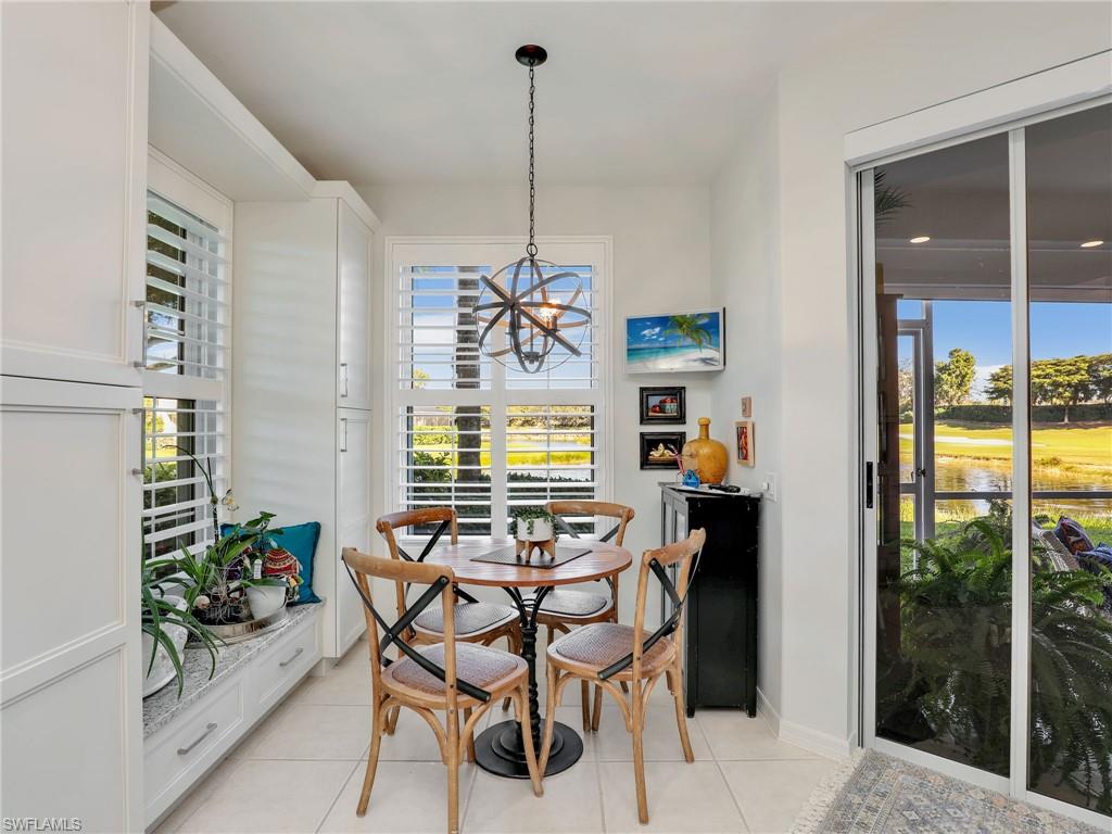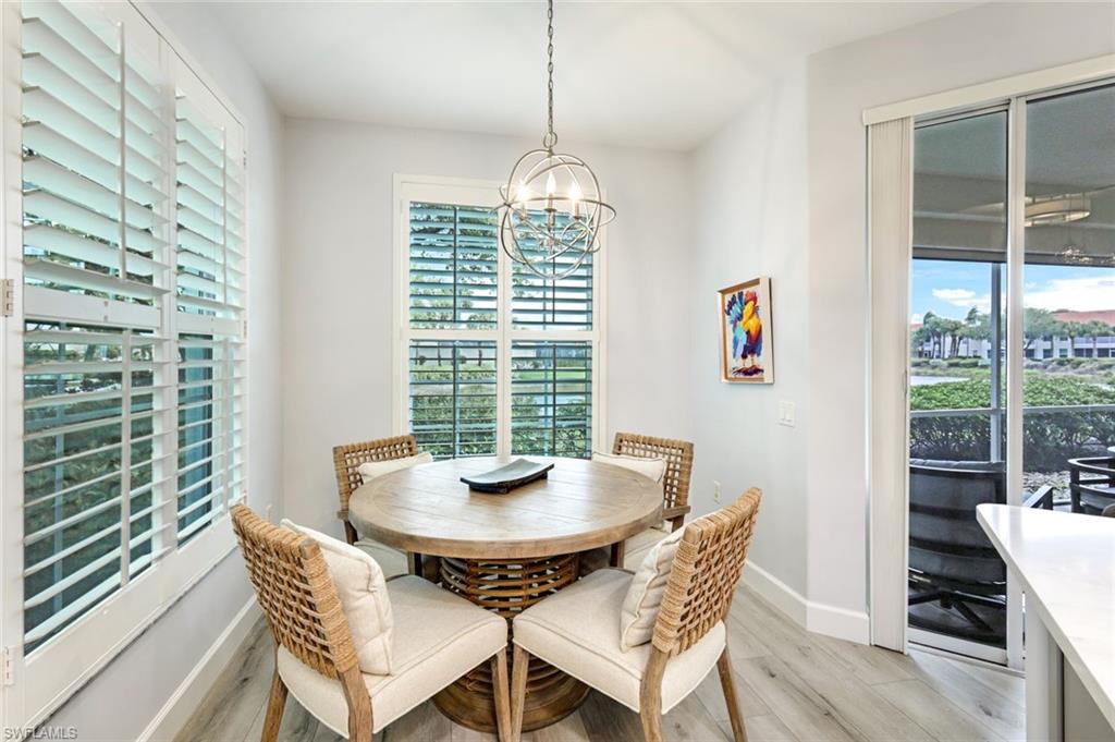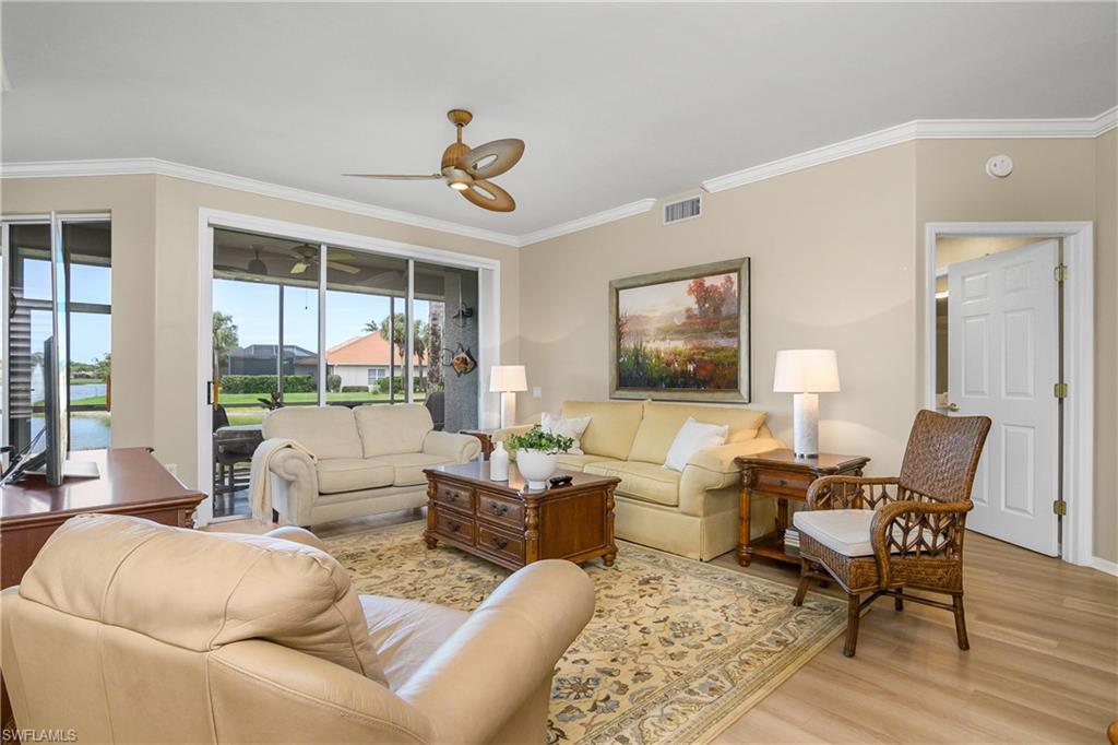 WESTERLY LONG LAKE AND GOLF VIEWS from this sought after first floor end unit in the demand bundled gated golf community of Copperleaf. This beautifully maintained coach home feature 2 bedrooms + den, 2 baths, and a one car attached garage. It is being offered TURNKEY FURNISHED. Updates include newer luxury vinyl tile throughout main living areas and owner's suite and newer carpet in the guest bedroom. The kitchen has newer countertops and appliances. There is crown molding throughout and plantation shutters on all windows except the great room and dinette sliding doors. The guest bath is completely renovated with a walk in shower! You will love the location close to shopping, restaurants, SWFL white sand beaches, and SWFL International Airport. Copperleaf is a premier gated, bundled golf community so as soon as you close on your home, you are an immediate golfing member of one of the finest bundled golf communities SW Florida has to offer. The state of the art new clubhouse with its beautiful dining rooms and bar plus an outdoor bar and restaurant are amazing! You can also enjoy Tennis, bocce, exercise facility, and library on site. Private membership to the Brooks Commons Club is optional and offers a private restaurant, fitness center, pickleball, and events, along with an optional private beach club.