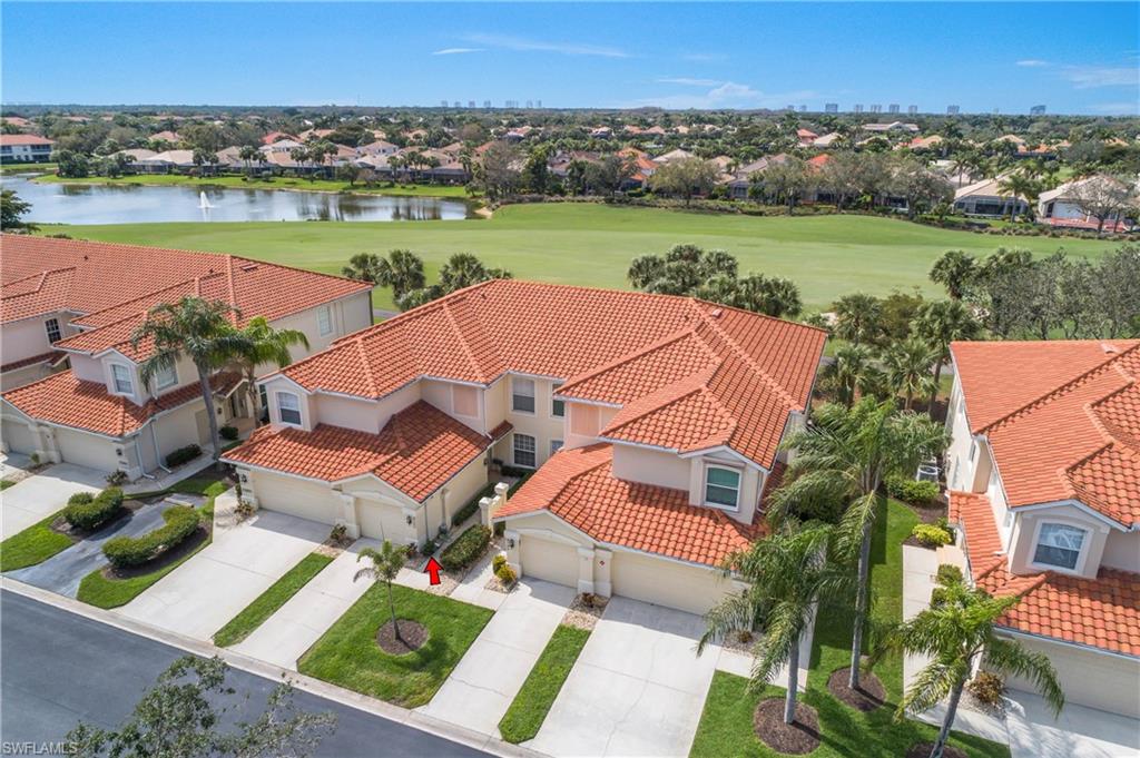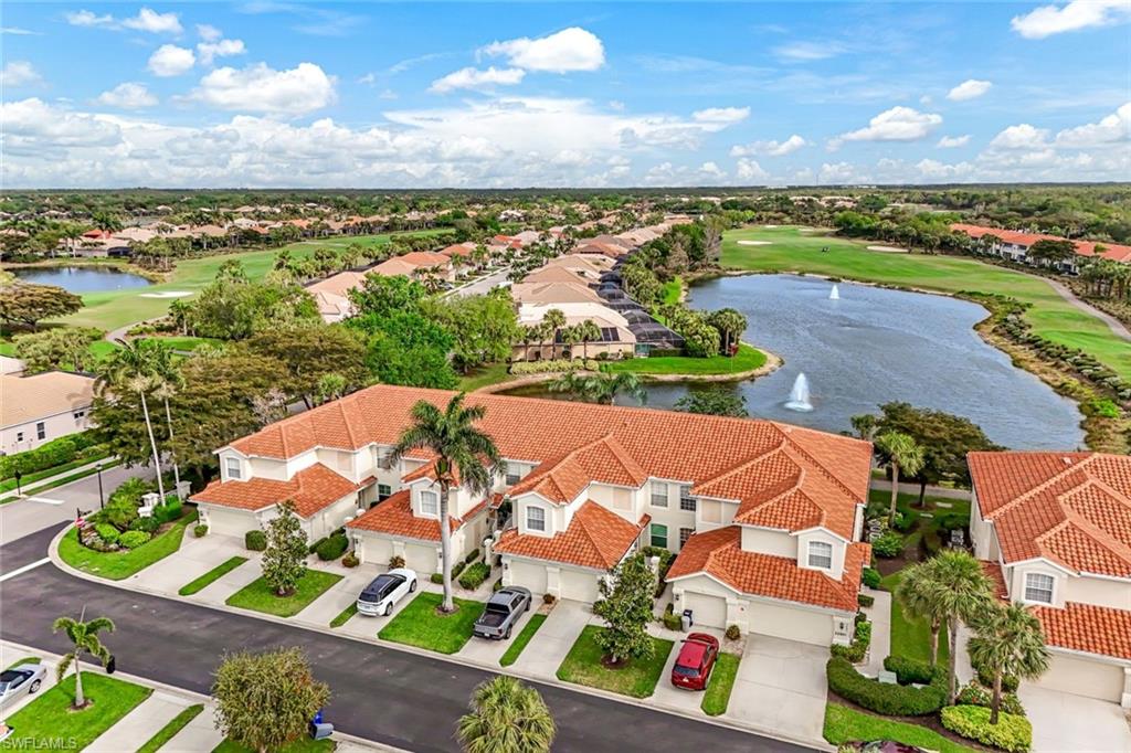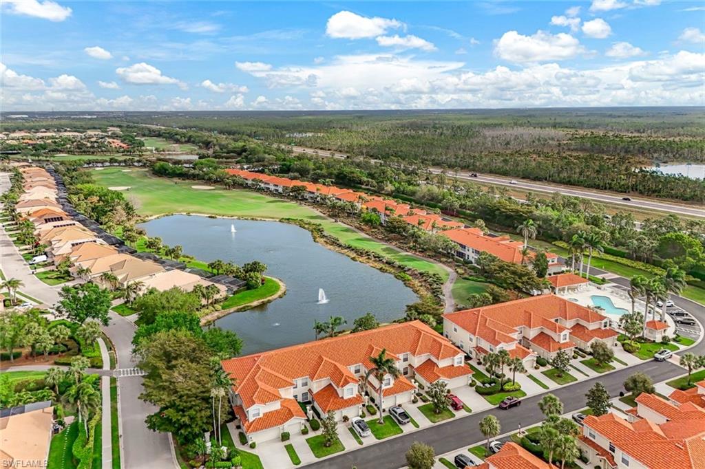 WHAT A VIEW!! of golf course and lake from this ready to move in coach home in the demand bundled golf community of Copperleaf at the Brooks. This freshly painted home features newer vinyl flooring throughout the main living areas, newer appliances and a new roof in 2020. It is truly move in ready just in time for "season". You will love the location close to the community pool along with it's proximity to shopping and dining with Coconut Point Mall approximately 2 miles away plus onsite dining, SW Florida beaches, and SWFL International Airport. Copperleaf is a premier gated, bundled golf community with golf deeded to the home so the day you close, you are a golfing member of one of the finest bundled golf communities SW Florida has to offer. Enjoy it's newly remodeled state of the art clubhouse and restaurants both indoor and outdoor! Private membership to the Commons Club is optional and offers a private restaurant, fitness center, pickleball, events and a private beach club.