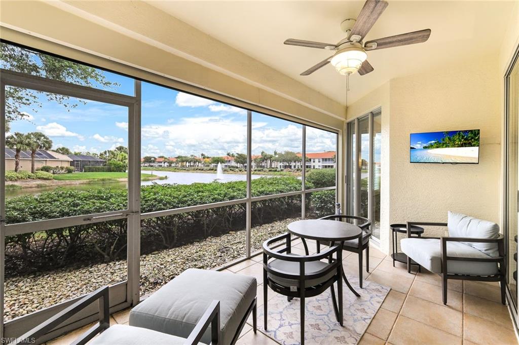 Experience Elevated Living in Copperleaf at The Brooks! Discover the pinnacle of luxury and leisure in Copperleaf at The Brooks, Southwest Florida’s premier low-density bundled golf community. This exquisitely appointed Beautifully and COMPLETELY RENOVATED with all HURRICANE IMPACT WINDOWS and ELECTRIC HURRICANE SHUTTER first-floor TURNKEY furnished residence in Sago Pointe offers breathtaking sunset views over a tranquil pond with a serene water feature your private retreat in paradise. Designed for both elegance and functionality, this spacious 3-bedroom and 2-bath layout is ideal for additional guest accommodations. The chef’s kitchen is a masterpiece, featuring light quartz countertops, soft-close cabinetry, a stylish tiled backsplash, and premium Kitchenaid stainless-steel appliances. The living room offers a focal point tiled feature accent wall and beautiful built in electric fireplace to add the perfect cozy setting to this home! The luxurious primary suite offers private lanai access, expansive his-and-hers walk-in closets, and a spa-like ensuite with a grand walk-in shower, granite countertops, Toto Washlet toilet, and designer fixtures. Additional enhancements include new designer lighting and fans throughout, along with brand-new hurricane impact windows and an electric Storm Smart shutter on the lanai, providing both peace of mind and enhanced privacy. Perfectly situated near the community pool and amenities, this residence offers effortless access to the newly reimagined, state-of-the-art clubhouse, where residents enjoy outdoor dining, championship golf, tennis, bocce, and an exclusive social scene. For an even more elevated experience, membership to The Brooks Commons Club grants access to a private beach club and fine dining. Ideally located near pristine beaches, world-class shopping, fine dining, top-tier medical facilities, and RSW Airport, this is Southwest Florida living at its finest.