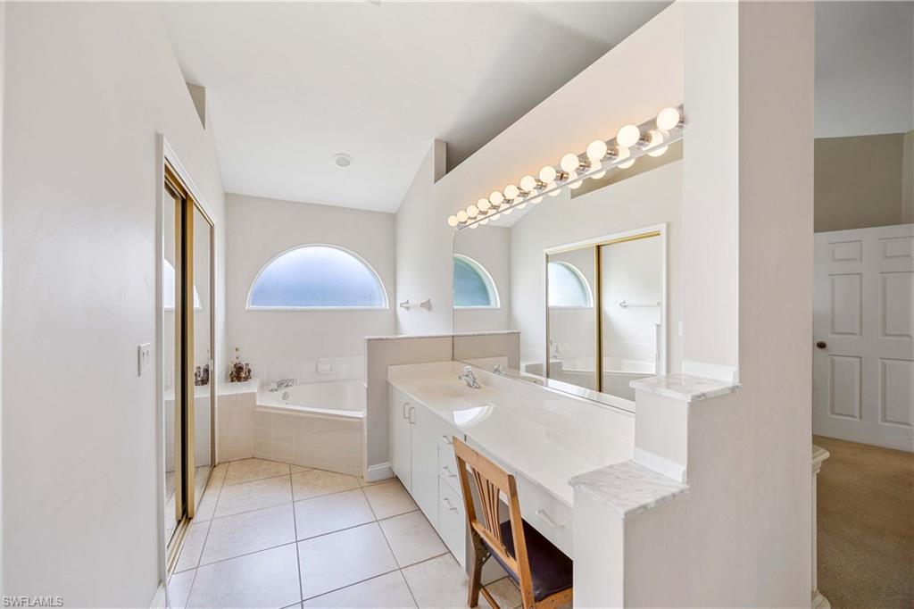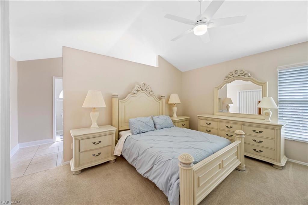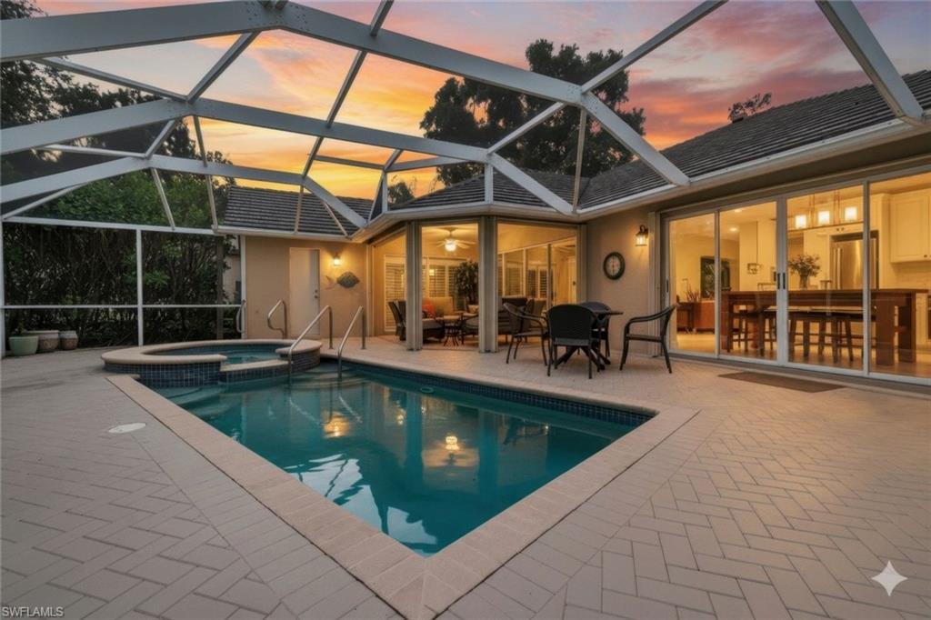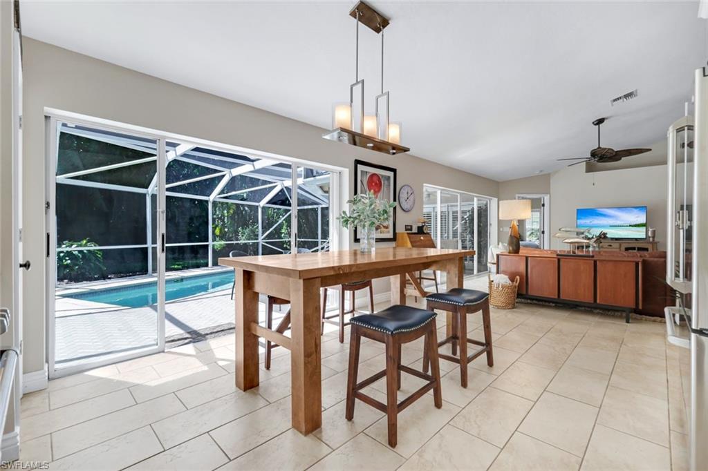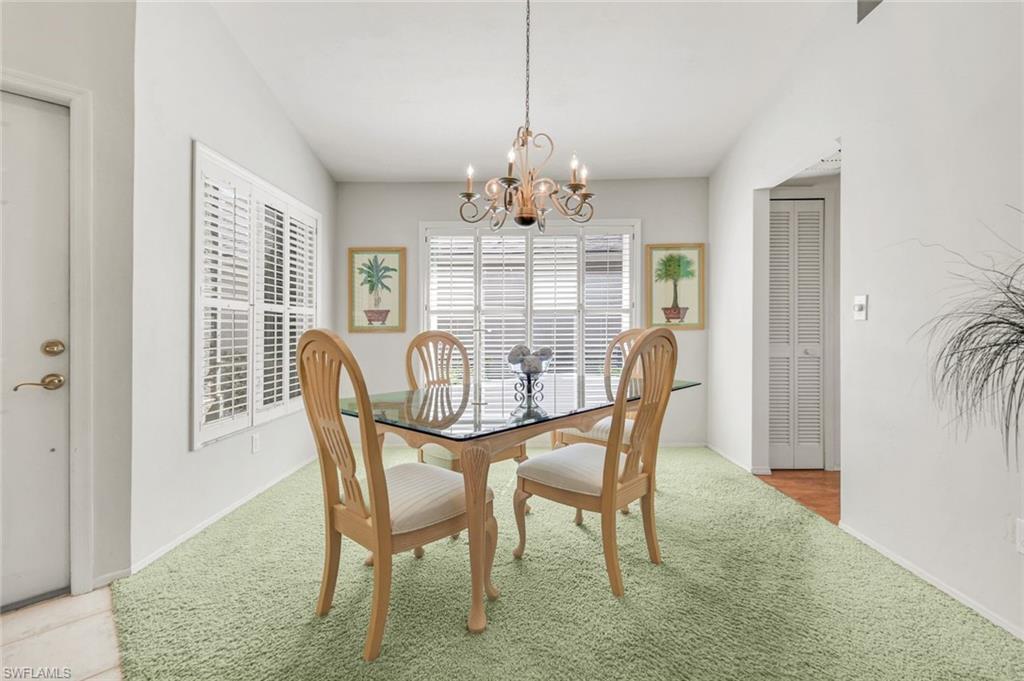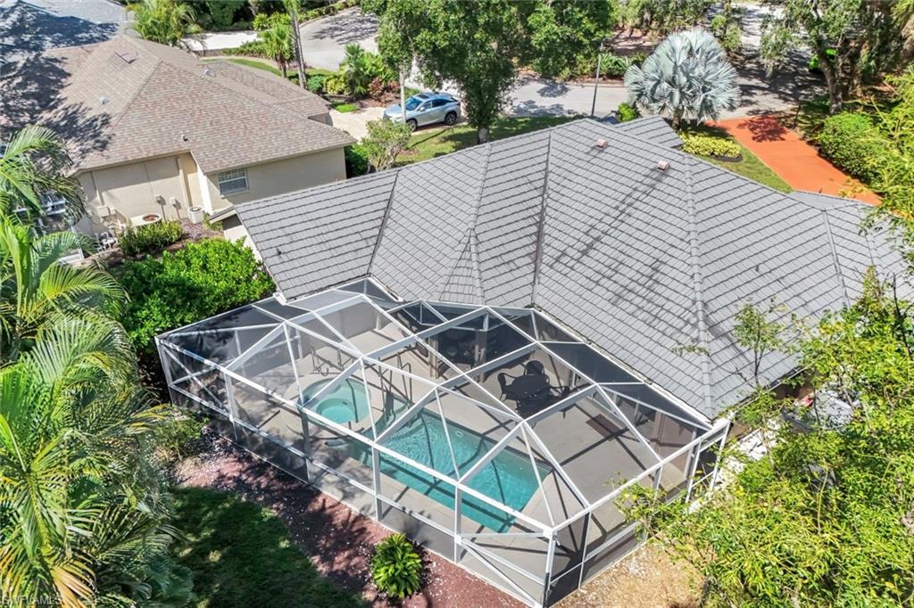 Welcome to one of the largest single-family floor plans in the highly sought-after Country Creek community, right in the heart of the Village of Estero! This was the original Canterbury model home, you'll notice many designer upgrades! This home is located in the premier Estates section and offers just under 2,100 sq. ft. of living space with 3 bedrooms, 2 baths, and a 2-car garage. Situated on a prime end lot with only one neighboring home, this property provides exceptional privacy along with breathtaking golf course and long lake views from your lanai. And the best part? Your very own gorgeous and refreshing pool & hot tub—perfect for relaxing or entertaining! Key features & updates include: - Gorgeous private pool & hot tub for year-round enjoyment. - New shingle roof (2017) for peace of mind. - New refrigerator (2023) to complement the beautiful white kitchen. - Luxury vinyl flooring throughout (2019)—stylish & durable! - Expansive master suite with lanai access, dual sinks, soaking tub & separate shower and large walk-in closet. - Formal dining room & separate breakfast nook—perfect for entertaining! - Hurricane protection for all windows and doors, featuring mostly electric shutters and accordion shutters on select windows for added security and peace of mind. All this in a low-fee, bundled golf community offering golf, a clubhouse, restaurant, 5 tennis courts, 5 swimming pools, bocce ball, a fitness center, and more! Plus, club membership is transferable to renters. Unbeatable location! Just minutes from Coconut Point Mall, Miromar Outlets, and SWFL Airport. This is Florida living at its finest—schedule your private tour today!