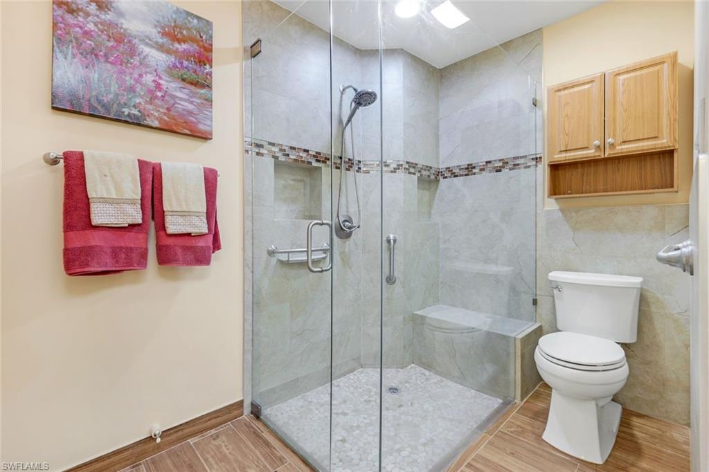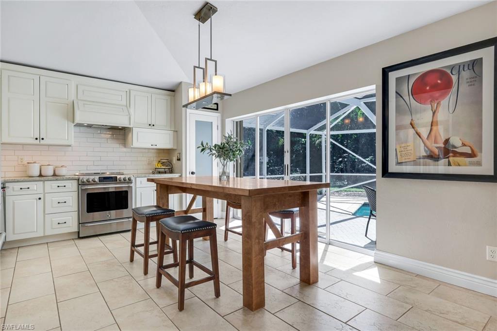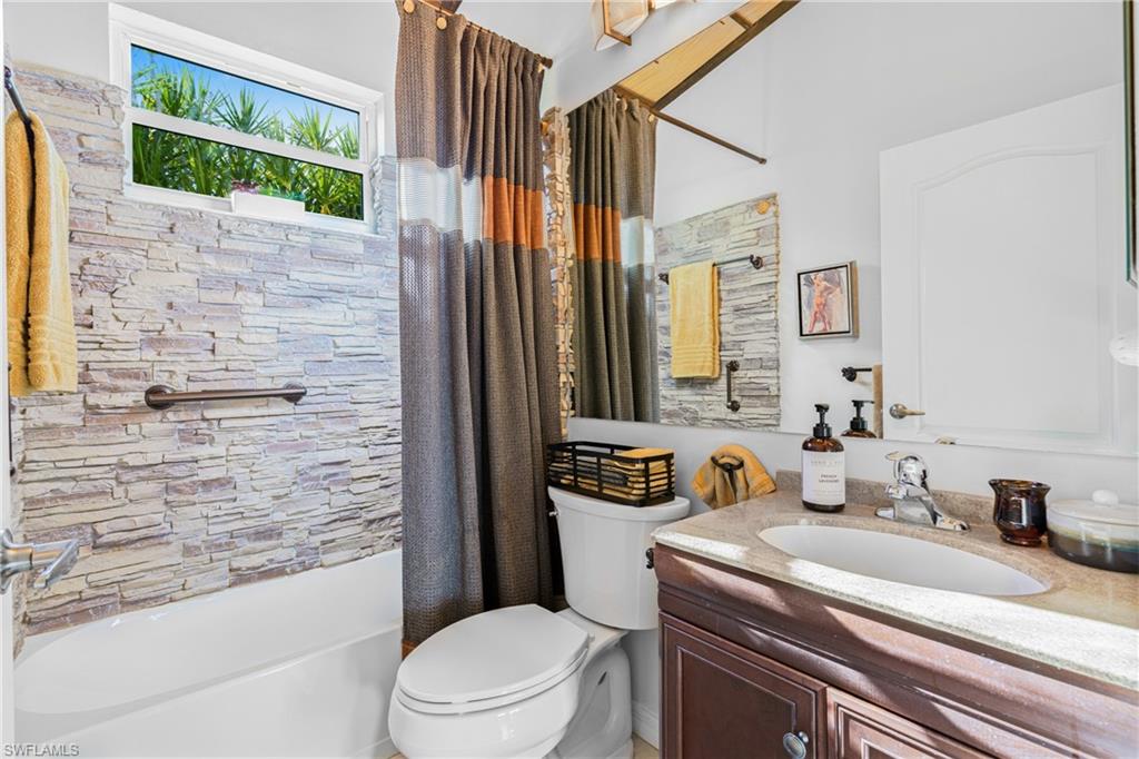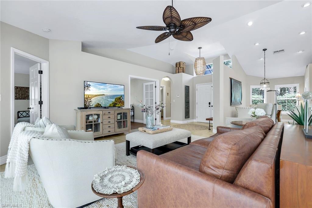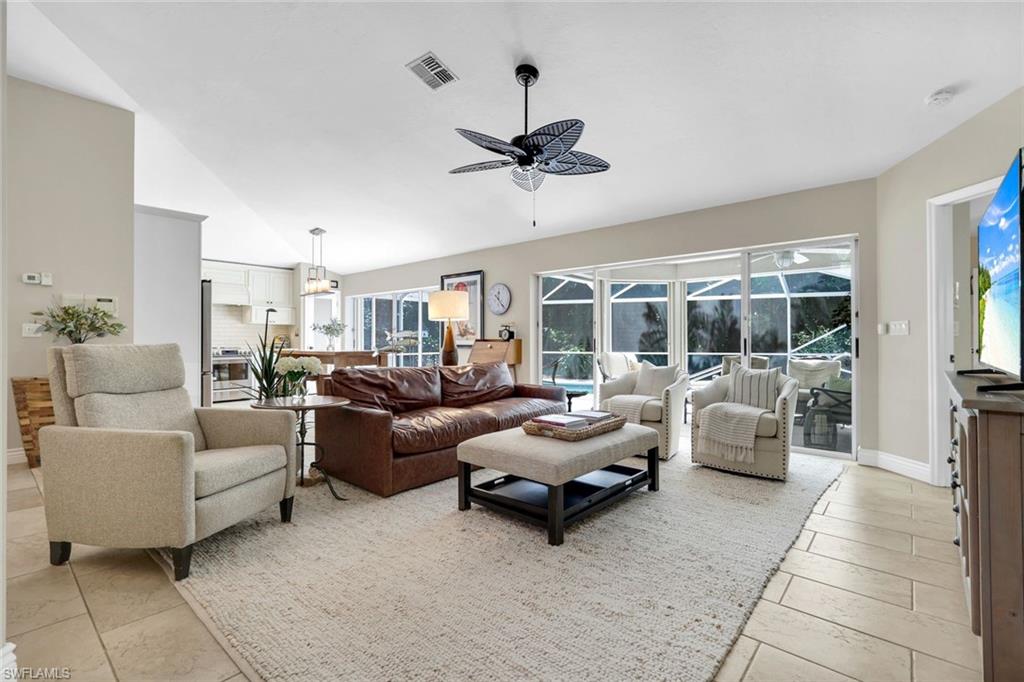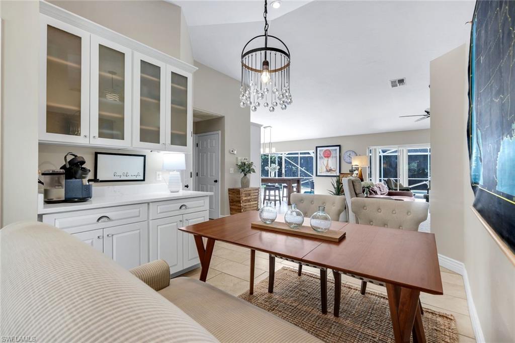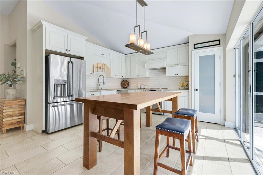Experience refined Florida living at its best in this beautifully remodeled residence tucked away on a serene, tree-lined street in the exclusive Villages at Country Creek. Every detail of this 2-bedroom plus den, 2-bath home has been thoughtfully designed to balance modern elegance with effortless comfort. Step inside to soaring vaulted ceilings, designer lighting, and luxury flooring that flow seamlessly through the open-concept living spaces. The chef’s kitchen has been tastefully updated with high-end cabinetry, quartz countertops, stainless steel appliances, and a stylish backsplash, creating an inviting space to cook, gather, and entertain. The primary suite is a true retreat—featuring a spa-inspired bathroom with dual vanities, frameless glass shower, and custom finishes, along with private access to the lanai. A flexible den provides the perfect setting for a home office, library, or guest room. Outside, your private tropical oasis awaits. The expansive screened lanai showcases a sparkling pool and spa with waterfall feature, surrounded by lush landscaping and tranquil preserve views—ideal for both quiet relaxation and elegant outdoor entertaining. Residents of Country Creek enjoy a bundled-golf lifestyle with access to a championship executive golf course, five resort-style pools, a clubhouse with restaurant and bar, tennis and bocce courts, and a full fitness center. Lawn care, cable, and water are included—so you can focus on living beautifully. Ideally located in the heart of Estero, just minutes from Coconut Point, RSW International Airport, and the Gulf’s pristine beaches, this home combines luxury, leisure, and location in perfect harmony.
