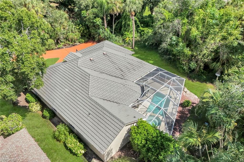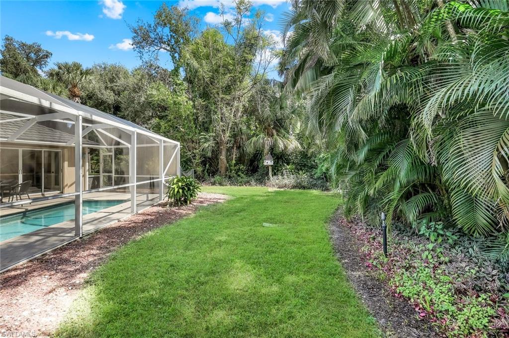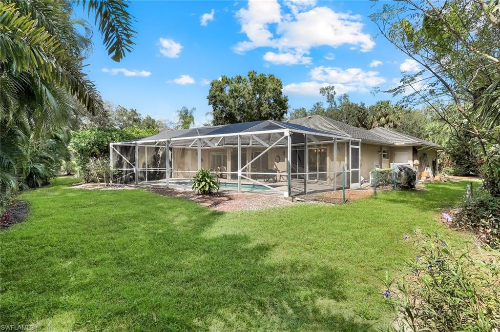 Seeking peace, privacy, and nature? This 4-bedroom, 2-bath home (approx. 2,195 sq. ft.) sits on one of the largest lots in The Villages at Country Creek, with the south branch of the Estero River at the rear of the property. A spacious great room opens to the pool with stackable sliders and lush natural views, and the split-bedroom floor plan offers excellent privacy. Rooms are generously sized. Recent updates include: new roof (2018), 4-ton AC (2020), updated main suite bathroom (2023), new driveway and pool pavers (2022), new kitchen appliances (2024), and new pool pump (2025). You’ll also enjoy 10–12 ft ceilings with crown molding, double insulation, ceiling fans throughout, impact windows in the kitchen dining area, front bedroom and front dining room, plus an in-ground irrigation system. Two electric shutters across the back patio and manual shutters for remaining windows. Internet and cable are included in the quarterly dues. The Villages at Country Creek offers a challenging golf course in great condition, multiple pools, tennis, bocce, and a clubhouse with social activities. Conveniently located in growing Estero, you’re close to RSW airport and extensive shopping and dining.