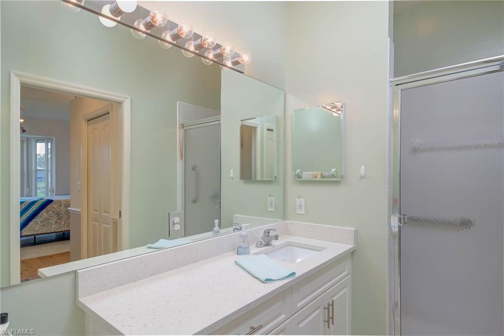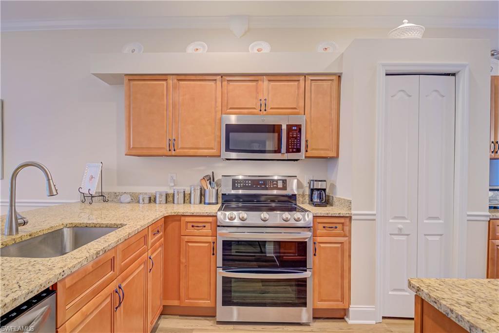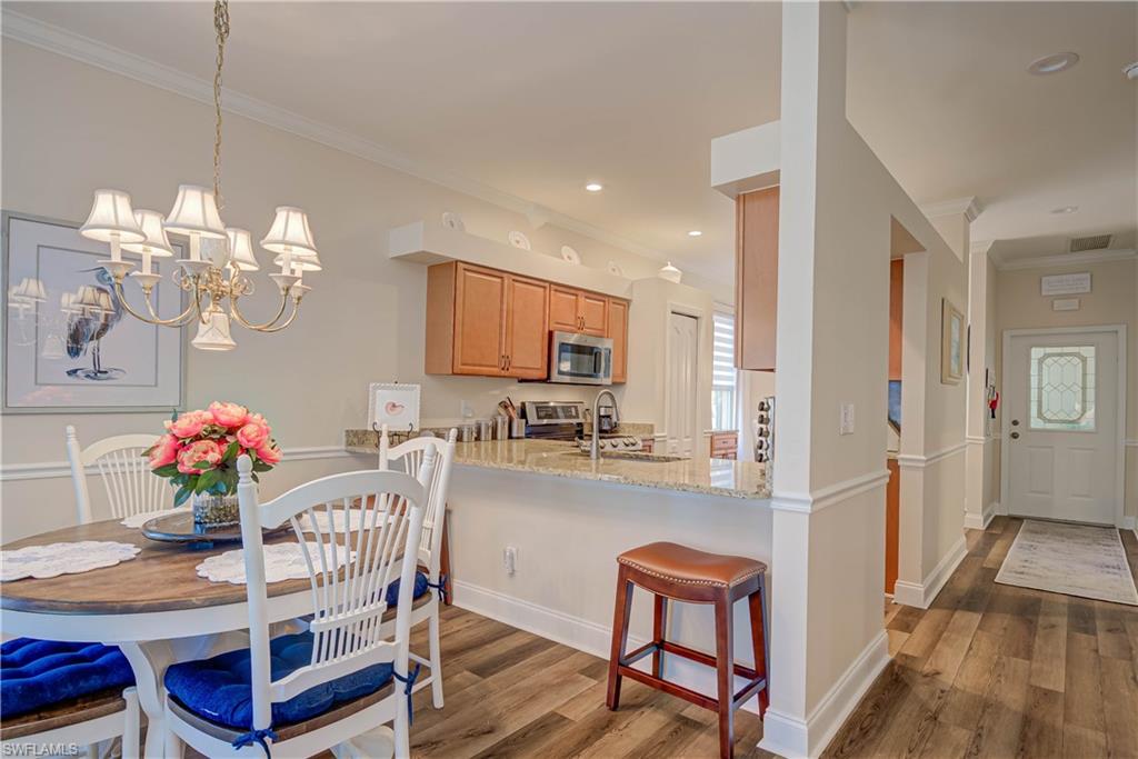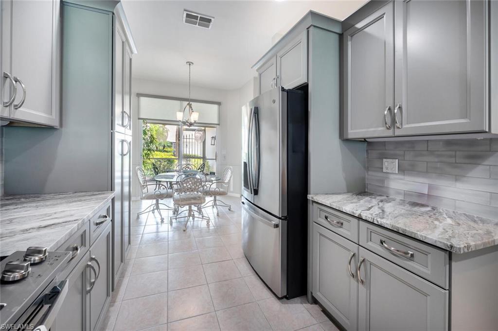 Beautifully updated end unit villa in Country Creek – A Rare Find! This stunning, move-in-ready villa in the highly sought- after Country Creek community offers two bedrooms, a den, two bathrooms, and a spacious two-car garage. Priced to sell, this end unit with a two-car garage is rarely available and boasts numerous high-end upgrades.The flooring throughout the home has been completely redone with luxury vinyl for a warm plank wood finish, while the entrance-way, back lanai, and bathrooms feature tile wood finish flooring. The kitchen is beautifully remodeled with white soft-close cabinets, a custom-built double pantry with pullout drawers, quartz countertops, a stylish backsplash, and stainless steel appliances. The open-concept design seamlessly connects the kitchen to the living room, creating an inviting space for entertaining. The lanai has been enclosed and remodeled to increase square footage, featuring added insulation and air conditioning for year-round comfort. All windows have been upgraded to hurricane-impact resistant glass for peace of mind. Both bathrooms have been updated with white-cabinetry, luxury quartz countertops, and new comfort-height toilets. The master bathroom features a stunning floor-to-ceiling tiled shower. Additional features include Levelor remote control shades in the kitchen and living room, as well as custom shades in the enclosed lanai. A split-bedroom layout provides privacy for guests, enhanced by convenient sliding pocket doors. This villa also comes with a new high- efficiency 16 SEER AC unit (installed in 2022)--all entailed, these upgrades prove to be a significant investment of approximately $100,000. Country Creek is a vibrant, resort-style community offering bundled golf, where residents can play for a low fee, including a golf cart. The on-site country club features a restaurant and bar with an in-house chef, offering delicious meals at reasonable prices. Additional recreational amenities include tennis, bocce ball, and a workout facility, and five pools throughout the community, including a large, near Olympic-size pool located near the club house catering to an active lifestyle. Ideally located, this home is just minutes from Coconut Point, Miromar Outlets, Florida Gulf Coast University, a community park, and a variety of dining options. Southwest Florida International Airport and other key attractions are also nearby , making this villa the perfect combination of comfort, style, and convenience. Schedule your private showing today and experience everything Country Creek has to offer! Home is not in a flood zone.
