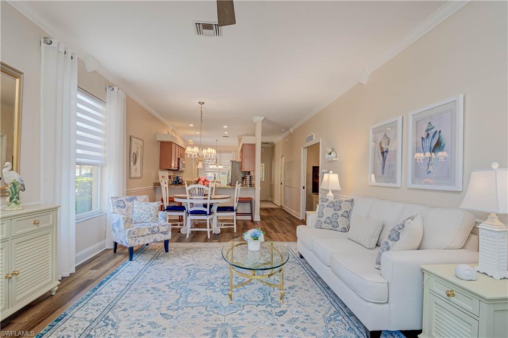 RARE FIND - Luxury at its finest! Everything you've hoped for in your SW Florida dream home can be found in this elegantly appointed Duplex-style Villa. Pristine and doused in natural light, this enchanting home offers comfort in high style. Every inch of decorative space has been thoughtfully chosen from the luxury plush vinyl flooring to the graceful white cornices adorning designer fashion window treatments. Kitchen has luscious new warm-tone cabinetry, additional built-in cupboard space, granite countertops, stainless steel appliances, beautiful light-filled windows dripping with carefully chosen fine draperies and beautifully carved cornices. Light and delicate tones seep into every corner of pristine living space from your moment of entry to the updated bathrooms, New kitchen, New bathrooms, New A/C, hurricane shutters throughout, den and 2-car garage. Enjoy the view of the 4th hole from your screened lanai. All this set in the much sought-after Villages at Country Creek where you can enjoy an 18-hole bundled golf course, men's and women's golf leagues, tennis and bocce leagues, 5 pools, spa, and fitness center. Enjoy Sunday brunch at the clubhouse or lunch and a refreshing beverage on our New outdoor patio! A vibrant full-service restaurant and clubhouse celebrate all of your favorite holidays and activities including numerous volunteer groups, book clubs, knitting circles and card clubs. Location is perfect nestled between Naples and Ft. Myers and is minutes from RSW airport, post office, library, casual and fine dining, Coconut Point and Miramar Outlets and, of course, the beautiful beaches of Southwest Florida. This home is a true gem...and it is furnished!