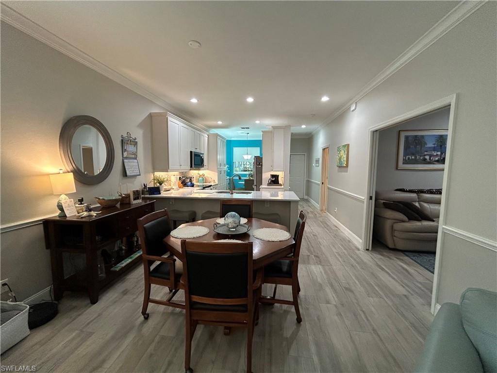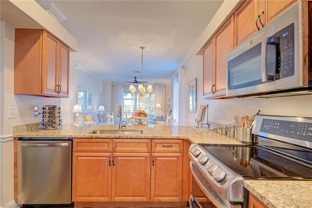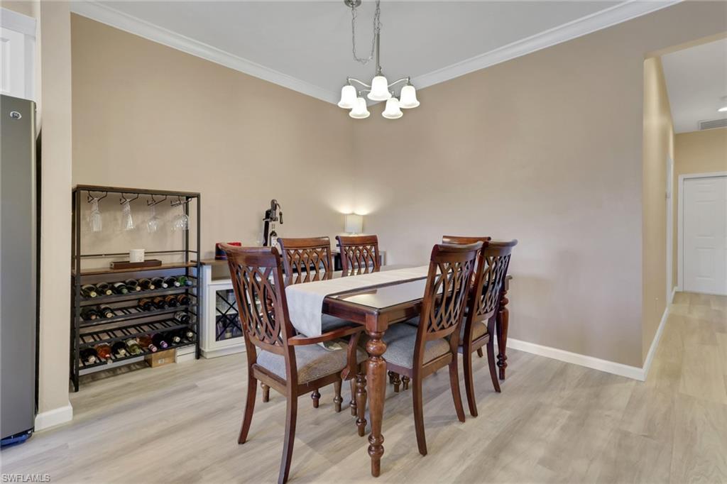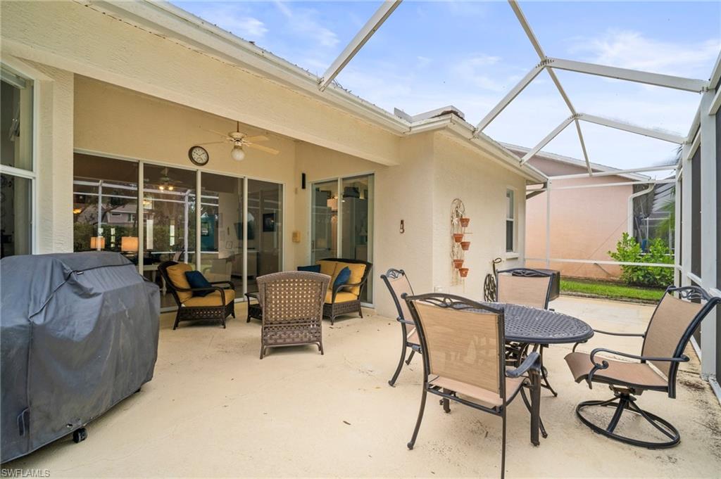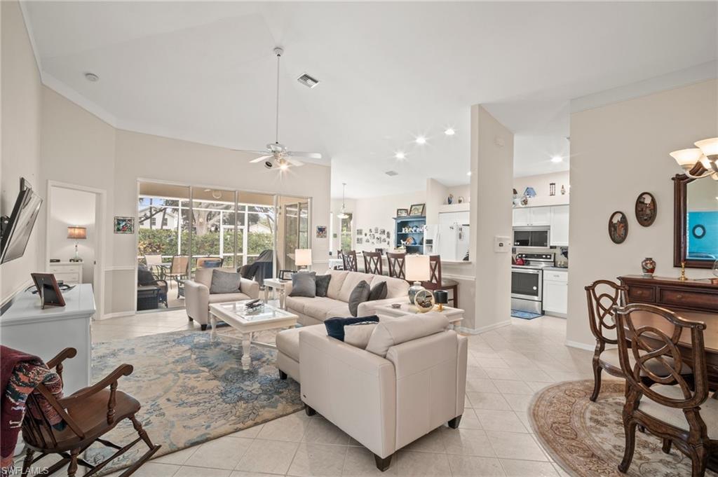 Enjoy beautiful fountain views of the 10th and 11th fairway from your private lanai! This unique layout with a Great Room design offers ample open space for your maximum entertainment pleasure. Updates and amenities include center island kitchen with granite countertops, stainless steel appliances, updated bathroom vanities with granite countertops, crown molding, tile floors throughout, newer A/C, brand new hot water tank 2025, automatic Hurricane shade and impact windows! The Villages at Country Creek is a much sought-after 18-hole bundled golf community and offers men's and women's golf, tennis and bocce leagues, Wii bowling, 5 pools, a spa for 10, fitness center, card clubs, numerous volunteer groups and a vibrant, full-service restaurant and bar celebrating all of your favorite holidays and activities. Enjoy Sunday brunch at the clubhouse, or a refreshing beverage after golf at our new outdoor patio. Location is ideal nestled between Naples and Ft. Myers and is minutes from RSW airport, post office, library, casual and fine dining, Coconut Point and Miramar Outlets and, of course, the beautiful beaches of Southwest Florida. Offered Turnkey.