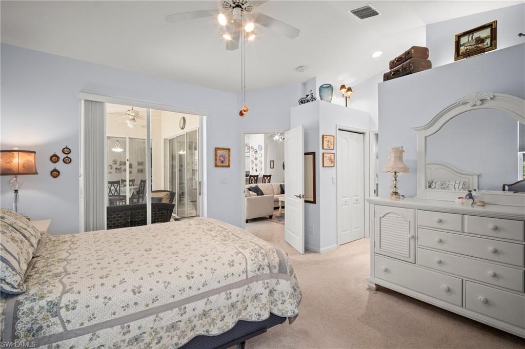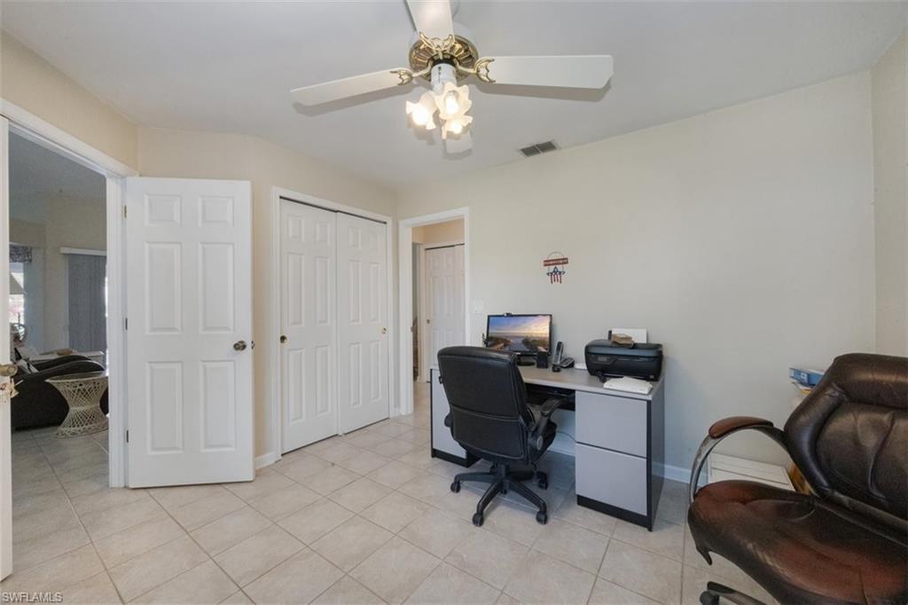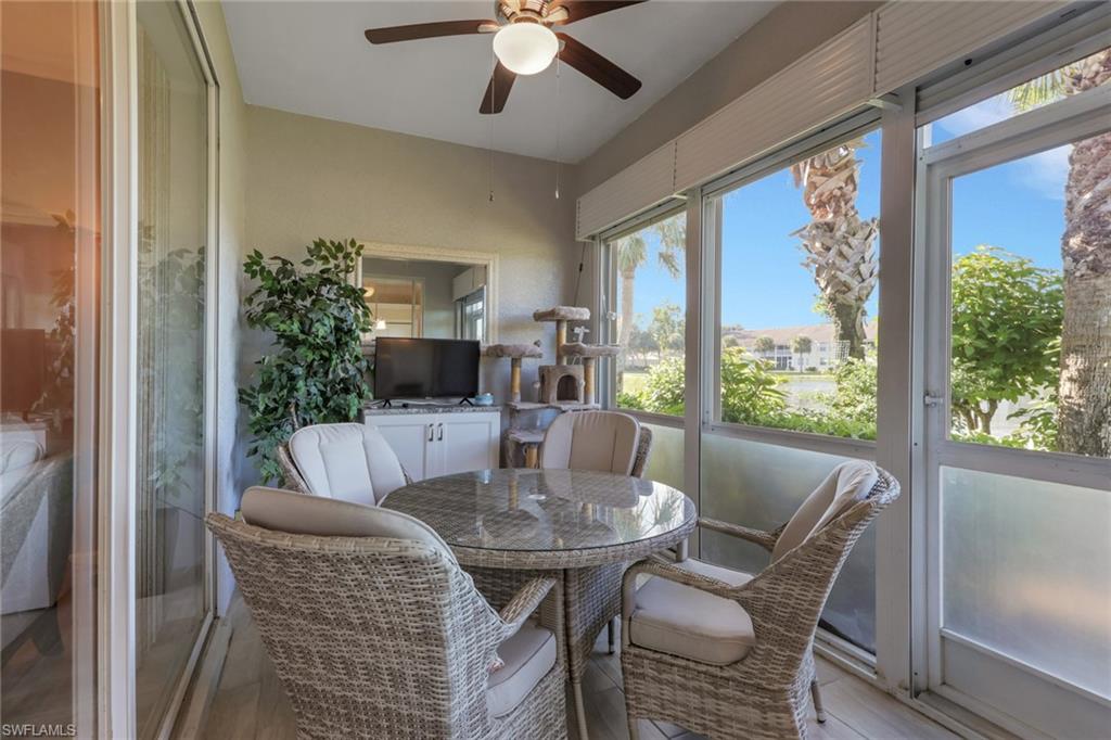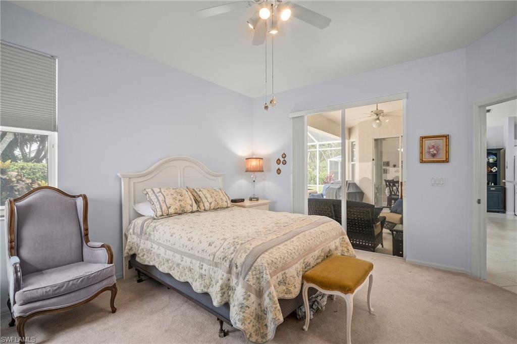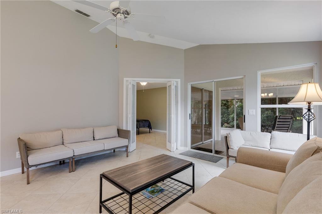 This beautifully maintained 2-bedroom + den single-family home offers an exceptional lakefront view, perfect for enjoying the peaceful Florida sunshine right from your enclosed lanai. Priced well below most homes in Country Creek, this furnished, turnkey residence is ready for you to move in and start living the Florida good life. Inside, the home boasts an open-concept layout that seamlessly connects the kitchenette, living room, and master bedroom to the outdoor lanai, creating a bright and airy space ideal for entertaining or simply relaxing. Natural light floods every corner of the home, enhancing its welcoming ambiance. The master suite features a large walk-in closet, while the den—equipped with pocket doors and a sofa bed—easily serves as a third bedroom, home office, or multipurpose room. Located just a short walk from the heated community pool, this home is perfectly situated within the vibrant, resort-style neighborhood of Country Creek. Residents enjoy bundled golf with low fees, golf cart access, and a variety of amenities including tennis, bocce ball, and a well-equipped fitness center. The on-site country club adds to the charm with a full-service restaurant and bar, fostering a friendly and social atmosphere. Conveniently located in Estero, this home is just minutes from Coconut Point, Miromar Outlets, beautiful Gulf beaches, and a wide range of shopping, dining, and entertainment options. You’ll also be close to Southwest Florida International Airport, the post office, and Estero Community Park, making this an ideal location for full-time or seasonal residents alike. This home is the perfect blend of comfort, style, and community living. Schedule your private showing today, and start enjoying everything that Country Creek has to offer!