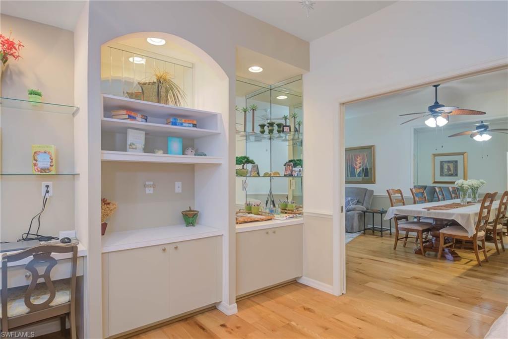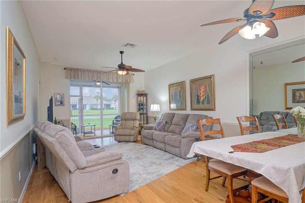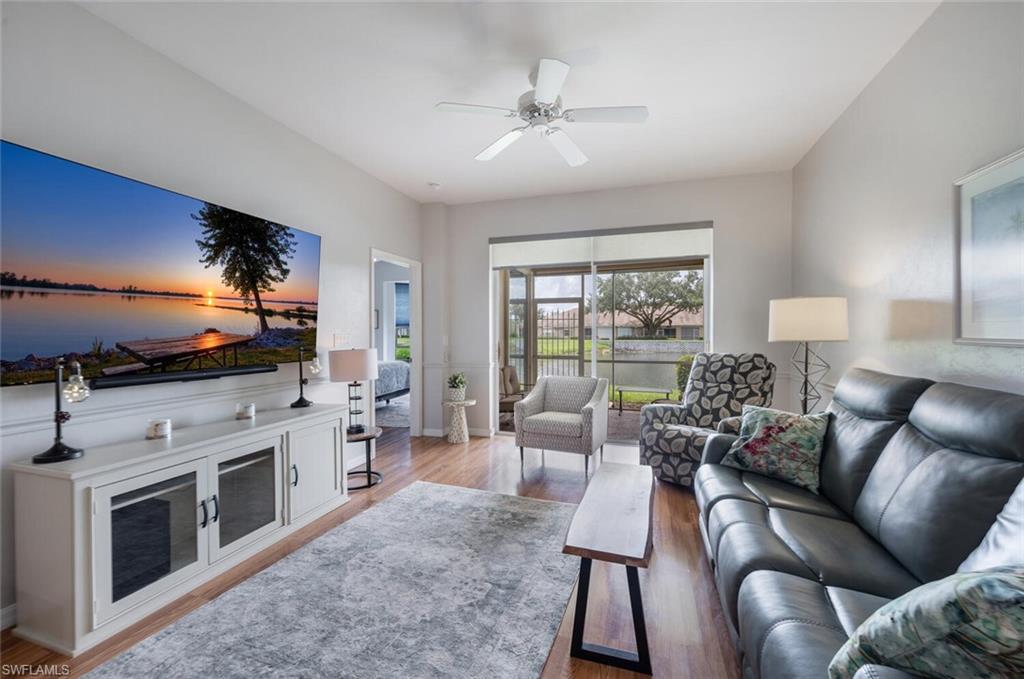 WATER VIEWS AND GOLF COURSE VIEWS, UPDATED KITCHEN AND BATHS, AND GOLF INCLUDED! Welcome to your refined retreat in the heart of Country Creek, Estero’s premier golf course community. This fully renovated 2-bedroom plus den villa offers a seamless blend of modern updates and timeless comfort. The home features a beautifully redesigned kitchen with upgraded cabinetry, sleek countertops, and stainless steel appliances, along with tastefully remodeled bathrooms that reflect a clean, contemporary aesthetic. Gorgeous wood flooring flows throughout, enhancing the home’s warmth and sophistication, while the spacious den provides a versatile area ideal for a home office or guest accommodations. The screened lanai invites you to relax and enjoy serene, park-like views of the lake, water features, mature trees, and the manicured golf course. An oversized attached garage adds both convenience and additional storage, and the home has been impeccably maintained and is move-in ready. The Villages at Country Creek is a vibrant, amenity-rich community featuring a newly renovated 18-hole golf course, resort-style pools, tennis and pickleball courts, on-site dining, and a full calendar of social events. Perfectly located between Naples and Fort Myers, residents enjoy close proximity to RSW International Airport, I-75, shopping, dining, and Southwest Florida’s renowned beaches. This thoughtfully updated villa offers an exceptional opportunity to enjoy elegant, low-maintenance living in one of Estero’s most desirable lifestyle communities.