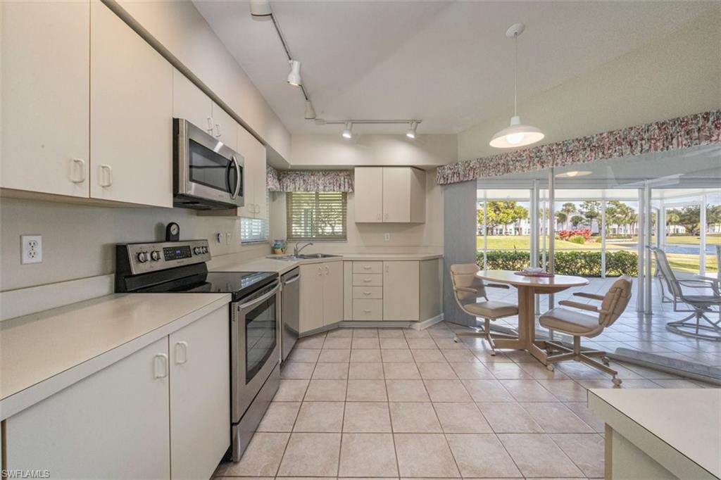Bundled golf with WATER and GOLF COURSE VIEWS plus updated kitchen and baths? Absolutely! This well-manicured and maturely landscaped golf community is located in the heart of Estero, with convenient access to both I-75 and Tamiami Trail. This renovated 2-bedroom villa offers current and tasteful updates, featuring granite countertops with a protective seal in the kitchen, additional storage in kitchen island, stainless steel farm sink, luxury vinyl plank flooring in the general living areas, updated soft-close cabinets and drawers in the kitchen and the bathrooms, quartz countertops in the bathrooms and a newer A/C unit. With 2 screened-in lanai areas, you will be able to glide into your day or wind-down as you like, enjoying the views of the lake and water feature as well as the beautifully landscaped grounds. A one-car garage with interior access provides convenience. This particular unit is also close to the smaller community pool for quick, morning or evening swims. Upon viewing, you will see just how well-maintained this unit has been. Country Creek is an amenity-rich community featuring a newly renovated 18-hole golf course, resort-style pools, tennis courts, on-site dining, and a full calendar of social events. Perfectly located between Naples and Fort Myers, residents enjoy close proximity to RSW International Airport, shopping, dining, and Southwest Florida’s renowned beaches. If you want a golf community without the expense of equity, this is a must-see.