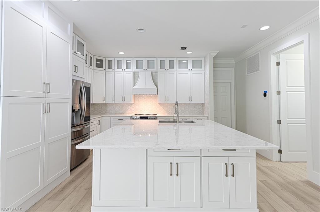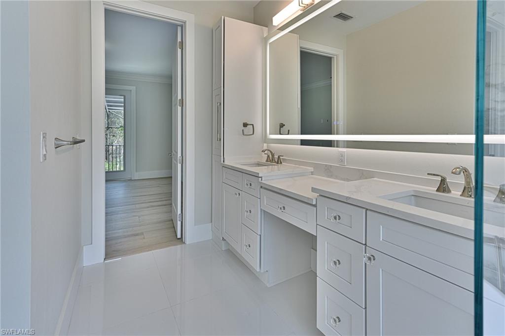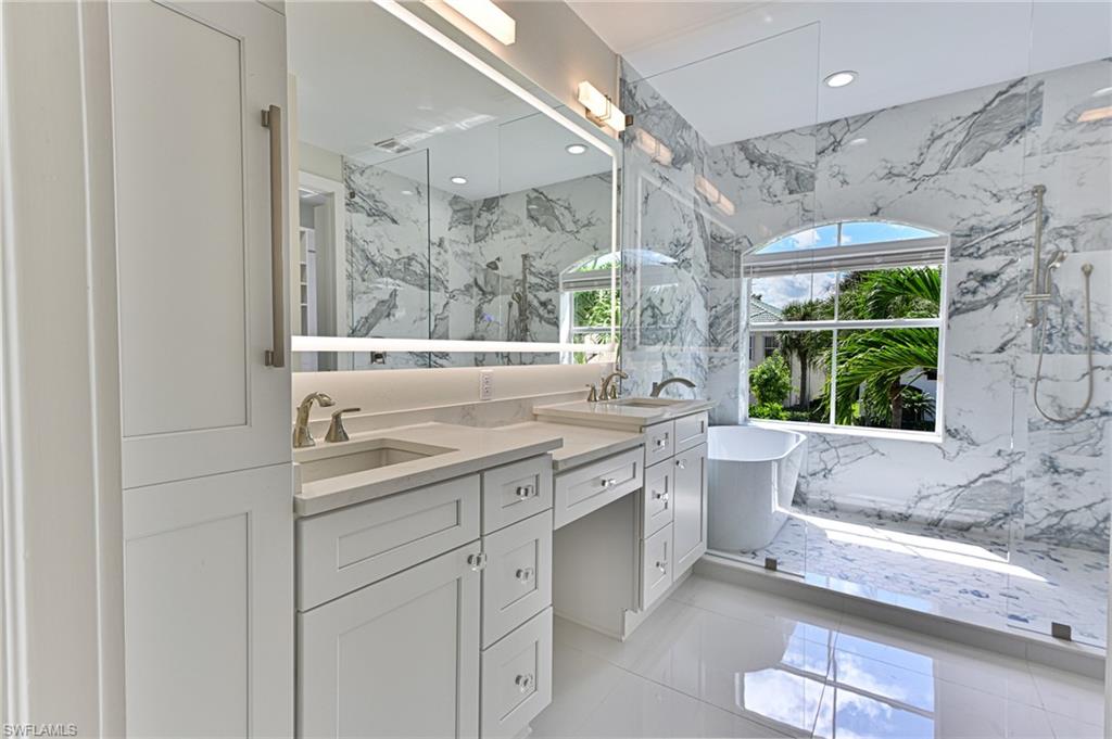 This Riverfront home in the gated community of the Estates of Estero River offers it all: a reimagined and renovated open floor plan with 3,168 AC space and 5,023 total living space that is finished in a light coastal style with 5 bedrooms, 4 baths + den/office and a 3 car garage, an outdoor lanai with 2 story screened in tropical pool & spa, summer kitchen with gas grill, refrigerator, fireplace with TV provisions above, pool bath and all with one of the most private riverfront nature settings imaginable featuring mature privacy hedges, live oaks, palm trees and beautiful Bamboo island across the river, and maybe best of all is its convenient location to everything - shopping, dining, entertainment, golf plus the opportunity to kayak or row boat with electric motor down the Estero river to the beautiful Estero Bay. The all new kitchen with large sit at island is open to the dining area, living room, large family room and the lanai & pool. It offers all new appliances including glass door counter depth refrigerator, microwave drawer, cabinetry to the ceiling, quartzite countertops and marble backsplash. The large laundry is conveniently located off the kitchen as is the 3 car garage with a tiled floor. The powder bath has a tiled wall, custom vanity, lighted mirror and is located off the family room. The master bedroom suite features a private deck overlooking the pool, spa and the private riverfront nature. The master bath features his and her sink cabinetry + her sit at vanity and a 80” lighted mirror. The wall to wall glass shower features the soaking tub in the shower stall with floor to ceiling porcelain tile. The large master closet is complete with custom cabinetry and a full length lighted mirror. The two bedrooms with Jack and Jill bath features a custom cabinet built in closet with sit at desk in each room and a beautiful bath convenient to both. The oversized VIP bedroom features access to outdoor deck, large closet with built-ins and a luxury bath with separate his and her sink areas plus her sit at vanity. The fifth bedroom has a large window wall over looking the deck and private back yard. The quality of the finishes and selections are well above those for a typical house in this price range and include: millwork including 10” base moldings, crown moldings, ship lap and tongue & groove, solid doors, new flooring throughout, new paint, new light fixtures, new plumbing fixtures, new hardware, blinds/shades and more. Why live east of 75 when you can have everything you could want in a home and be close to everything. HOA fees are low, too. This is a one Owner property that was purchased from the Developer (he was originally going to keep for himself).