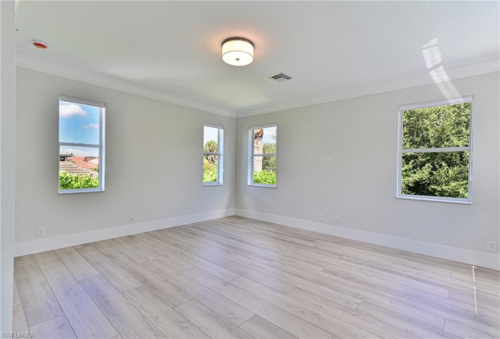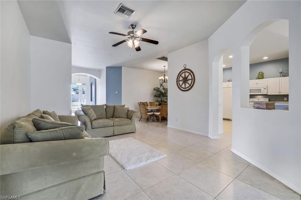 Welcome to The Estates at Estero River, located close to Route 41, I-75, the town recreation center, and shopping within walking distance! This spacious 3,582 SF residence offers the perfect blend of modern upgrades, privacy, and room to grow. Featuring 5 bedrooms, including a main-floor den that can serve as a guest suite, plus a very large bonus room, this home sits on an oversized pie-shaped lot with ample space to add a custom pool. Enjoy peace of mind with a brand-new clay tile roof (2024), Simonton impact windows (2023), and a new water heater (2023). Inside, the freshly painted open floor plan boasts a chef’s kitchen with maple cabinetry, quartz/silestone counters, marble backsplash, Samsung appliances, and a Bosch dishwasher. The main level boasts tile and elegant crown molding, while the upstairs flooring is laminate. The expansive master suite includes dual sinks, a garden tub, walk-in closet, and separate shower. Three additional second floor bedrooms—two with walk-in closets—provide plenty of space for family or guests. Step outside to a screened lanai and a private backyard with lush fruit trees including mango, lemon, grapefruit, starfruit, pomegranate, banana, and orange. The 3-car garage has a large driveway that fits up to 9 vehicles. Best of all, no flood insurance is required. The gated community offers exceptionally low HOA fees and a private canoe launch—and this home even comes with a canoe! Move-in ready with major upgrades already done—don’t miss this rare opportunity in one of Estero’s most sought-after neighborhoods.