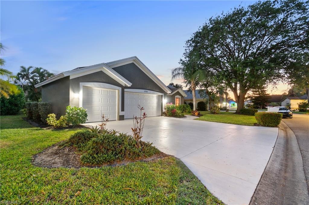 3 CAR GARAGE!!!!!!!!!!!! Absolutely beautiful home! Neat and clean with a private deep lot! This home is located in the beautiful Fountain Lakes Community located across the street from Coconut Point. LOW HOA fees include PICKLEBALL, Golf, pool, clubhouse, bocci ball, tennis courts and more! Home features a newer roof installed in 2020, NO POLY PIPE HERE, and a new paver driveway with a walkway to the yard and patio being installed this week. Bright open floor plan with separate dining for special occasion (currently used as a den) and a large kitchen and living room and family room for entertainment The bedrooms are good sized featuring lots of storage space and efficient closetspace. No need for a basement when you have a 3 CAR GARAGE! EASY TO SHOW