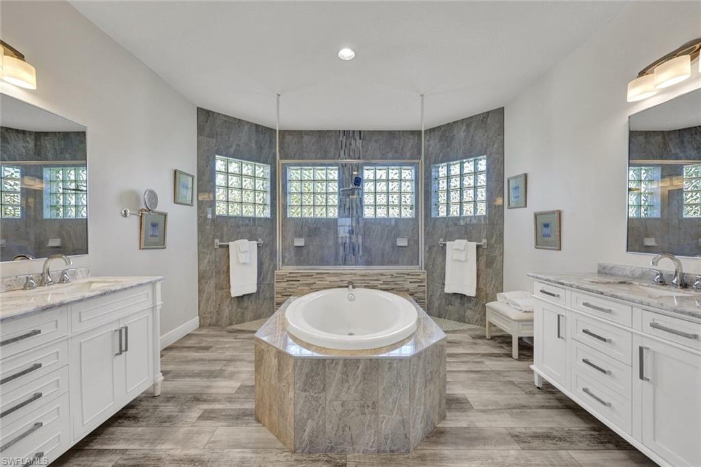 Welcome to your beautifully refreshed oasis in Fountain Lakes—the perfect move-in ready home that can be bought furnished located in this mature, gated BUNDLED GOLF community with low HOA fees and a prime location west of US-41. LOCATION LOCATION- near residents only gate in the large community, giving easy access to enter and exit community much quicker and with a light to turn left. This beautiful home has been extensively updated in 2021 with nearly every major feature replaced or enhanced, offering peace of mind and modern comfort for years to come. The updates include a new roof, A/C system, and hot water tank, all replaced in 2021. The home has been freshly painted throughout in a neutral palette and features new luxury vinyl plank flooring that flows seamlessly through every room. The kitchen boasts granite countertops, a large walk-in pantry, and newer stainless-steel appliances (2021). Step inside and enjoy the vaulted ceilings and open-concept floor plan that connects the living, dining, and kitchen areas—perfect for entertaining or everyday living. The Owner’s Suite is privately situated and with sliding door access to the lanai, adding to its spacious feel, and a completely reimagined master bathroom fit for a king or queen with dual vanities and elegant modern finishes. Two additional bedrooms and an updated guest bathroom are located on the opposite side of the home, providing comfort and privacy for family or guests. The den, accented with glass French doors, offers flexibility for an office, reading room, or media space. Abundant closet space, a convenient laundry room off the kitchen, and an oversized two-car garage add to the home’s everyday functionality. Enjoy the Florida lifestyle outdoors on your extended screened lanai, added in 2021 with beautiful brick pavers and a relaxing six-person hot tub. The mature landscaping, maintained with a full irrigation system, provides curb appeal and a sense of tranquility. The spacious backyard offers room for a pool if desired. Fountain Lakes is one of Estero’s most desirable and established gated communities, known for its convenient location west of US-41, close to shopping (Coconut Point Mall), dining, Airport (Fort Myers/RSW) and beaches (Bonita Beach, Naples Beaches). Residents enjoy a 9-hole par-3 golf course, tennis, pickleball, bocce, shuffleboard, fitness center, clubhouse, community pool and more—all included with low HOA fees. Don’t miss your chance to own this stunning, fully updated home in Fountain Lakes—a rare find combining quality, comfort, and value in the heart of Estero.