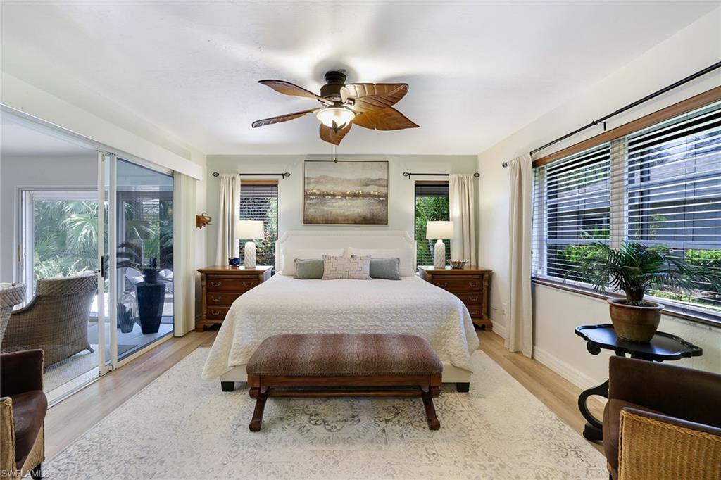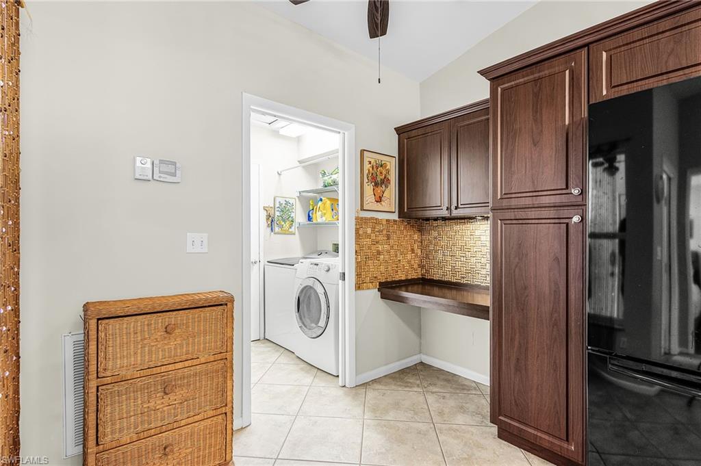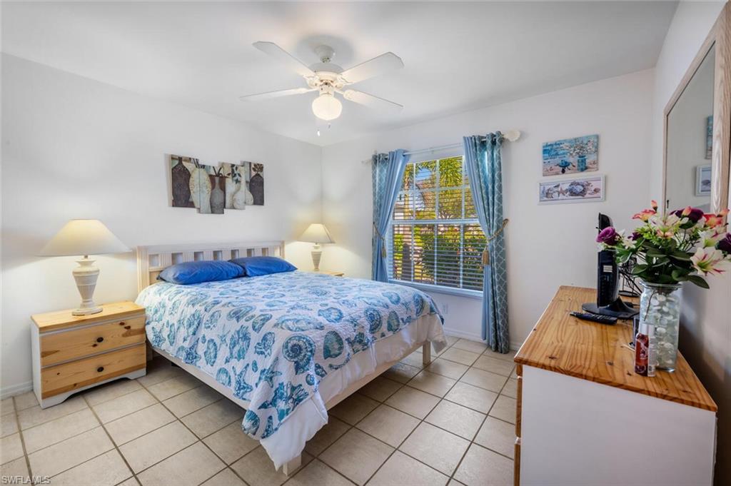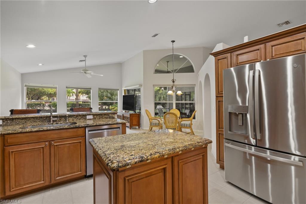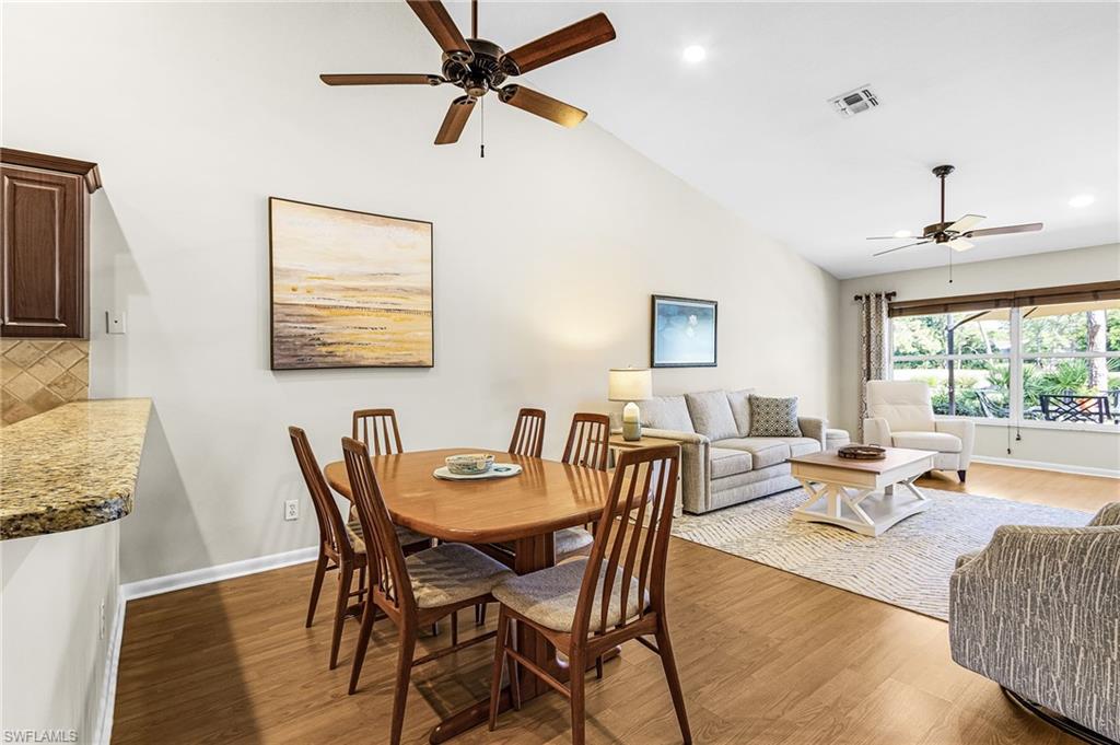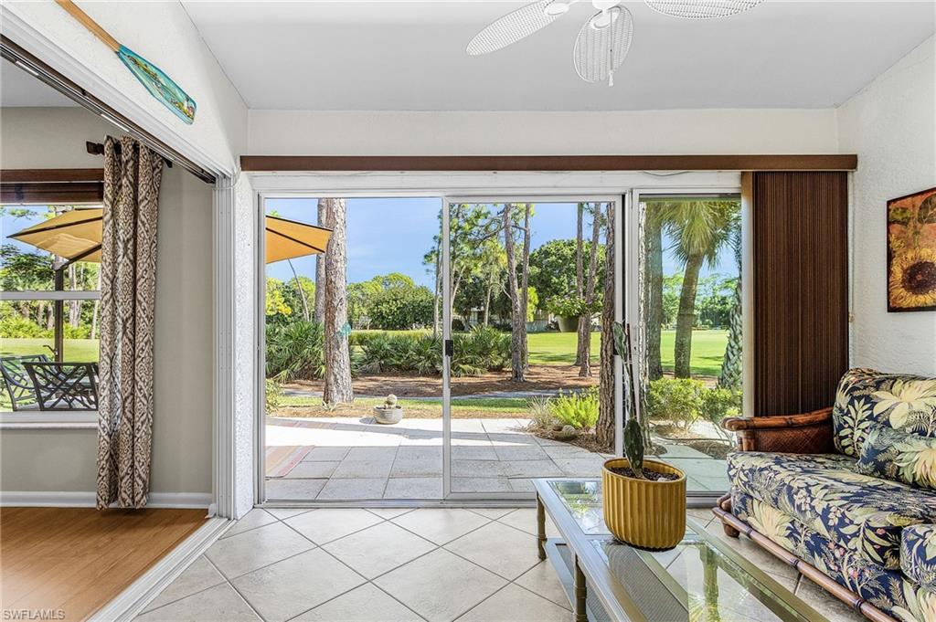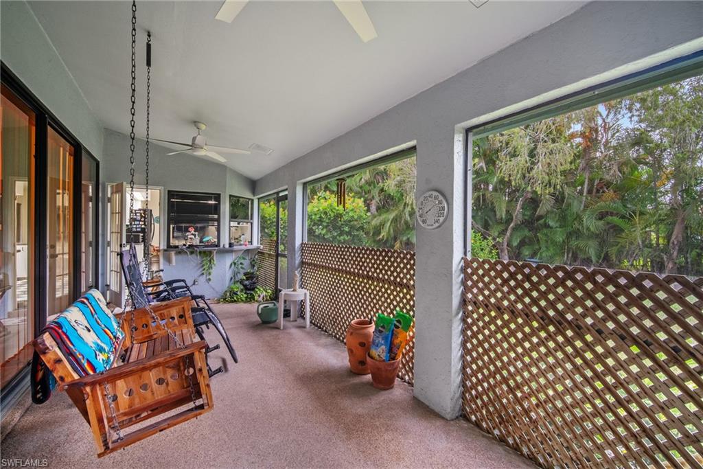 Discover a blend of privacy, comfort and convenience in this move-in-ready, turnkey three-bedroom, two-bath attached villa. Offering privacy of a single-family home with the maintenance-free lifestyle of a condominium, this 1,760-square-foot residence features an updated kitchen with granite countertops, newer appliances, a cozy breakfast nook, custom lighting, plantation shutters and tile and laminate flooring throughout. Enjoy year-round comfort and versatility in the fully air-conditioned Florida room, featuring an enclosed pantry with a convenient sink, ideally next to a spacious, paved outdoor area, ideal for entertaining guests in a peaceful and private setting. A recently replaced roof (2023) and rolldown hurricane shutters provide added security and peace of mind during storm season. This home is in the desirable Fountain Lakes community, directly across from Coconut Point Mall and just minutes from Southwest Florida's stunning beaches, dining, entertainment and airport. Residents enjoy an impressive array of amenities, including unlimited golf, a community pool, tennis courts, shuffleboard, bocce ball, billiards, pickleball, a fitness center, a community center with a library and an active social calendar. Whether you're seeking relaxation or recreation, this home offers it all. Don't miss the opportunity to make this home your next Florida dream!