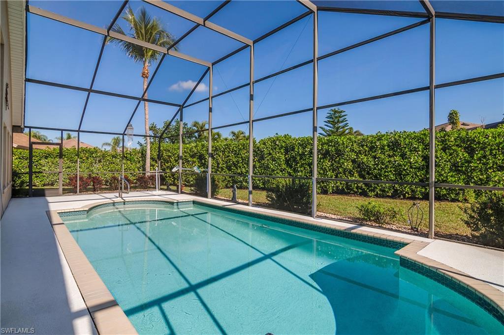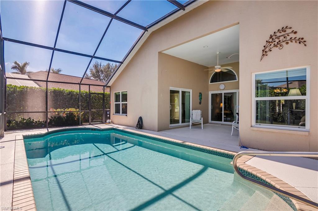 The BEST deal on the market for a Single Family POOL home in the center of Town! Low Interest Rate Options Available!! Less than a 5 Minute drive to Coconut Point and one day, the new Mercato North! Fountain lakes is a gated community with TONS of amenities included in your low monthly of less than $130/month! Free golf course, pickleball, billiards room, fitness center, tennis court, shuffleboard court, and boccee ball! This 3 Bedroom (currently has a 3rd bedroom setup as a guest den room) 2 bathroom, 2-car garage POOL home is waiting for you to move in! Electric Hurricane shutter on front door and screened lanai gives you the peace of mind of 'lock n go' for travel or seasonal snowbirds! Retractable awning over the pool gives you shade while you swim or entertain on your large patio with dining table and lounge chairs. Master bathroom has a door leading to the pool for added convenience! Large kitchen is perfect for entertaining guests. This home is in back of Fountain Lakes, just 1 street from the rear private gate to Williams Road! Easy access to Corkscrew Road, Three Oaks Parkway, US-41 / Tamiami Trail and only 10 minutes to I-75. Friendly, long-time neighbors on a quiet street. Re-Roofed in 2014 and NOT in a flood zone! (Seller has a flood policy for peace of mind and is transferrable).