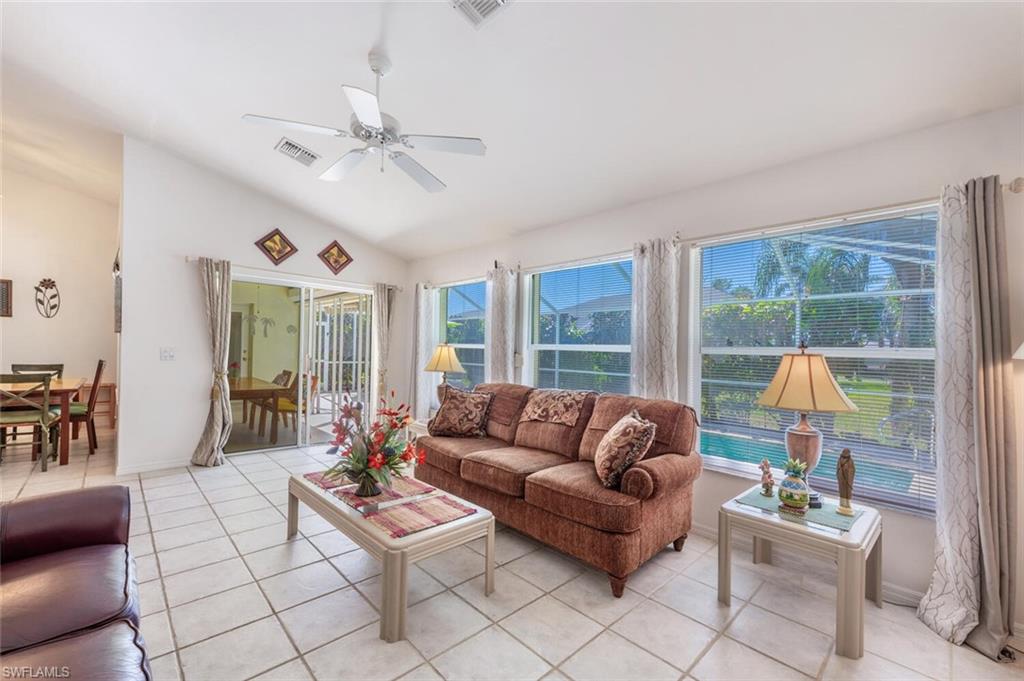 You may be surprised by the price of this 4-bedroom pool-home in Estero with all it has to offer! You'll love the ultra-private pool area surrounded by a beautifully manicured privacy hedge. The large pool deck is perfect for barbequing in the warm tropical Florida weather and has plenty of room for a 6-person patio table! Imagine sitting down with your family surrounded by lush landscaping with the coconut palms swishing in the breeze as dinner sizzles on the grill! This Chesterfiled floor plan offers 2 eating areas including a formal dining room as well as a living room plus a family room overlooking the pool! This home had impact glass doors and windows installed in 2024 and wow was that expensive! Hurricane-resistant garage door too! The kitchen offers pullouts in the lower cabinets which is so convenient! The owner has mentioned several recent updates including the attic insulation, resurfaced pool, multi-stage pool pump (2024), and pool heater (2024). A/c was done in 2018, roof in 2016. There is a lot to like here! The home is not within the flood zone and is located within a gated community! Fountain Lakes offers a free par 3 golf course, pickleball, tennis, basketball, shuffleboard, bocci court, fishing, billiards room, library, community pool, gym, walking path and robust social calendar. It is located only 2-minutes from Coconut Point Mall where you have numerous shopping and dining options.