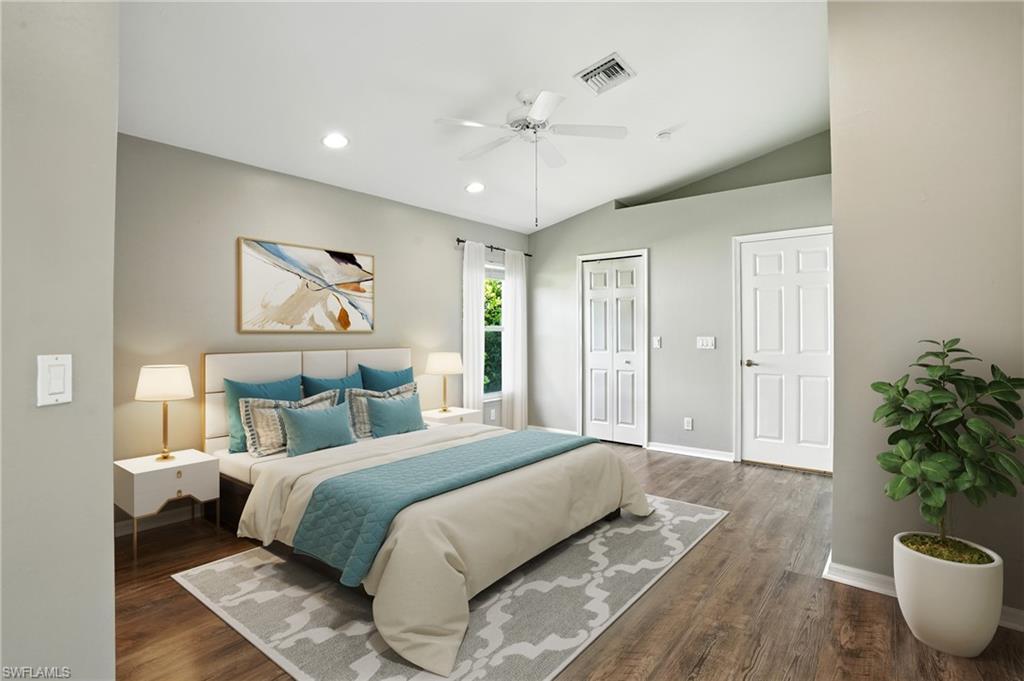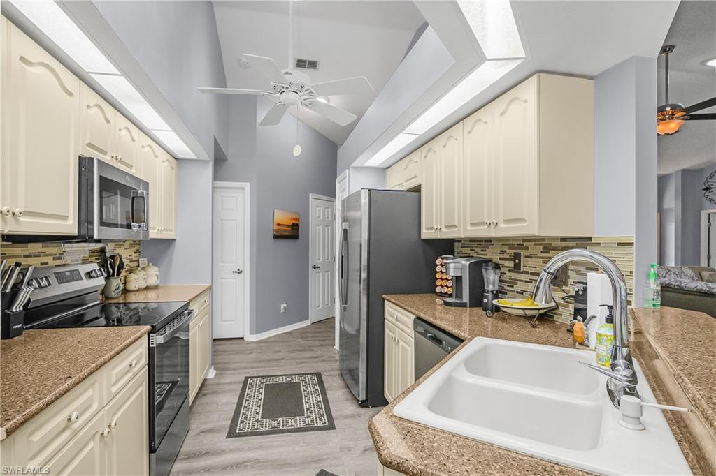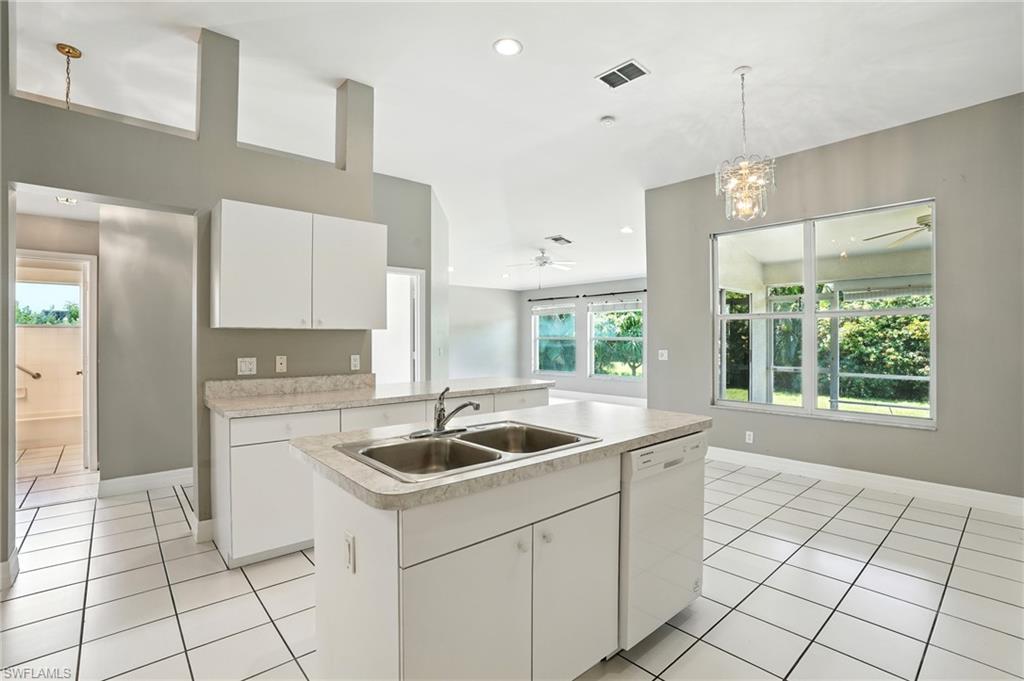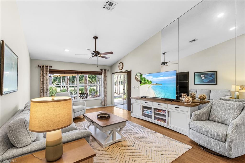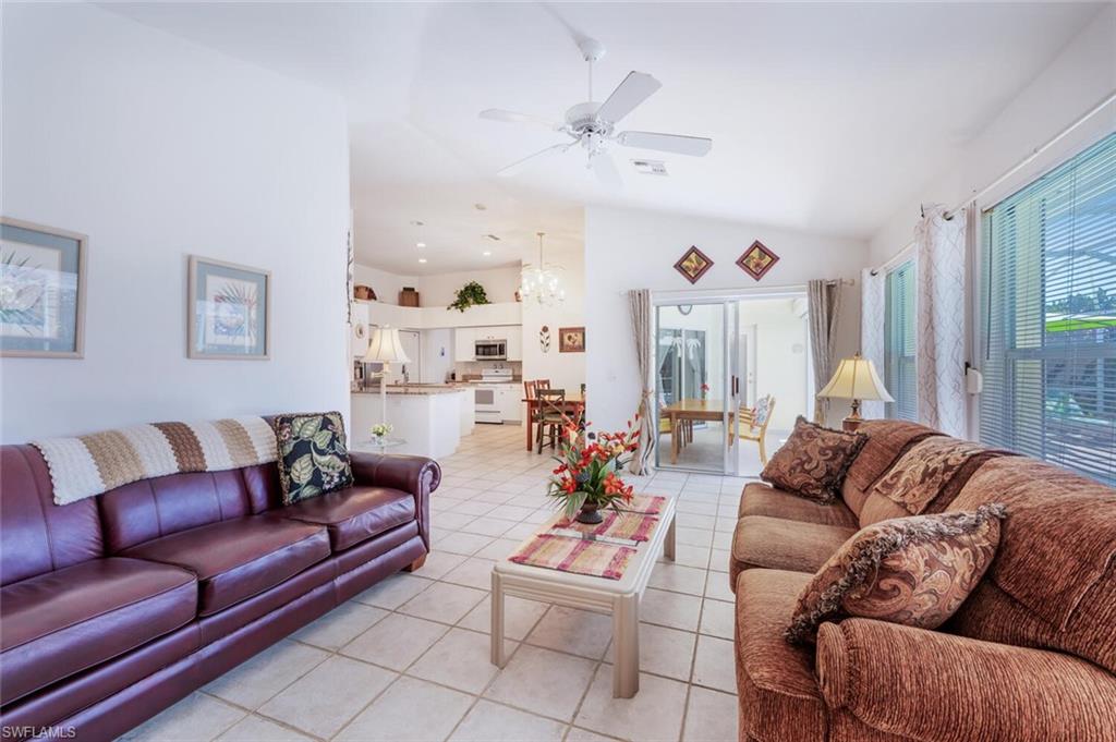 Welcome to Fountain Lakes! This beautifully updated single-family home in the heart of Estero offers 3 bedrooms, 2 full bathrooms, and an open floor plan with vaulted ceilings, creating a bright and spacious living area. The home features new luxury vinyl and tile flooring, fresh interior paint, and brand-new countertops, making it move-in ready. The newer roof (2021) provides peace of mind, while the modern updates throughout add both style and comfort. The open design flows seamlessly from the kitchen to the living and dining areas—perfect for entertaining or relaxing with family. Located in the highly desirable community of Fountain Lakes, residents enjoy low HOA fees and a lifestyle centered around a public golf course. The community is just minutes away from Coconut Point Mall, Miromar Outlets, I-75, and RSW Airport, offering unmatched convenience to shopping, dining, and travel.
