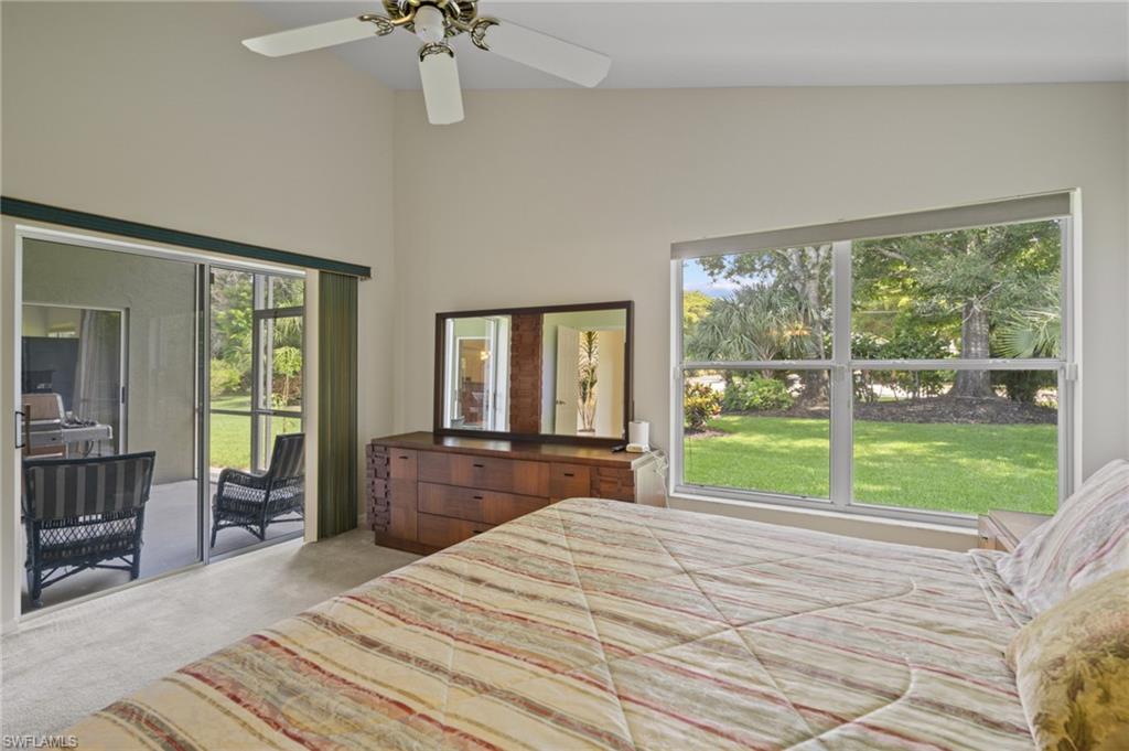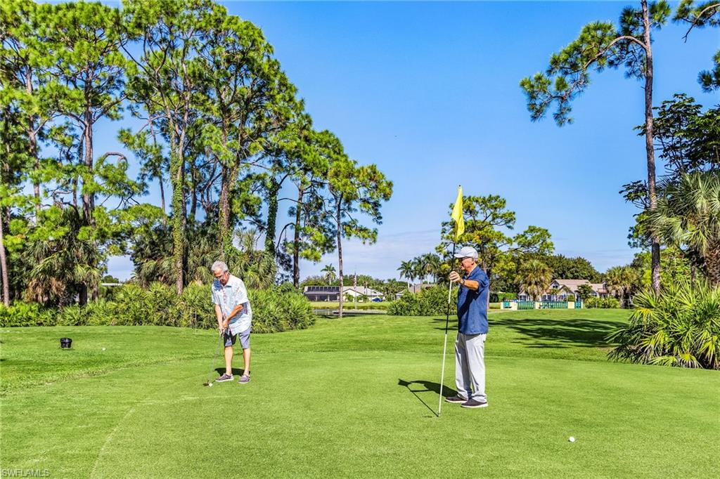 Time to escape the cold winters in what will soon be your new sunny Florida home. Located at one of the most scenic locations in Fountain Lakes, this partially furnished, 2 bedroom, 2 bath, 1 – car attached villa is the Only Available Stone Way Villa ON THE GOLF COURSE!! Enjoy the magnificent view of the 3rd fairway and green from the comfort of your outdoor patio or indoor lanai. You’re only a 2-minute walk to the clubhouse, fitness center, pool, tennis, bocce, shuffleboard, basketball and pickle ball courts. Features Include: NEW ROOF and GUTTERS (2023), open kitchen with GRANITE COUNTER-TOPS, NEW KITCHEN STOVE, multi-functional kitchen island, whole home water softener system, large master bedroom with sliders out to the lanai, tiled master bathroom with walk-in shower, tile and wood laminate flooring throughout (NO CARPETING), tiled lanai with privacy screen (an extra space for that unexpected guest), vaulted ceilings, wafer recessed lighting and the entire interior repainted a neutral tone. Fountain Lakes is a gated community and is centrally located, west of US-41 in the heart of Estero. You are literally a walk or bike ride away from Coconut Point Mall, shopping, dining, entertainment, minutes to Lee and NCH health facilities and a short car ride to Bonita Beach and Southwest Florida International Airport. The community offers numerous social events such as dancing by the pool, holiday banquets, nighttime glow golf and men’s and women’s golf leagues. Don’t forget the annual, Spring Fountain Lakes Olympics for all ages event. It’s time to focus on you! Stay active year-round and enjoy the Florida lifestyle you so deserve! Make a showing appointment today!