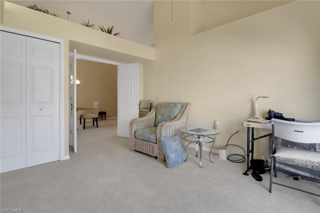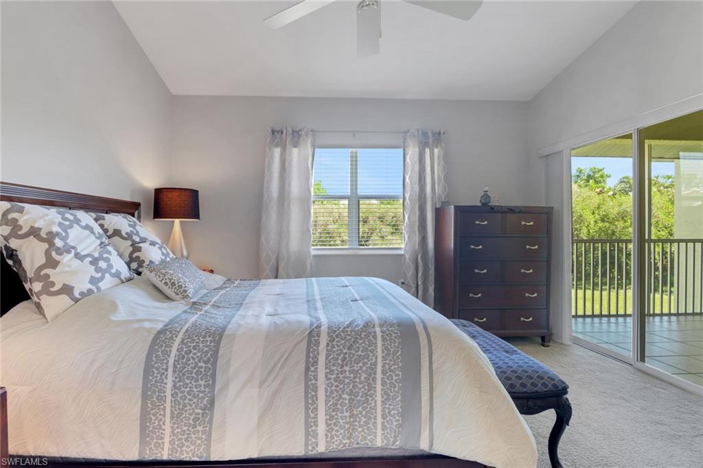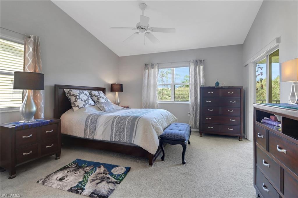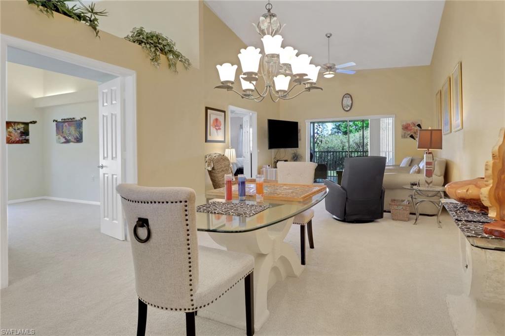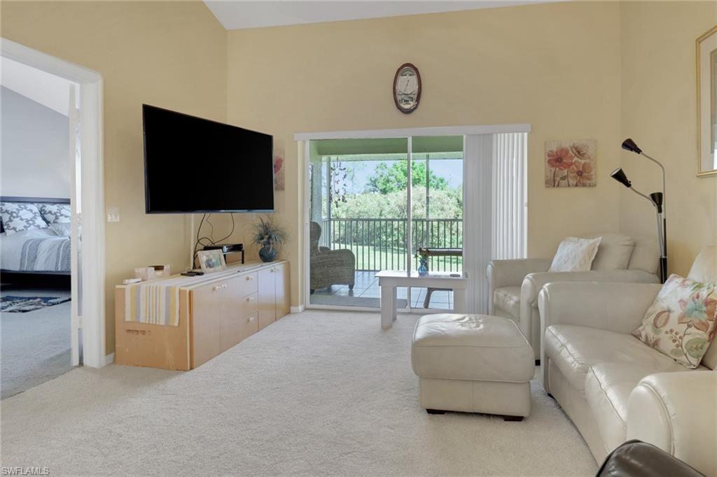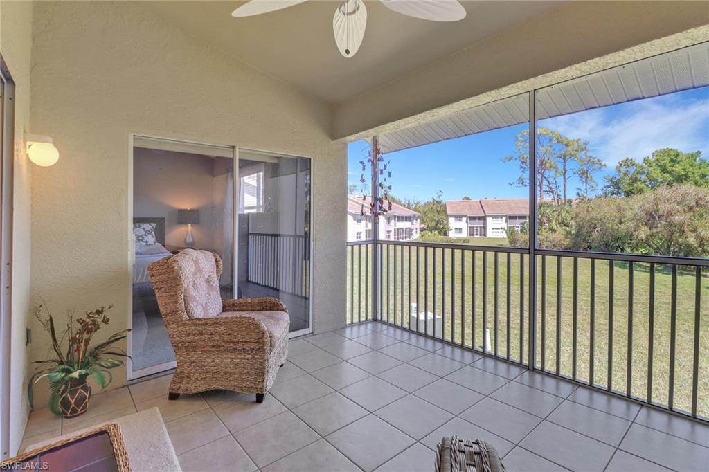 Friendly, Cooperative Listing Agent Ready to Work with You and Your Buyers! This must-see second-floor condo is filled with natural lighting, features high ceilings, and boasts lots of windows, creating an open and airy atmosphere throughout. The spacious 2-bedroom, 2-bath unit also includes charming plant shelves and an enclosed den, offering plenty of flexible living space for your needs. Step outside to the tiled lanai and take in the beautiful landscaped view—perfect for both relaxing and entertaining. The unit also comes with a 1-car garage that has extra storage space above, offering added convenience. The well-maintained community provides an abundance of amenities, including tennis courts, bocce courts, a 9-hole golf course, a clubhouse, fitness room, and a pool. All of this is conveniently located right across the street from Coconut Point Mall, which offers a variety of shopping, dining, and entertainment options. This home is ideally situated, just a short drive from Southwest Florida International Airport and Florida Gulf Coast University (FGCU), making it the perfect blend of comfort and convenience. Don’t miss out on this incredible opportunity—schedule a showing today and experience the lifestyle this condo offers!