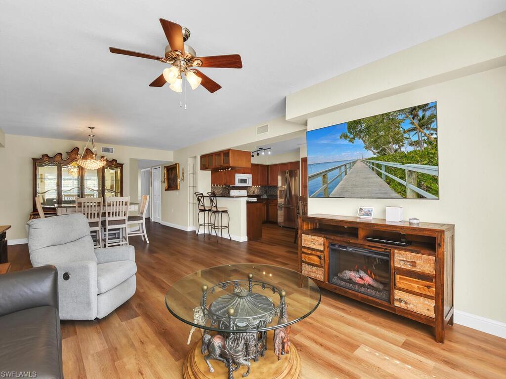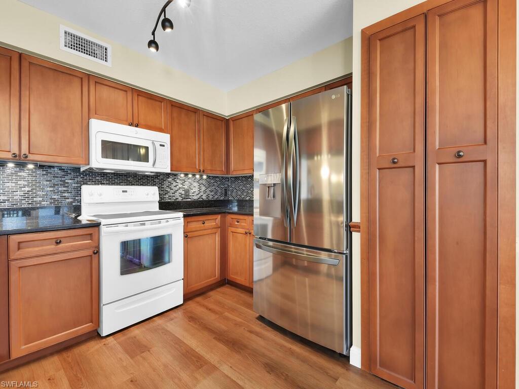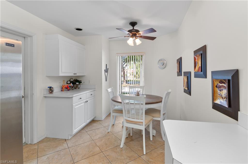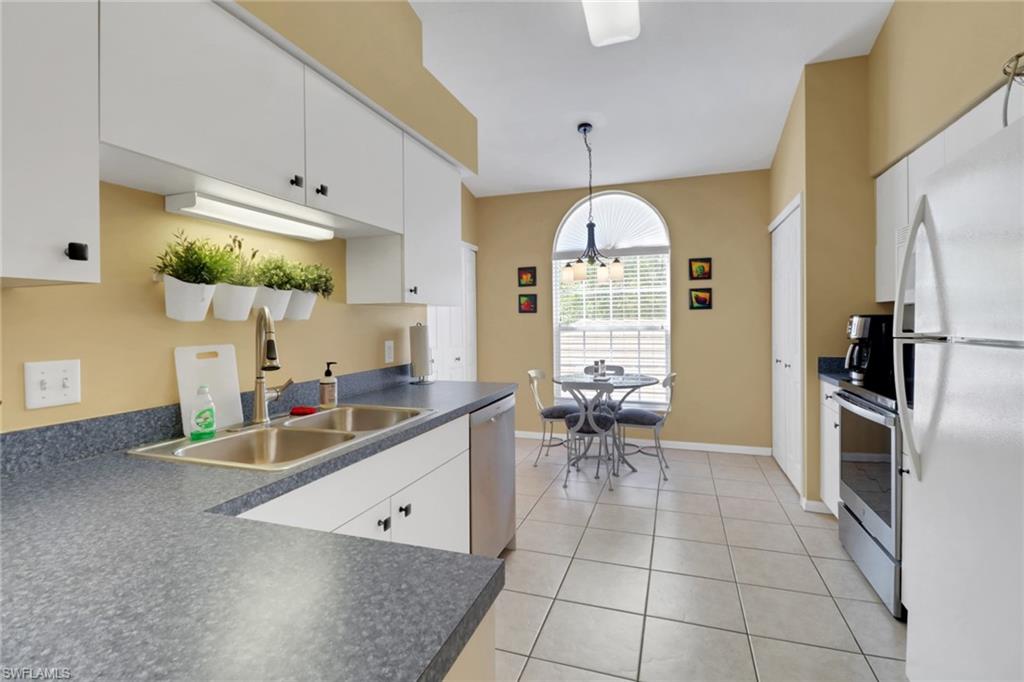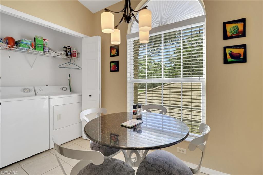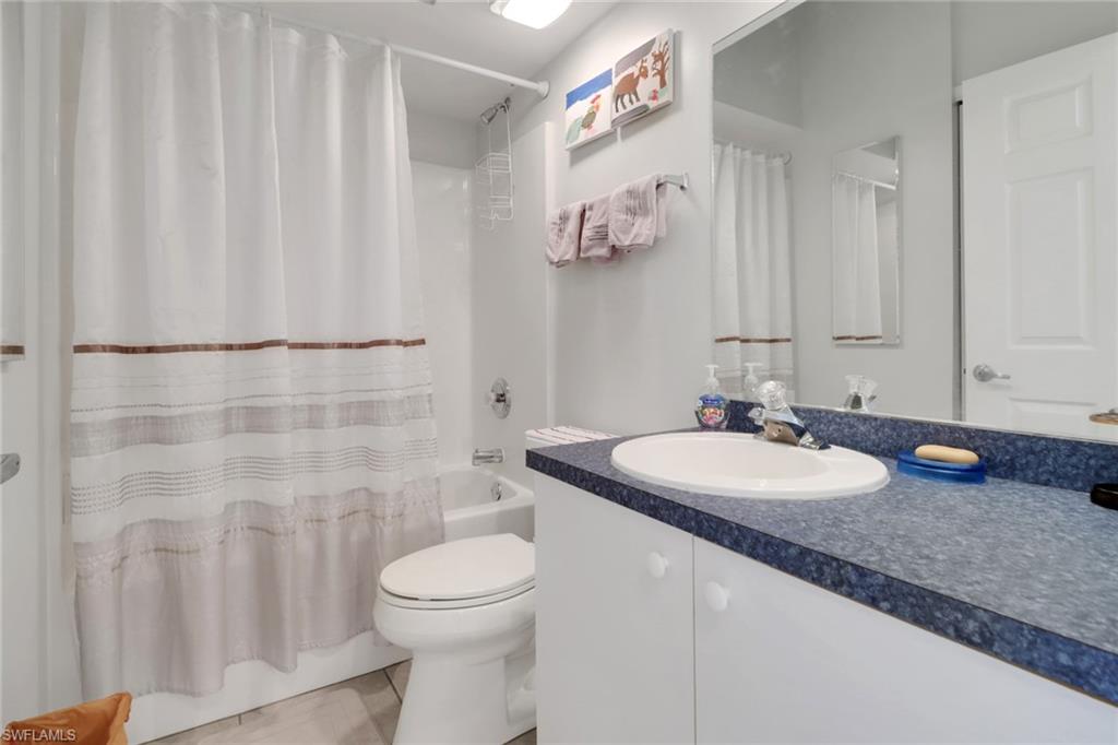 Welcome to this beautiful TURNKEY 2-bedroom, 2-bath FIRST-FLOOR END UNIT condo! This home offers an in-unit washer & dryer, a stylish kitchen with gorgeous backsplash, breakfast bar, and separate dining area. Updates include a fully renovated guest bathroom, brand-new luxury vinyl plank flooring in the kitchen, NEW HVAC installed November 2025 with 1-year labor and 10-year parts warranty, and a NEW Rheem water heater installed November 2024 with 6-year parts warranty. Storage is abundant with walk-in closets in both bedrooms, a spacious entry and linen closet, plus an oversized lanai closet. Relax on the private, lushly landscaped screened lanai with access from both the living room and primary suite. Fountain Lakes offers incredible amenities: 9-hole golf course, pickleball, tennis, community pools, fitness center, clubhouse, bike/jog path, bocce, shuffleboard, BBQ areas, library, playground, and more. Prime location! Just 5 minutes to Coconut Point’s 110+ shops and 20+ dining options, 12 minutes to Miromar Outlets, 20 minutes to RSW Airport, and 20 minutes to the beaches. Come and enjoy the Florida lifestyle!
