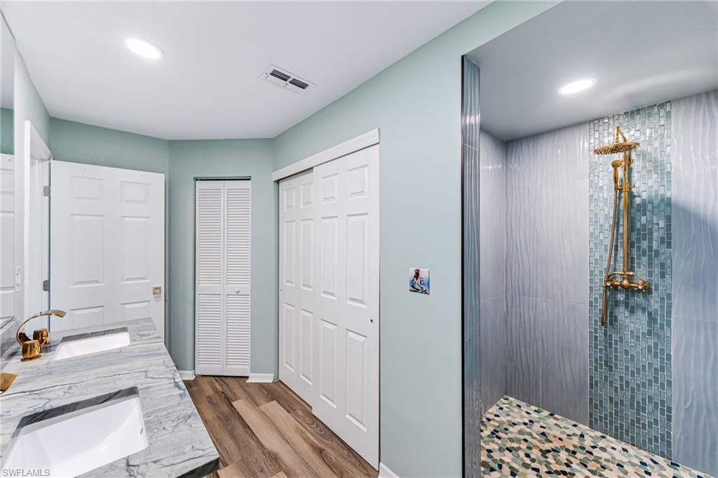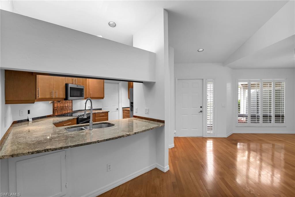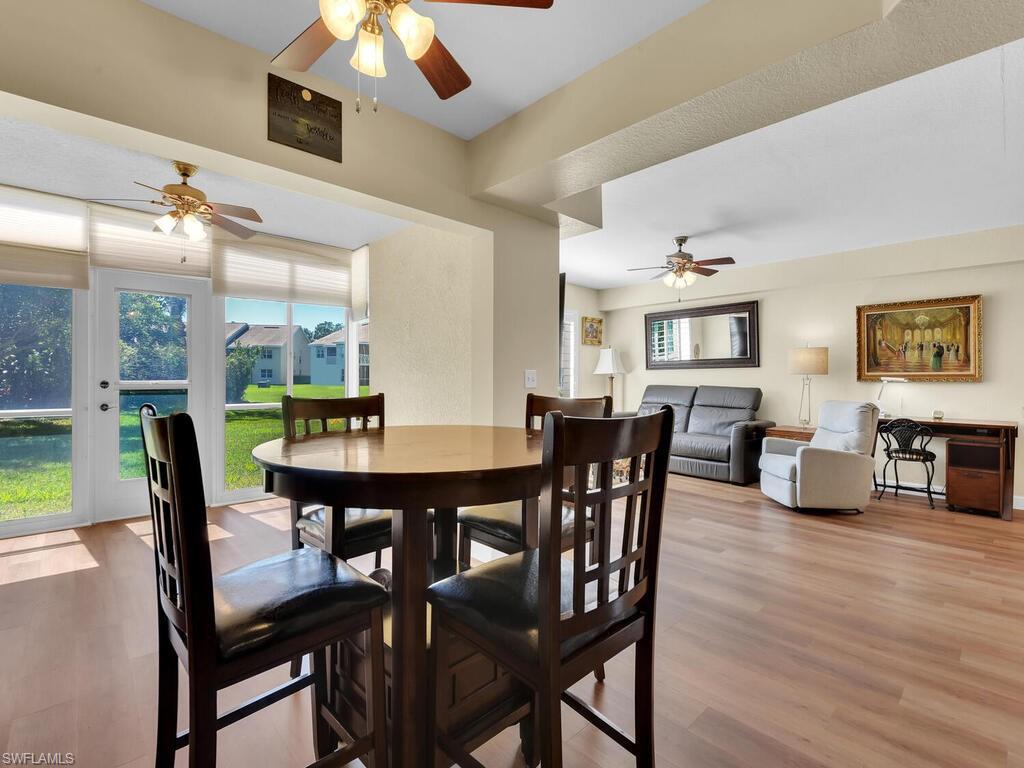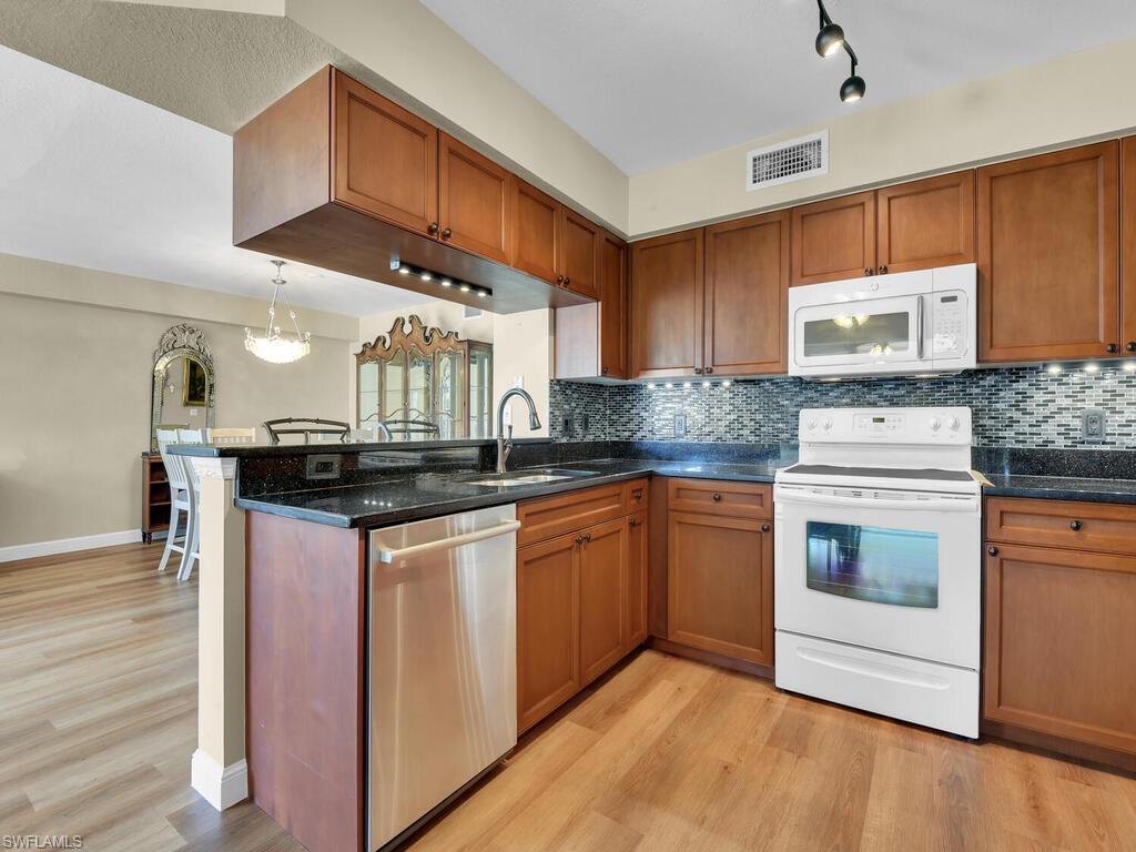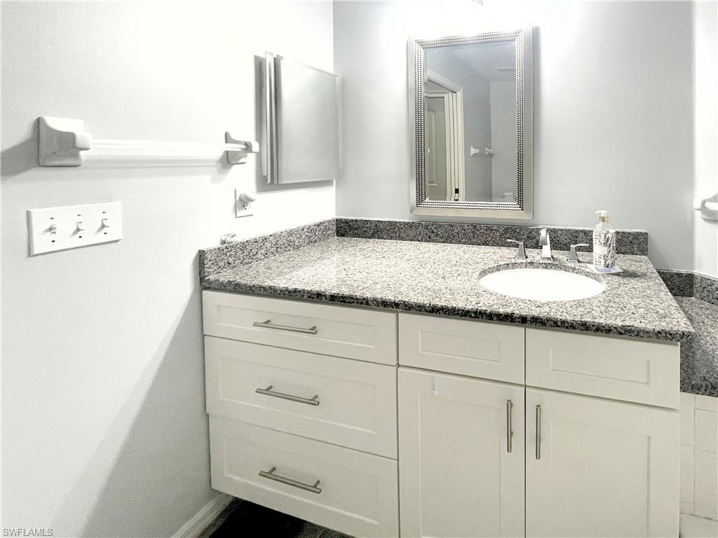 Welcome to this beautiful TURNKEY 2-bedroom, 2-bath FIRST-FLOOR END UNIT condo! This home offers an in-unit washer & dryer, a stylish kitchen with gorgeous backsplash, breakfast bar, and separate dining area. Updates include a fully renovated guest bathroom, brand-new luxury vinyl plank flooring in the kitchen, NEW HVAC installed November 2025 with 1-year labor and 10-year parts warranty, and a NEW Rheem water heater installed November 2024 with 6-year parts warranty. Storage is abundant with walk-in closets in both bedrooms, a spacious entry and linen closet, plus an oversized lanai closet. Relax on the private, lushly landscaped screened lanai with access from both the living room and primary suite. Fountain Lakes offers incredible amenities: 9-hole golf course, pickleball, tennis, community pools, fitness center, clubhouse, bike/jog path, bocce, shuffleboard, BBQ areas, library, playground, and more. Prime location! Just 5 minutes to Coconut Point’s 110+ shops and 20+ dining options, 12 minutes to Miromar Outlets, 20 minutes to RSW Airport, and 20 minutes to the beaches. Come and enjoy the Florida lifestyle!
