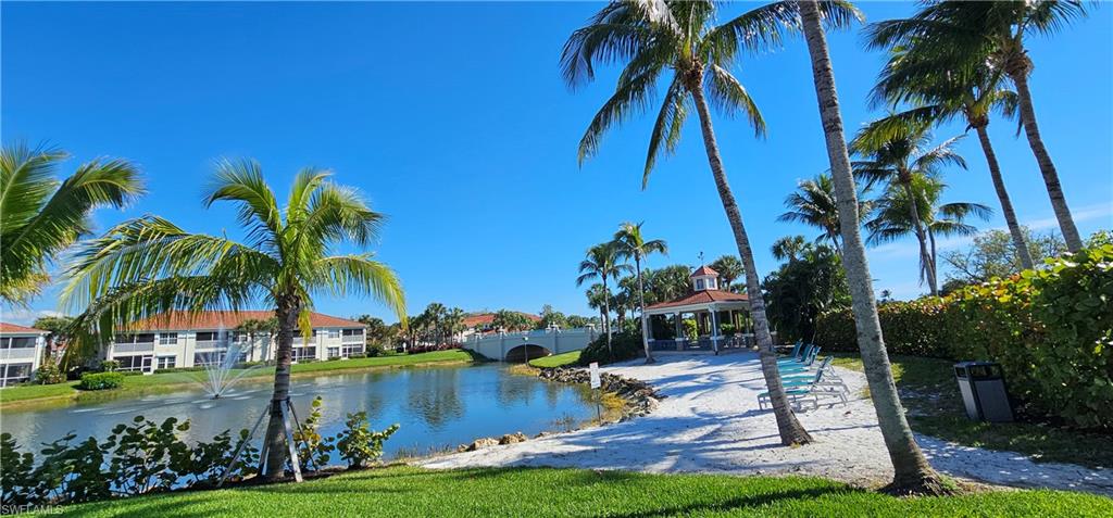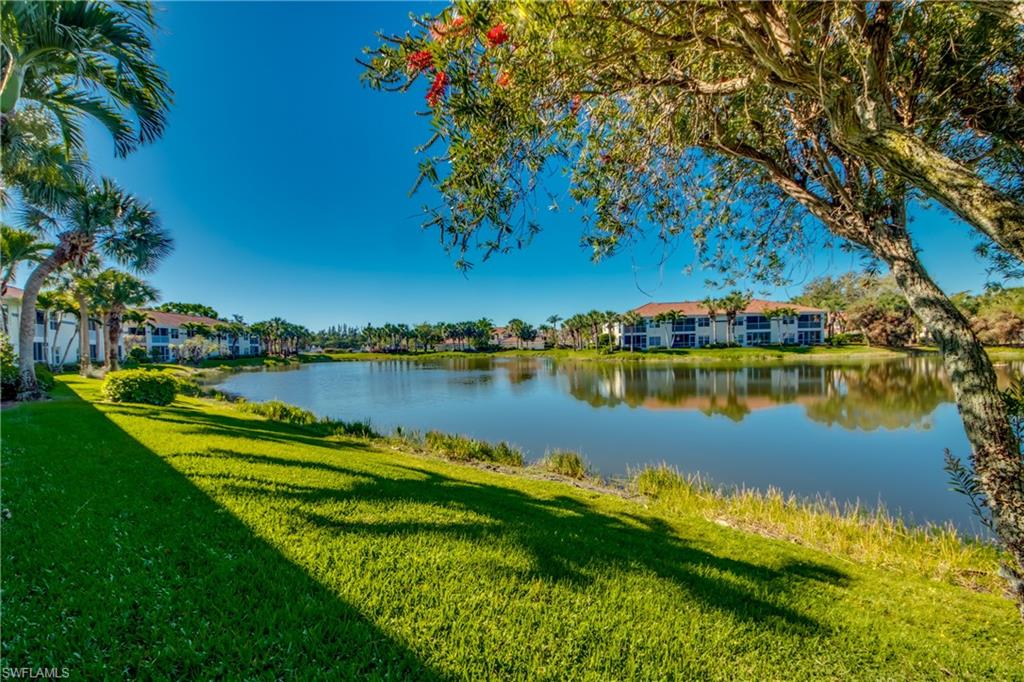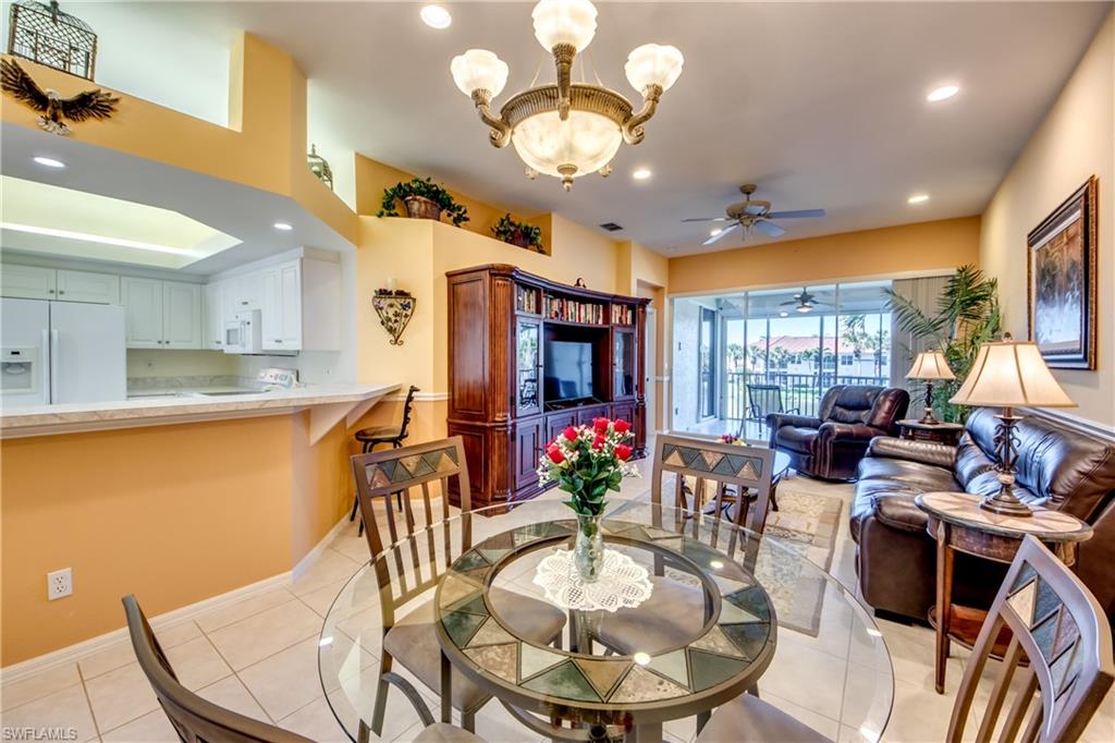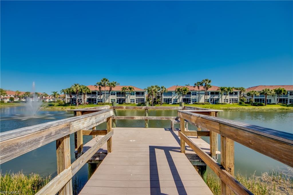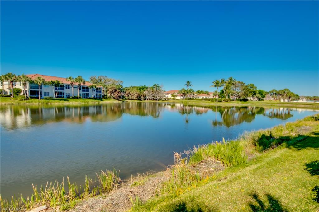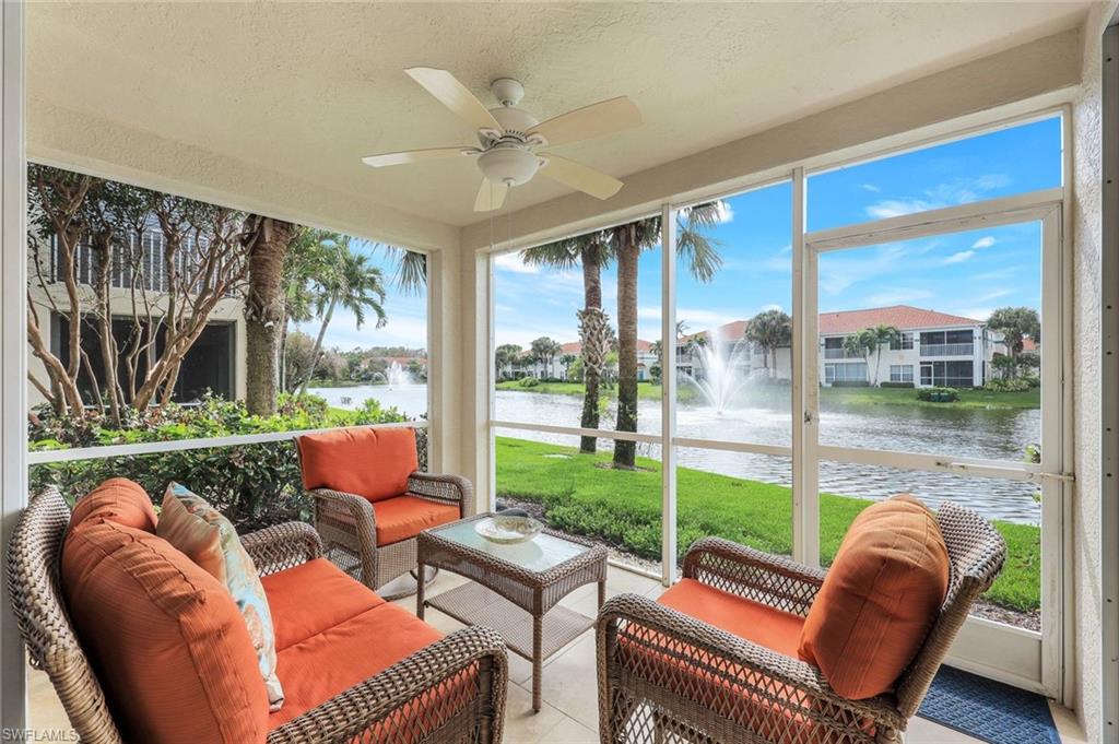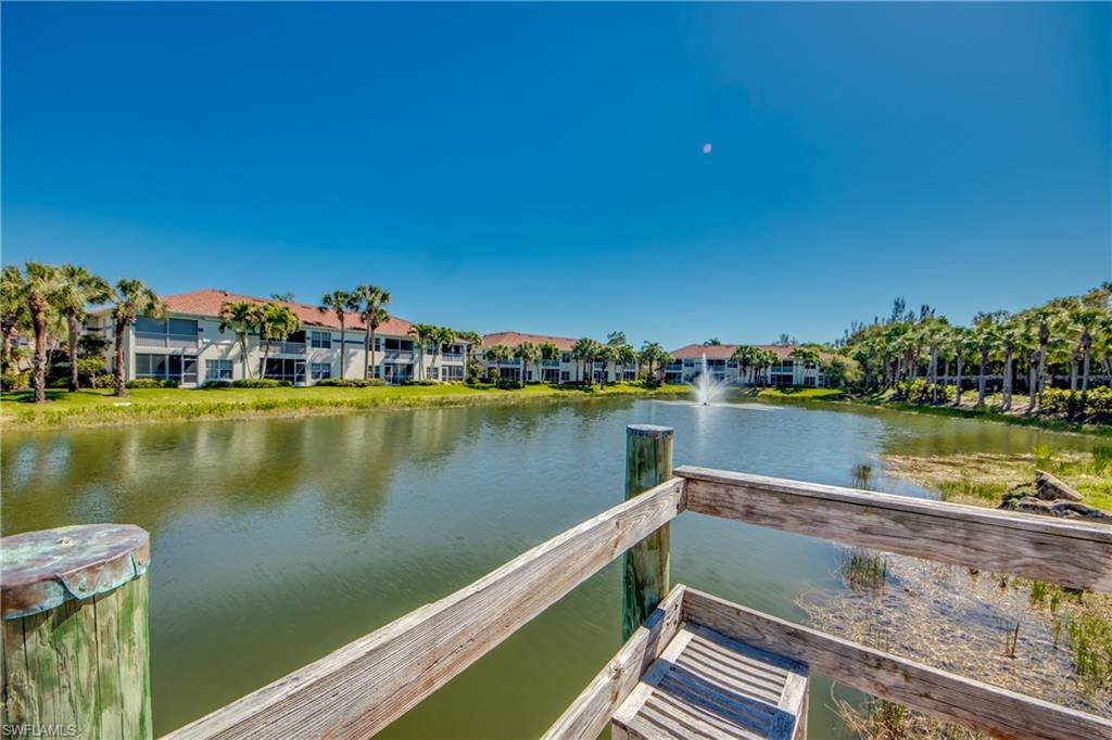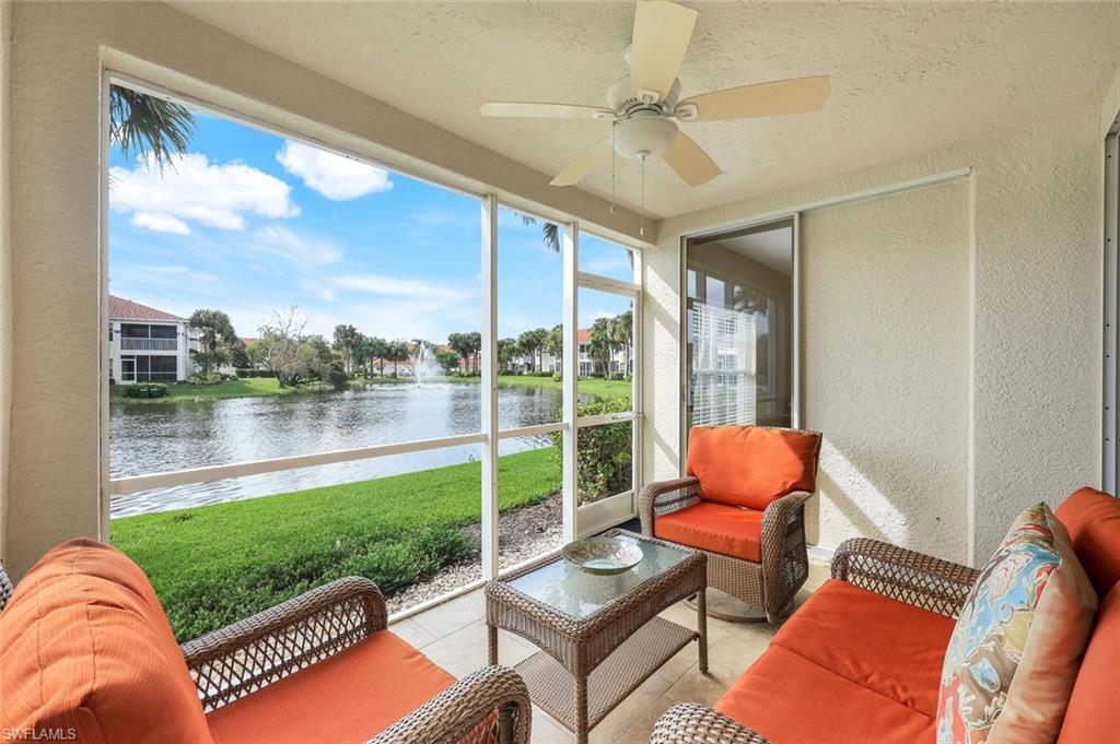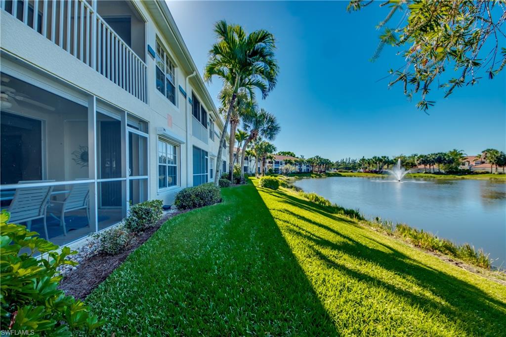 LAKE VIEW & TURNKEY! This 2 bedroom/2 bath first-floor condo is open and welcoming. The perfect mix of comfort, style, and convenience for SWFL living. Through the front door the open floor plan offers an abundance of natural light and a neutral color palette that is the perfect backdrop for any decor. The kitchen boast crisp white cabinetry, stunning dark granite countertops, newer stainless steel appliances, and generous storage paired across from the formal dining area with built in Buffet for additional storage. The primary suite offers serene lake and fountain views and ensuite bath features dual raised vanities and upgraded walk-in shower with frameless glass door. The lanai has been enclosed and fitted with IMPACT sliding glass doors, expanding your living space and allowing you to enjoy rain or shine. This condo also has a newer Air Conditioner and newer Water Heater! Stone-coated steel roofs replaced community-wide in 2020 for peace of mind and durability. ResortStyle Living at Lighthouse Bay: This gated community is packed with amenities, including:5 pools, including a lap pool 2.5miles of walking/jogging paths A robust bocce program Tennis courts with a pro on staff 2 boat houses, a fitness center, sauna, clubhouse, and library Arts & Learning Center and more! As a bonus, a Bronze Membership to the Brooks Commons Club is included, granting access to a private restaurant, enrichment center, pickleball, vibrant social programs, and more. Prime Location. Enjoy being just minutes from Coconut Point Mall, dining, entertainment, SWFL International Airport, and pristine beaches!