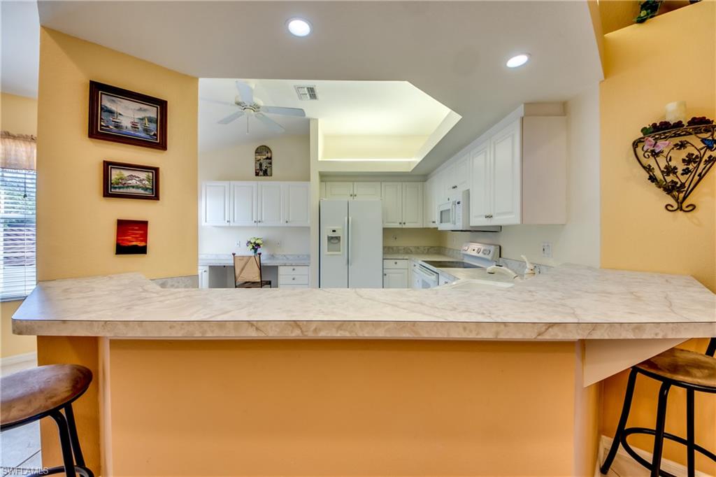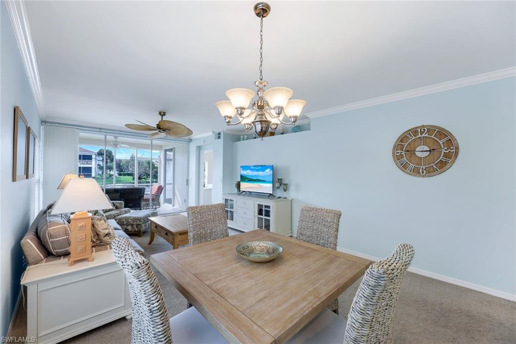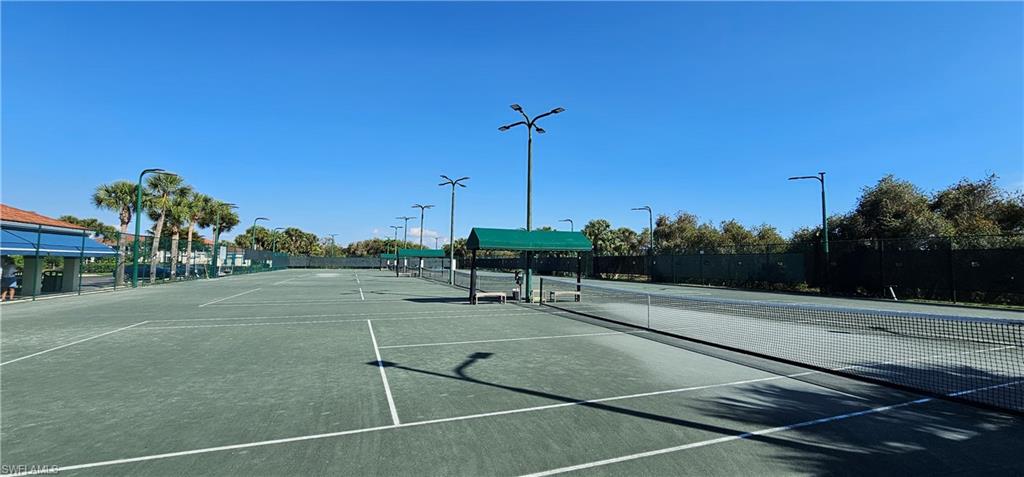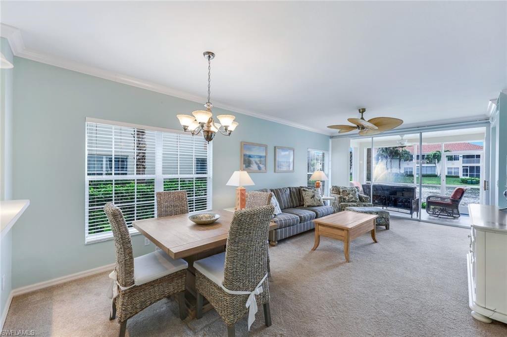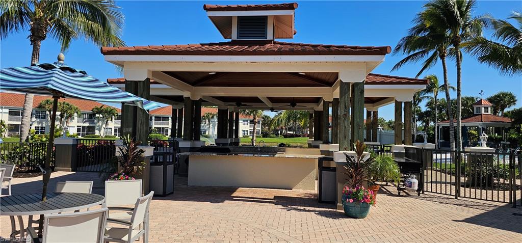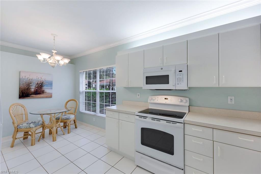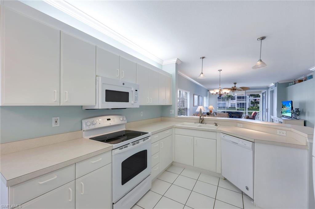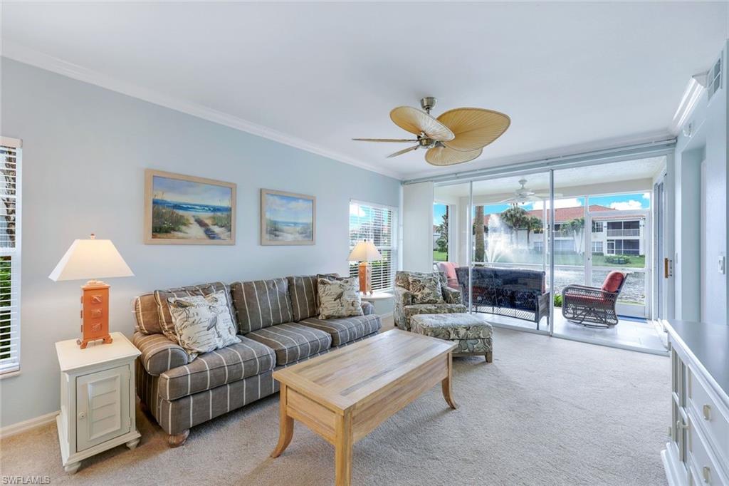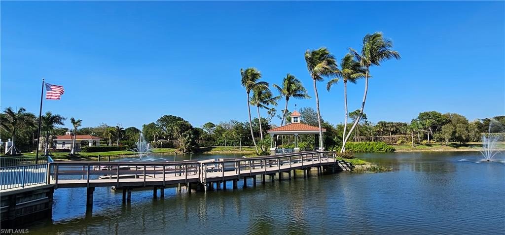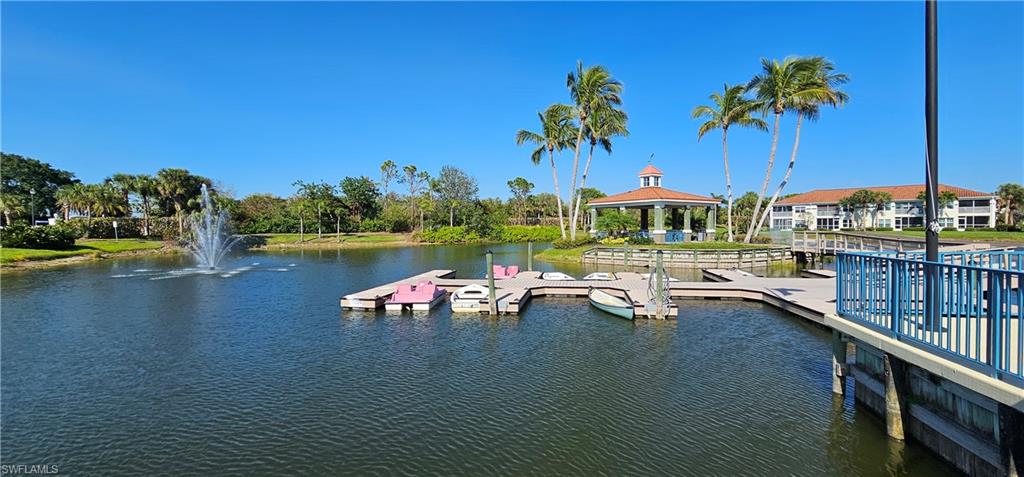 LAKE VIEW & TURNKEY! This 2 bedroom/2 bath first-floor condo is open and welcoming. The perfect mix of comfort, style, and convenience for SWFL living. Through the front door the open floor plan offers an abundance of natural light and a neutral color palette that is the perfect backdrop for any decor. The kitchen boast crisp white cabinetry, stunning dark granite countertops, newer stainless steel appliances, and generous storage paired across from the formal dining area with built in Buffet for additional storage. The primary suite offers serene lake and fountain views and ensuite bath features dual raised vanities and upgraded walk-in shower with frameless glass door. The lanai has been enclosed and fitted with IMPACT sliding glass doors, expanding your living space and allowing you to enjoy rain or shine. This condo also has a newer Air Conditioner and newer Water Heater! Stone-coated steel roofs replaced community-wide in 2020 for peace of mind and durability. ResortStyle Living at Lighthouse Bay: This gated community is packed with amenities, including:5 pools, including a lap pool 2.5miles of walking/jogging paths A robust bocce program Tennis courts with a pro on staff 2 boat houses, a fitness center, sauna, clubhouse, and library Arts & Learning Center and more! As a bonus, a Bronze Membership to the Brooks Commons Club is included, granting access to a private restaurant, enrichment center, pickleball, vibrant social programs, and more. Prime Location. Enjoy being just minutes from Coconut Point Mall, dining, entertainment, SWFL International Airport, and pristine beaches!