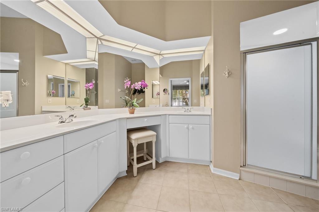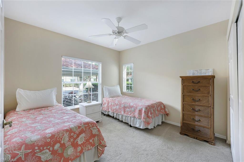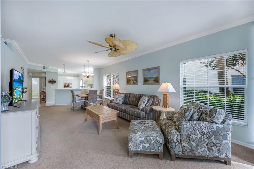 Offered TURNKEY! This meticulously maintained first-floor condo blends comfort, style, and convenience in one perfect package. Step inside and you’re immediately greeted by an abundance of natural light and a welcoming open floor plan. Elegant large-format tile flows seamlessly throughout, paired with a calming, neutral color palette that suits any décor. The open kitchen is ideal for both casual mornings and entertaining, featuring a charming breakfast nook, crisp white cabinetry, gleaming granite countertops, stainless steel appliances, and generous storage. Toward the front of the home, you’ll find a spacious guest bedroom, a versatile flex room (perfect as a third bedroom, office, or den), and a stylish guest bath. At the rear, the primary suite offers serene lake and fountain views, along with two large closets and a spa-like ensuite bath boasting dual vanities and a walk-in shower. The enclosed lanai, fitted with IMPACT sliding glass doors, expands your living space and allows you to relax rain or shine. For added peace of mind, the community’s stone-coated steel roofs were replaced in 2020—built for both beauty and long-term durability. Resort-Style Living at Lighthouse Bay Enjoy a gated community loaded with amenities: 5 pools, including a lap pool, 2.5 miles of scenic walking/jogging paths, Robust bocce program, Tennis courts with an on-site pro, 2 boat houses, fitness center, sauna, clubhouse, and library, Arts & Learning Center and more! As a bonus, a Bronze Membership to The Brooks Commons Club is included, giving you access to a private restaurant, enrichment center, pickleball courts, lively social events, and more. Just minutes to Coconut Point Mall, top dining, entertainment, SWFL International Airport, and the white-sand beaches of Southwest Florida.