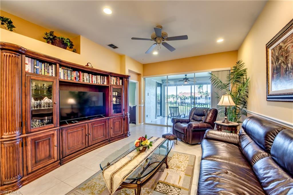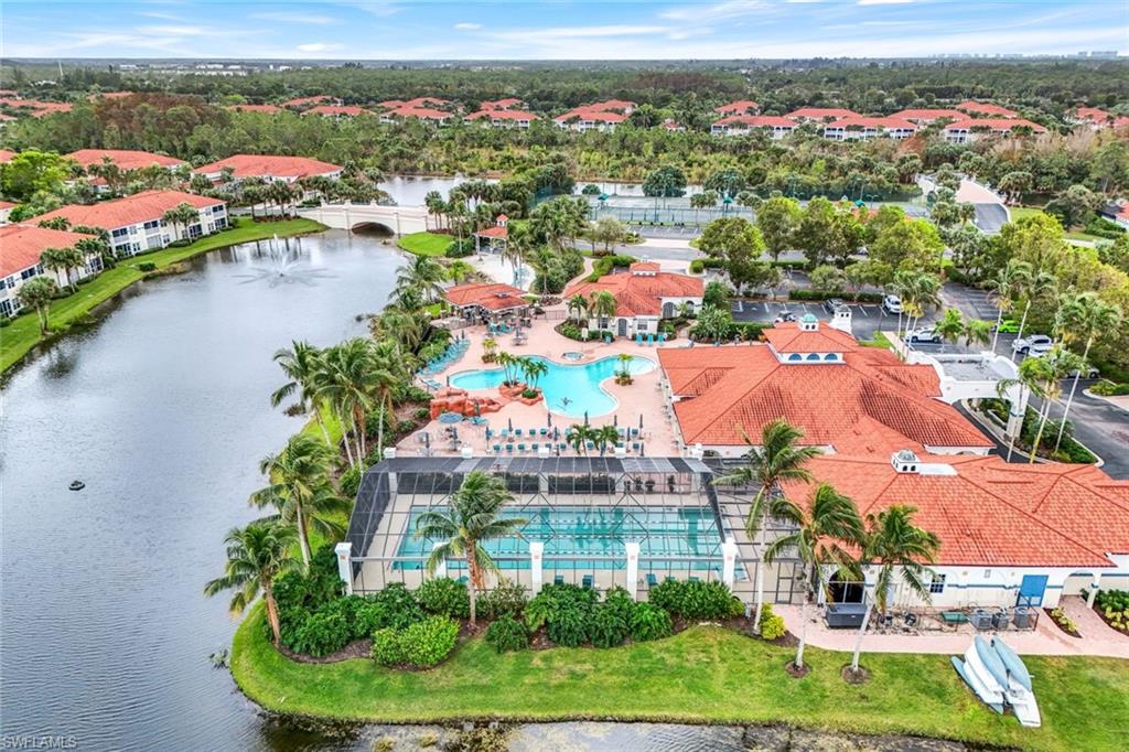 Best Priced Fully Furnished Condo with 2 Bedroom + Den and 2 Bathrooms only $212.per square foot!!!! Whether full time living or Winter escape you will appreciate the Lifestyle and Location of Lighthouse Bay at the Brooks. Just minutes to RSW International Airport and Coconut Point Mall. 2nd floor condo enjoys volume ceilings and elevated view of Lake and Water feature- Eastern exposure provides for a sunrise to welcomes you each morning as you sit on your patio with your coffee. Just steps to the one of five Cabana pools and BBQs and Boat House. Come to enjoy the Resort style Lighthouse Bay Community with 5 Pools including an Olympic Lap Pool, 2.5 Miles of Scenic walkways and jogging trails, a Bocce Program, Har -Tru Tennis Courts with Tennis Pro, Pickleball, Fitness Center, Sauna, Library, Hot Tub, Sauna, and much more. NEWER STONE COATED STEEL ROOF was installed in 2020. A Bronze Membership to the Commons Club is automatically included featuring The Rookery Restaurant and the Enrichment Center with life- long learning, pickleball, Tot Lot playground and Interactive Water Feature. You can upgrade to Silver Level for Fitness Club at the Brooks or Gold Level to add the Brooks Beach Club on the Gulf of Mexico.