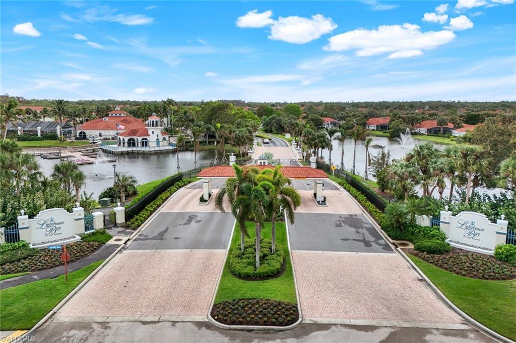 Move-in ready!!! TURNKEY FURNISHED condo with beautiful views in Lighthouse Bay! Looking for paradise? This Gated community is reflective of what true Florida paradise looks like! This is a resort style, breathtaking lakefront community that offers so many amenities and activities that you will not have the time to ever be bored!! Some community features include: 44 acres of stocked beautiful lakes! 70 acres of green space including a 26 acre preserve! 5 picturesque cobblestone bridges! Beautiful views of lake fountains and roundabout water fountains! This spacious 2 bedroom plus open den condo offers tranquil lake views with water fountains, large screened-in lanai, high ceilings, beautiful luxury vinyl plank floors, fresh paint, New A/C all in 2023, and a light and neutral color scheme throughout.There are 2 assigned parking spaces with carport conveniently right in front of this unit. Additional features include: in-unit laundry with washer and dryer and ample storage space. The roofs in Lighthouse Bay were replaced in 2020 with durable Stone Coated Steel shingles for durability and longevity. Lighthouse Bay at the Brooks is a gated community with The Harbour Club as the master association offering amenities including: The Boathouse with trademark lighthouse, viewing deck and docks with paddle boats, canoes and fishing boats; The Picnic Island with gazebo and barbeques; Clubhouse w/ Activities Director, business center, conference room, & catering kitchen; The Lagoon Pool & Spa with 2500 sq. ft. Freeform pool, rock waterfall, whirlpool spa, 14,200 sq. ft. sun deck, dry sauna & cold plunge, & TiKi Hut with grills; Sunning Beach with chaises and gazebo; Fully equipped Fitness Center with cardio exercise area, lockers, showers and flex room for aerobics and two ping pong tables; A Swimming Atrium with screen enclosed 25 meter (82') lap pool; A 2500 sq. ft. Arts and Learning Center with fine arts studio, card room, conference room, library with two computer stations and printer/scanner; The Tennis Center with six LED lighted Hydro-grid clay courts plus players clubhouse with lockers, Pro Shop, social area and galleria; Two regulation Bocce Courts; 3 additional cabana pools; 3 miles of walking path, and a gardening club. There's even a social director for field trips!! And if that's not enough, all owners automatically get the Bronze Membership to the Commons Club at The Brooks, which features a private restaurant, enrichment center, numerous social programs, Pickleball Courts & much more!! Located only a 5 minutes drive from shopping and dining in Coconut Point Mall and only a short drive to/from the Fort Myers airport, Miromar outlets, Gulf Coast Town Center, and Florida Gulf Coast University. Beaches are close by, including optional membership to a private beach club. **Condo fees includes All amenities, insurance, water, cable, internet, trash removal, and much more.*