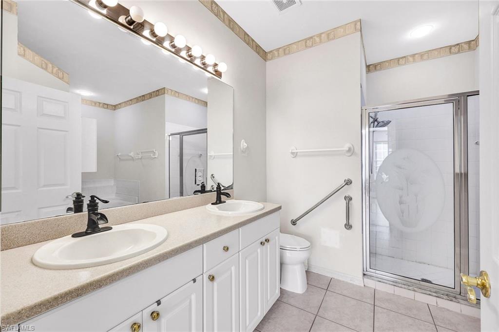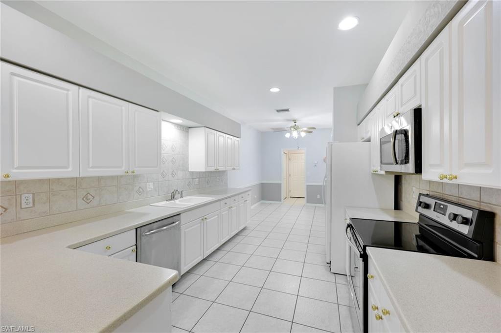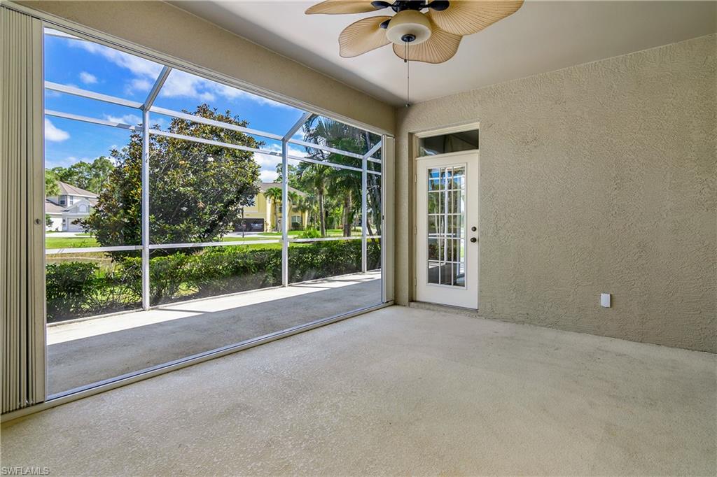 Location, location, location! This Marsh Landing villa is located at the end of the cul-de-sac and is super private and quiet! The freshly painted kitchen, living room, and entrance look better than ever. The showers in both bathrooms are updated to the nines and are absolutely stunning. You'll love the chic tile flooring in the bathrooms, entryway & kitchen. In 2024 new lush carpeting was installed in the living room and bedrooms. Newer ceiling fans, microwave, dishwasher, window treatments and water heater are also noteworthy. The upgraded Electrolux washer & dryer are super desirable. Marsh Landing is located directly across the street from Coconut Point Mall where numerous restaurants and shopping opportunties can be found. Pickleball, tennis basketball, community pool & spa, fitness room and social activities are also at your fingertips in Marsh Landing. Wind mit and 4 point inspection are on file so you can get your insurance quote ahead of time!