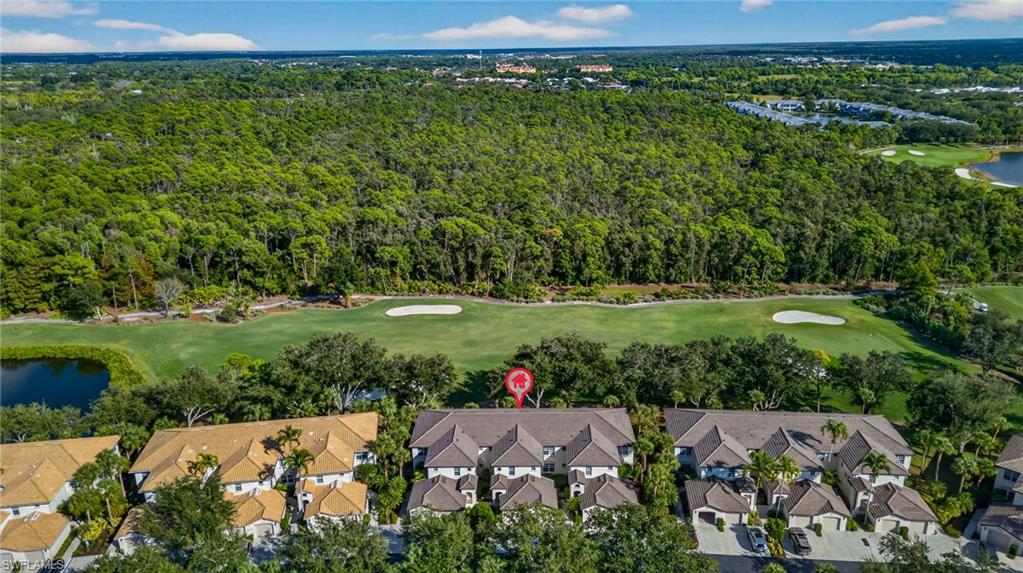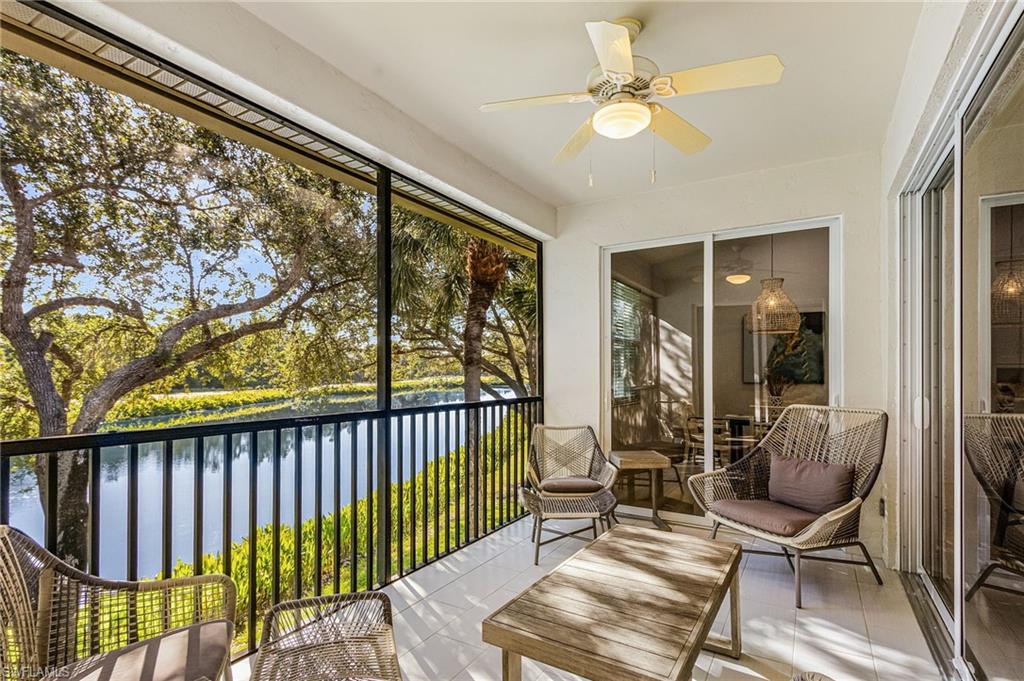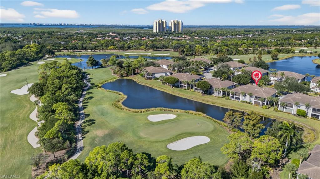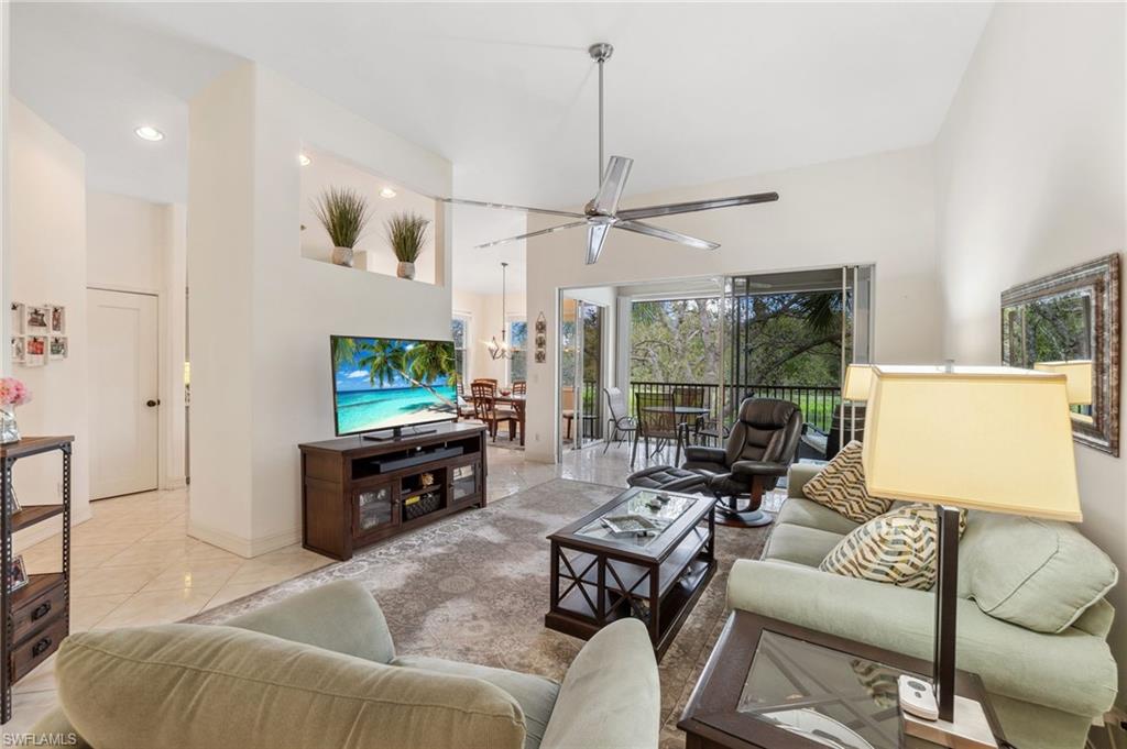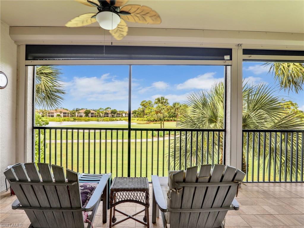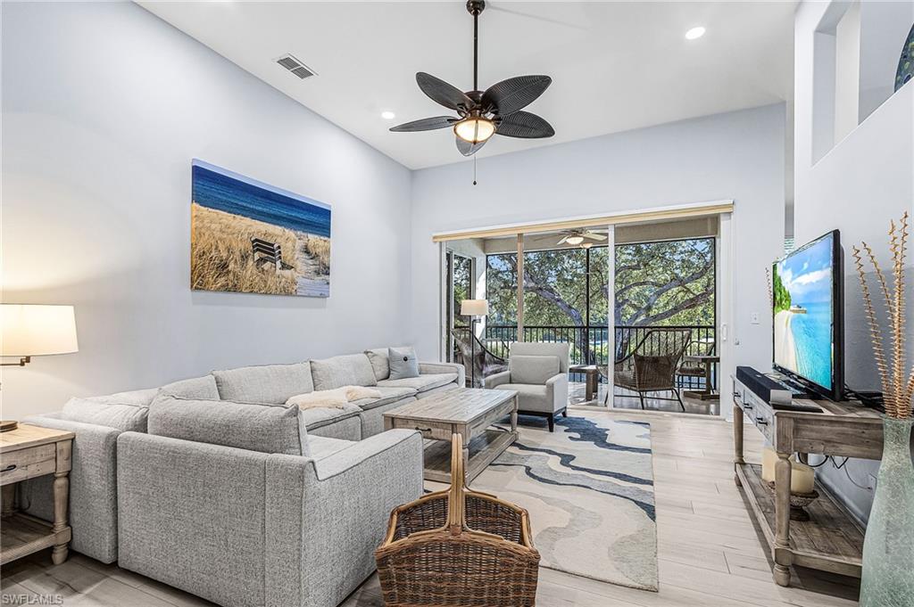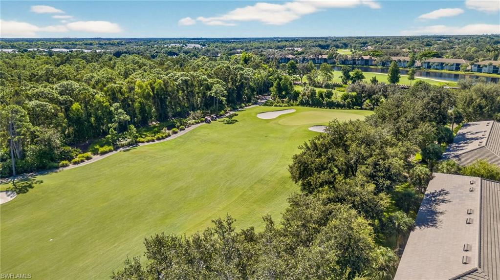Virtual Tour Available | *Golf Membership Included* Welcome to 21758 Sound Way #202, showcasing one of the single most breathtaking views throughout the entire community, with private pool-side location and easy gate access, all from Pelican Sound’s favorite premium floor plan with 2-car garage. Prepare to be inspired by the panoramic lake and golf views wrapping around your second-floor coach home in the treetops. Immediately beyond the oversize lanai with walls of glass sliders and bonus electric hurricane shutters for peace of mind, rests an iconic wooden bridge connecting a tapestry of blues and greens, where wading waterfowl, tropical plants and wildlife abound with visual interest. Inviting great room floor plan features a central kitchen and living spaces, soaring ceilings, the privacy of a split bedroom floor plan, plus a versatile den or office that could easily double as a fourth bedroom as needed. Dining options as configured include a breakfast room immediately adjacent to kitchen, breakfast bar, dining room in great room, and ample space on the lanai for both extra seating and entertaining around the table. Another unique and noteworthy feature is the location in relation to the neighborhood pool: it's next door, only a few skips away, however it's conveniently shielded by the neighboring property from possible privacy concerns, resulting in all the upside without any tradeoffs. This Oak Run coach home is presented in move-in-ready condition, but the optimal combination of prime location, view, and floor plan presents an attractive opportunity for a lucky buyer to personalize with tremendous flexibility. Pelican Sound is the region’s preeminent bundled golf community, with a reputation for fabulous amenities and welcoming people. The bundled approach to membership is instrumental in keeping fees low in a market where golf club initiation fees are routinely measured in hundreds of thousands of dollars. In addition to its 27-holes of championship golf, Pelican Sound membership also includes Gulf-access boating and optional storage, 14 Pickleball courts, 8 Har-Tru tennis courts, 6 Bocce courts, four different dining locations from updated and diverse clubhouses within the community, plus attended fitness center, dog park, and more. Pelican Sound’s convenient location is just a short drive from the beach, shopping, RSW, and countless local restaurants. Even better: 21758 Sound Way #202 is located just a short walk from the back gate on Williams for especially easy access. This home is priced to sell, and we expect it to go quickly. Schedule your showing today!
