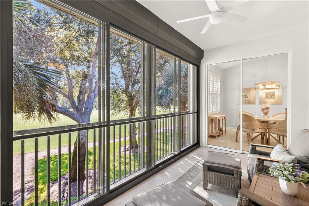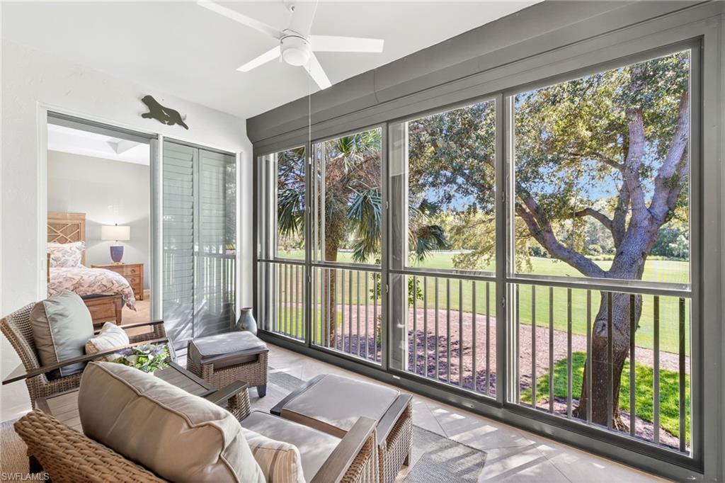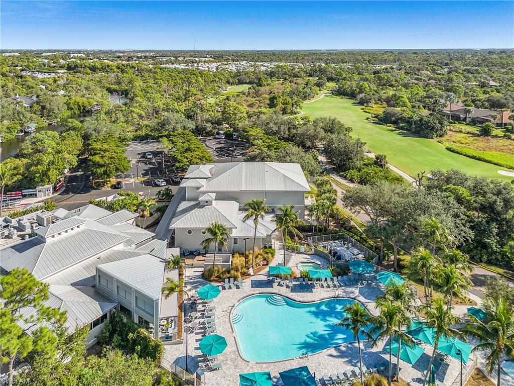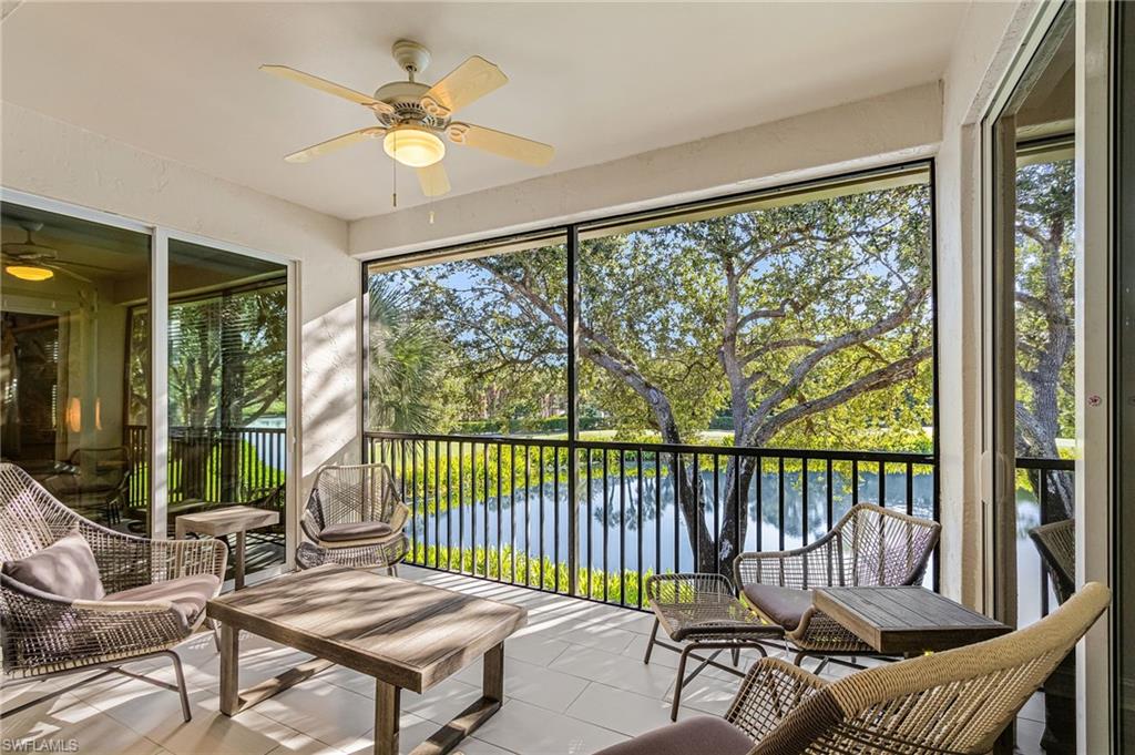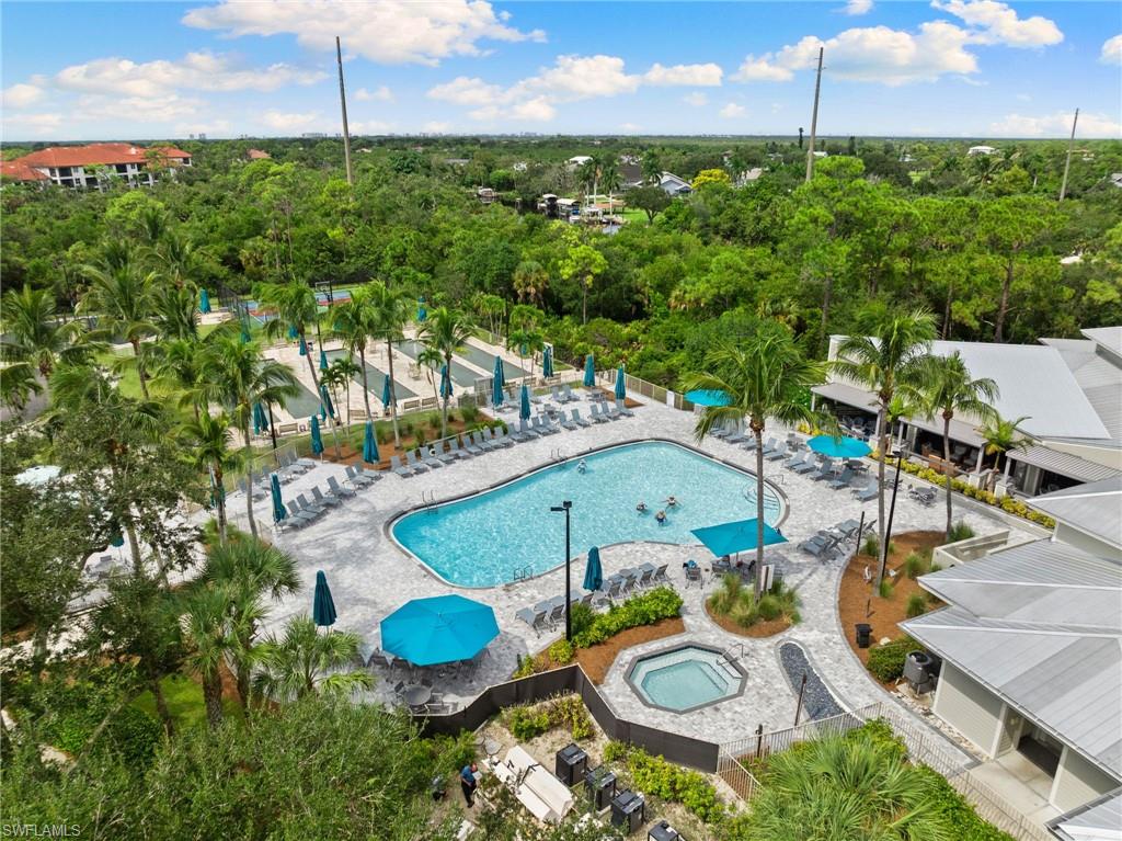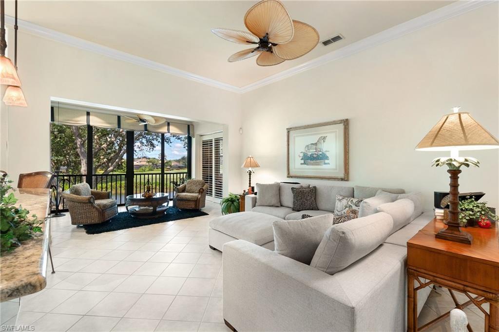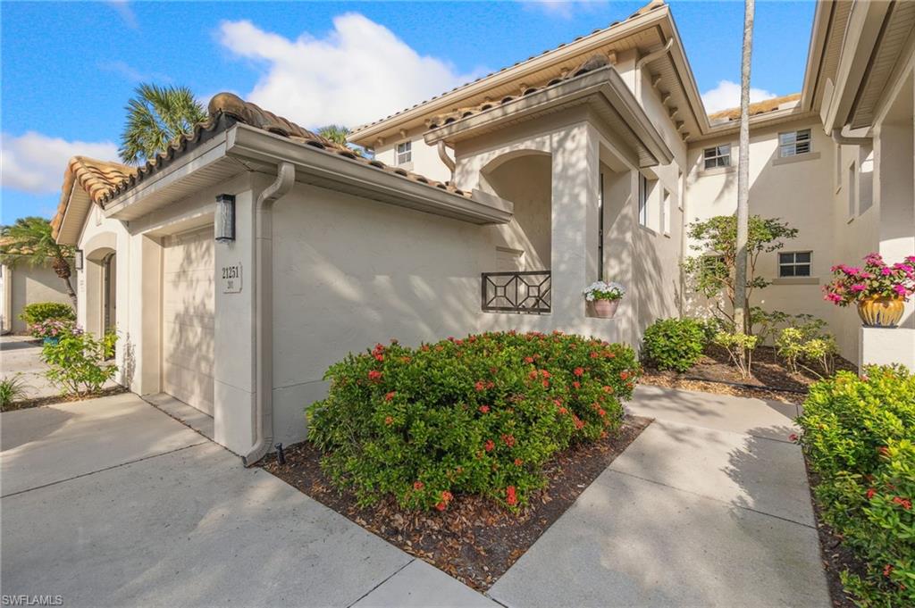 Virtual Tour Available | *Golf Membership Included* Welcome to 21758 Sound Way #202, showcasing one of the single most breathtaking views throughout the entire community, with private pool-side location and easy gate access, all from Pelican Sound’s favorite premium floor plan with 2-car garage. Prepare to be inspired by the panoramic lake and golf views wrapping around your second-floor coach home in the treetops. Immediately beyond the oversize lanai with walls of glass sliders and bonus electric hurricane shutters for peace of mind, rests an iconic wooden bridge connecting a tapestry of blues and greens, where wading waterfowl, tropical plants and wildlife abound with visual interest. Inviting great room floor plan features a central kitchen and living spaces, soaring ceilings, the privacy of a split bedroom floor plan, plus a versatile den or office that could easily double as a fourth bedroom as needed. Dining options as configured include a breakfast room immediately adjacent to kitchen, breakfast bar, dining room in great room, and ample space on the lanai for both extra seating and entertaining around the table. Another unique and noteworthy feature is the location in relation to the neighborhood pool: it's next door, only a few skips away, however it's conveniently shielded by the neighboring property from possible privacy concerns, resulting in all the upside without any tradeoffs. This Oak Run coach home is presented in move-in-ready condition, but the optimal combination of prime location, view, and floor plan presents an attractive opportunity for a lucky buyer to personalize with tremendous flexibility. Pelican Sound is the region’s preeminent bundled golf community, with a reputation for fabulous amenities and welcoming people. The bundled approach to membership is instrumental in keeping fees low in a market where golf club initiation fees are routinely measured in hundreds of thousands of dollars. In addition to its 27-holes of championship golf, Pelican Sound membership also includes Gulf-access boating and optional storage, 14 Pickleball courts, 8 Har-Tru tennis courts, 6 Bocce courts, four different dining locations from updated and diverse clubhouses within the community, plus attended fitness center, dog park, and more. Pelican Sound’s convenient location is just a short drive from the beach, shopping, RSW, and countless local restaurants. Even better: 21758 Sound Way #202 is located just a short walk from the back gate on Williams for especially easy access. This home is priced to sell, and we expect it to go quickly. Schedule your showing today!