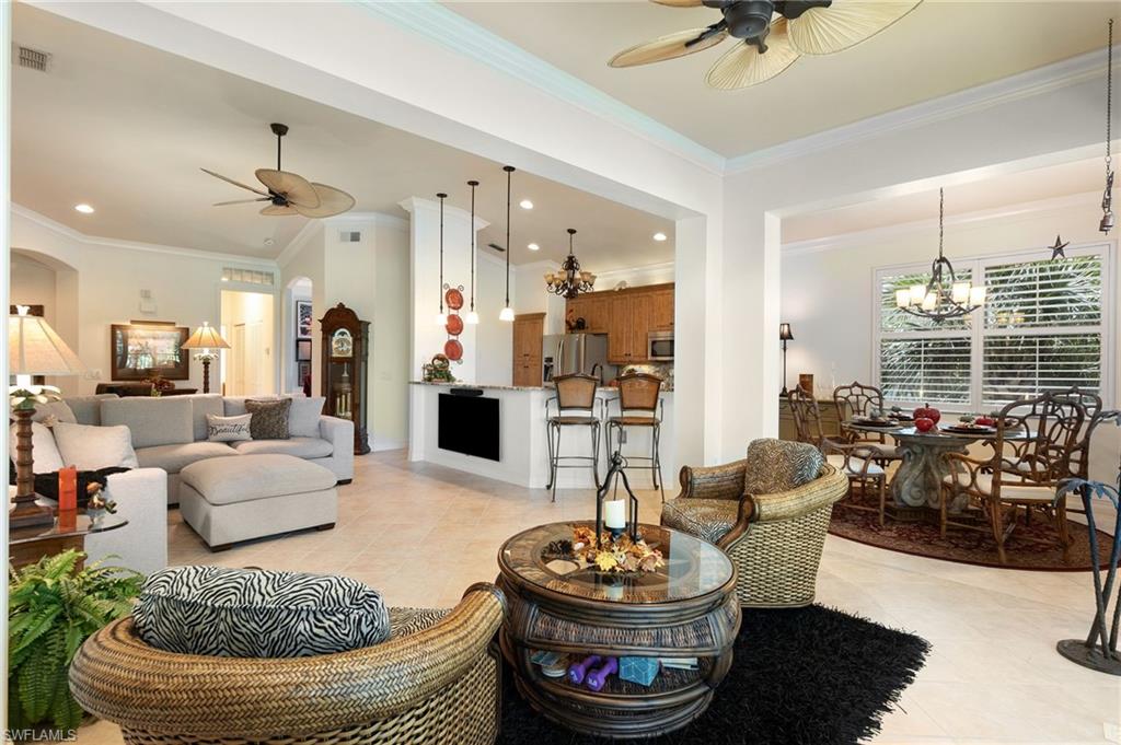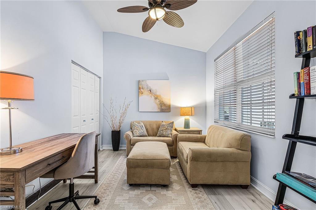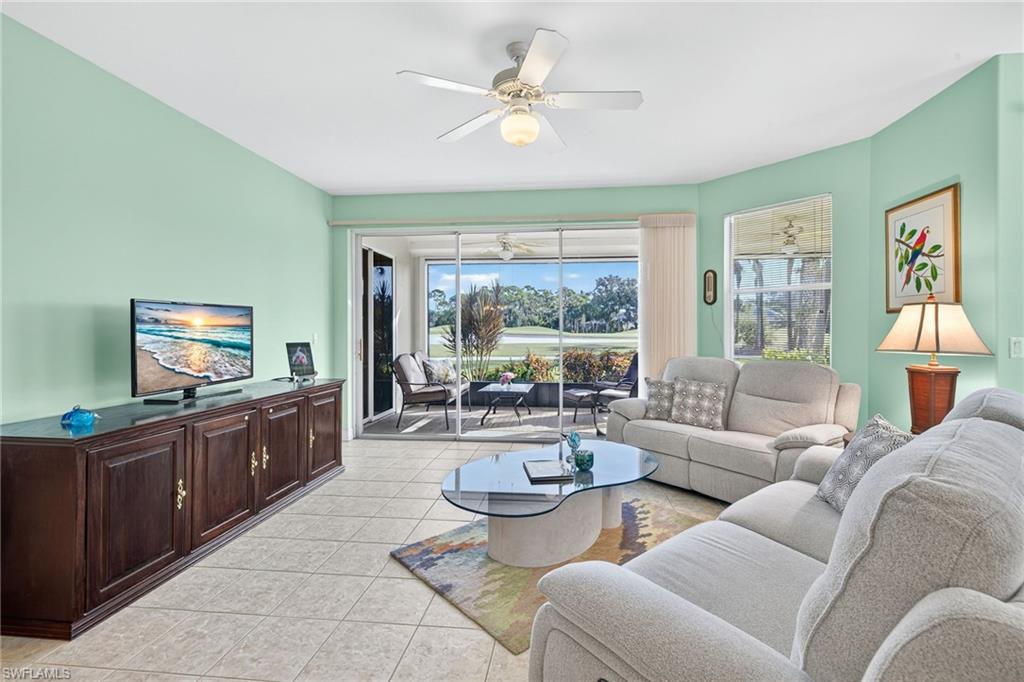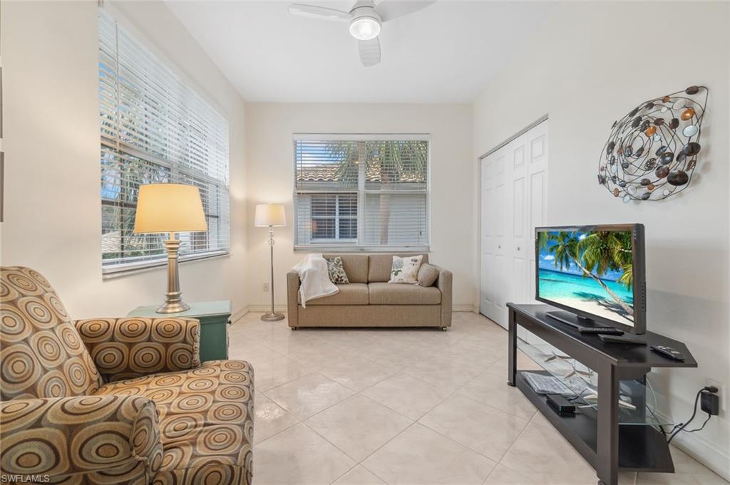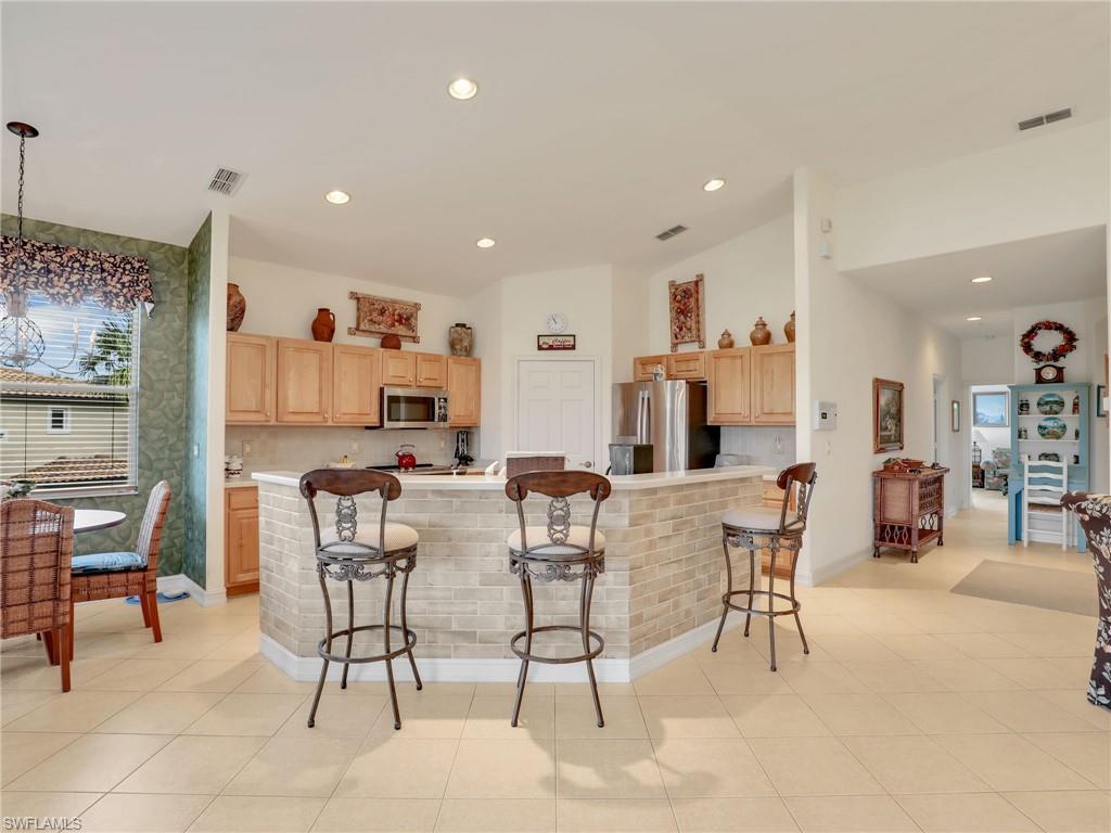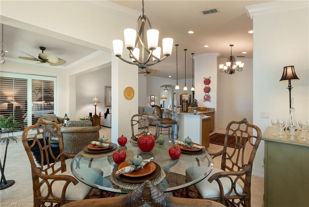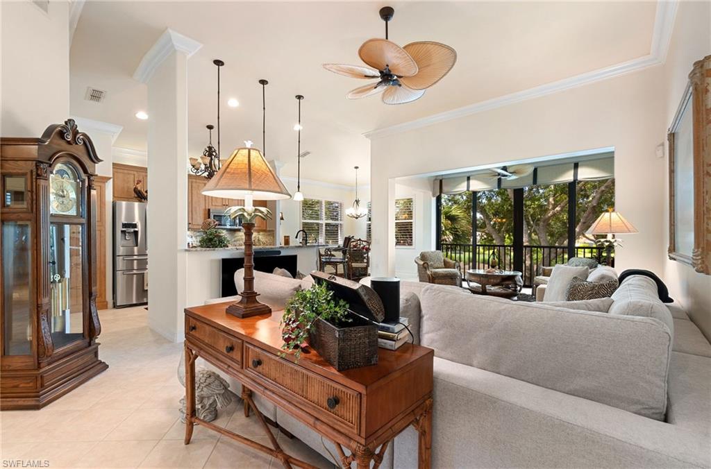 Bright & Spacious Lakeview Home with Desirable Open Floor Plan! Step into this beautiful residence featuring an open kitchen and great room layout, with chic contemporary decor and furniture. Perfect for entertaining and everyday living! Enjoy tile flooring in the main living areas and newer carpet in the bedrooms for comfort and style. The eat-in kitchen boasts a breakfast bar and flows seamlessly into the vaulted-ceiling living space, filled with natural light from its eastern exposure. The primary suite offers a tranquil retreat with a tray ceiling, private lanai access, and a custom walk-in closet system. The en-suite bath includes dual sinks and a sleek frameless glass shower. Guests will appreciate the privacy of a separate bedroom and bath, while the spacious den—complete with laminate wood flooring, a pull-out couch, and plantation shutters—adds versatility for work or relaxation. Unwind on the screened lanai overlooking the serene lake, and enjoy modern conveniences like a tankless hot water heater and a laundry room with cabinetry and newer washer/dryer. This home combines comfort, functionality, and scenic charm, and is being offered turnkey furnished. Just unpack and enjoy the resort life! If you are looking for an active lifestyle look no further: 27 holes of Championship golf, 14 pickleball, 8 tennis and 6 bocce courts. State of the art fitness center that is professionally staffed. Pelican Sound is nestled up to the Estero River with access to the Gulf. The community offers dry boat storage, kayaks, canoes and paddle boarding, along with a shuttle boat to Lovers Key State Beach Park. Minutes from RSW International airport and surrounded by fabulous shopping and restaurants. Start Living The Dream!