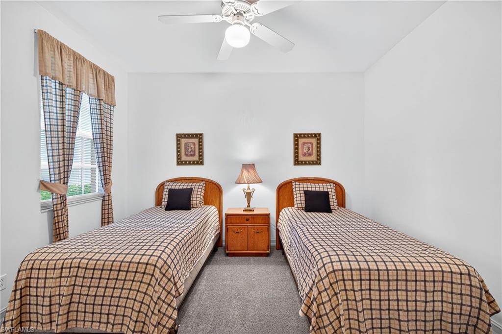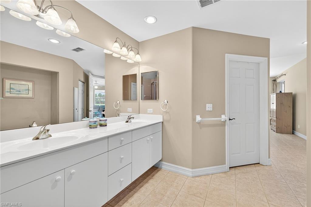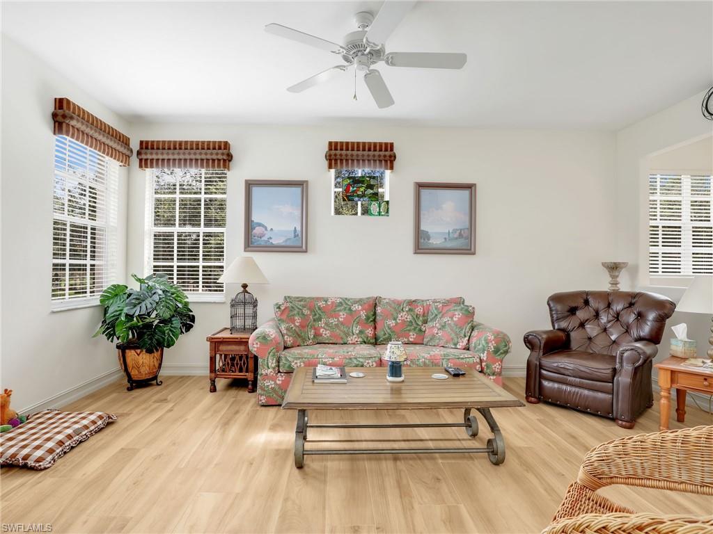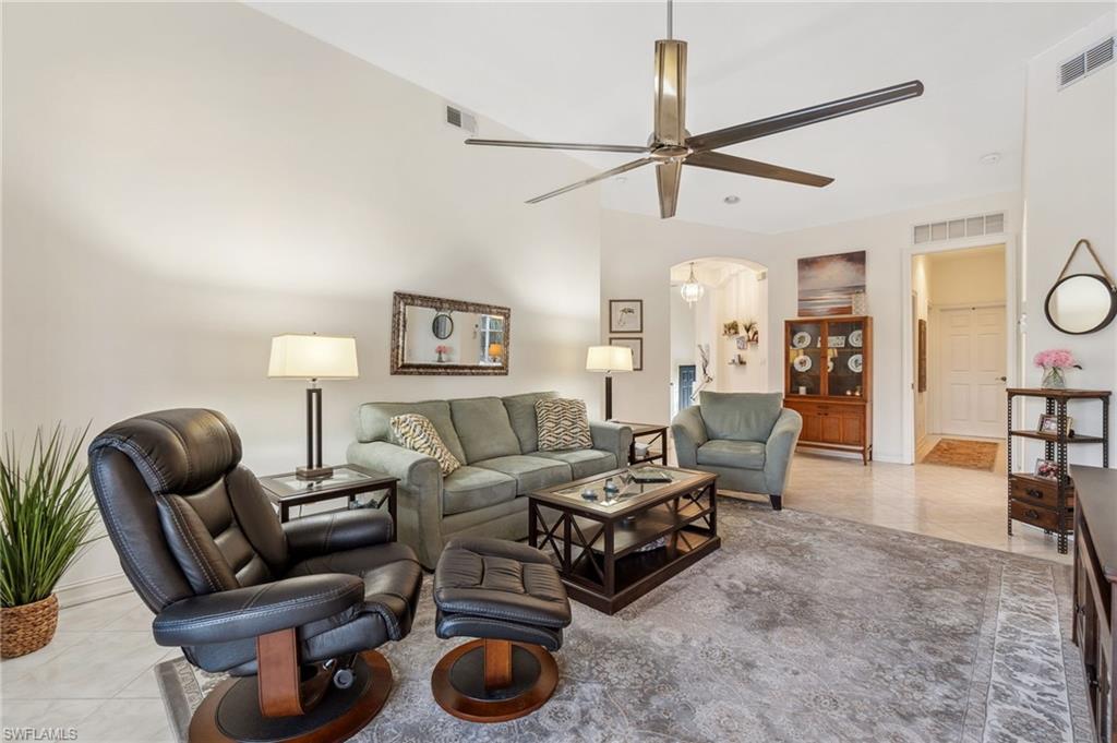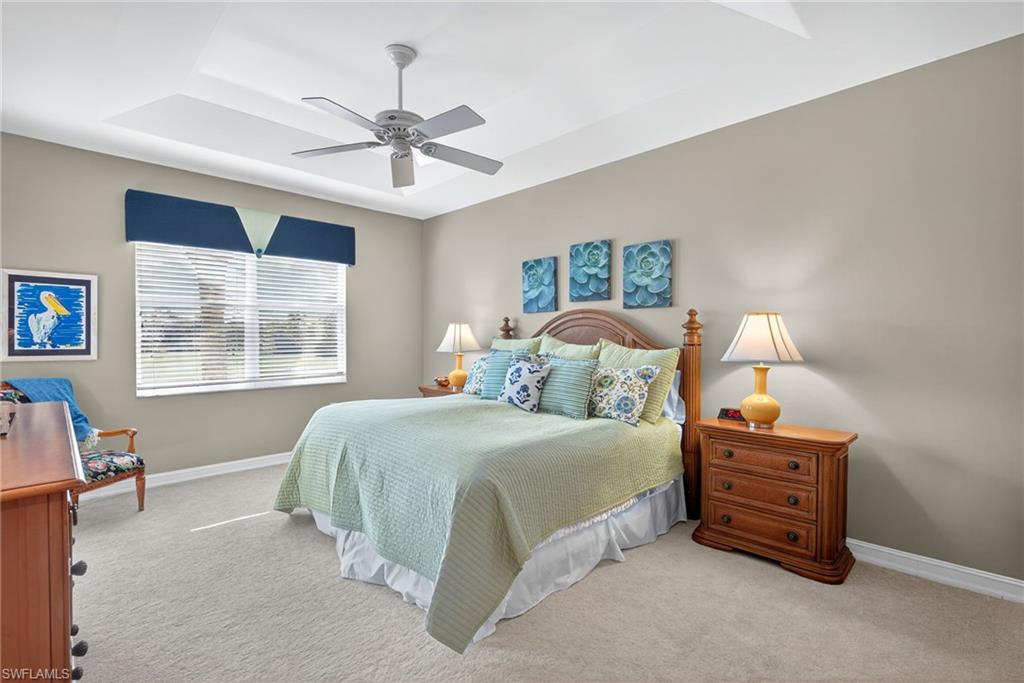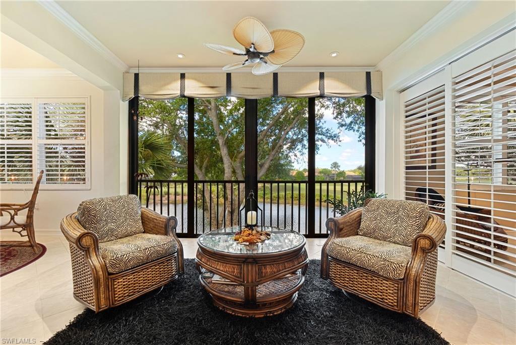 Bright & Spacious Lakeview Home with Desirable Open Floor Plan! Step into this beautiful residence featuring an open kitchen and great room layout, with chic contemporary decor and furniture. Perfect for entertaining and everyday living! Enjoy tile flooring in the main living areas and newer carpet in the bedrooms for comfort and style. The eat-in kitchen boasts a breakfast bar and flows seamlessly into the vaulted-ceiling living space, filled with natural light from its eastern exposure. The primary suite offers a tranquil retreat with a tray ceiling, private lanai access, and a custom walk-in closet system. The en-suite bath includes dual sinks and a sleek frameless glass shower. Guests will appreciate the privacy of a separate bedroom and bath, while the spacious den—complete with laminate wood flooring, a pull-out couch, and plantation shutters—adds versatility for work or relaxation. Unwind on the screened lanai overlooking the serene lake, and enjoy modern conveniences like a tankless hot water heater and a laundry room with cabinetry and newer washer/dryer. This home combines comfort, functionality, and scenic charm, and is being offered turnkey furnished. Just unpack and enjoy the resort life! If you are looking for an active lifestyle look no further: 27 holes of Championship golf, 14 pickleball, 8 tennis and 6 bocce courts. State of the art fitness center that is professionally staffed. Pelican Sound is nestled up to the Estero River with access to the Gulf. The community offers dry boat storage, kayaks, canoes and paddle boarding, along with a shuttle boat to Lovers Key State Beach Park. Minutes from RSW International airport and surrounded by fabulous shopping and restaurants. Start Living The Dream!