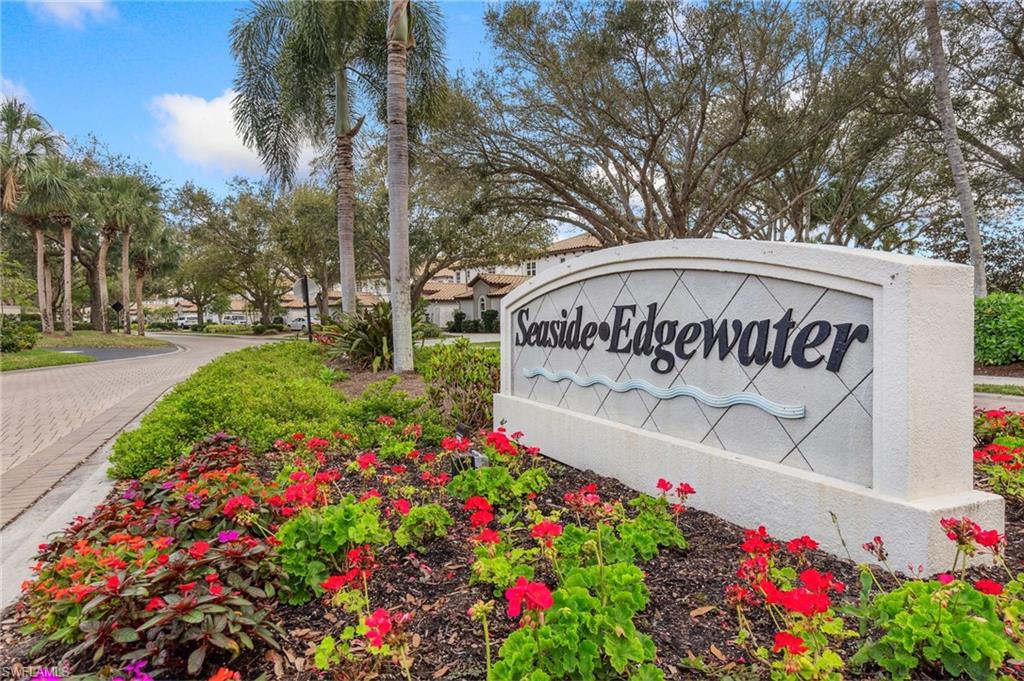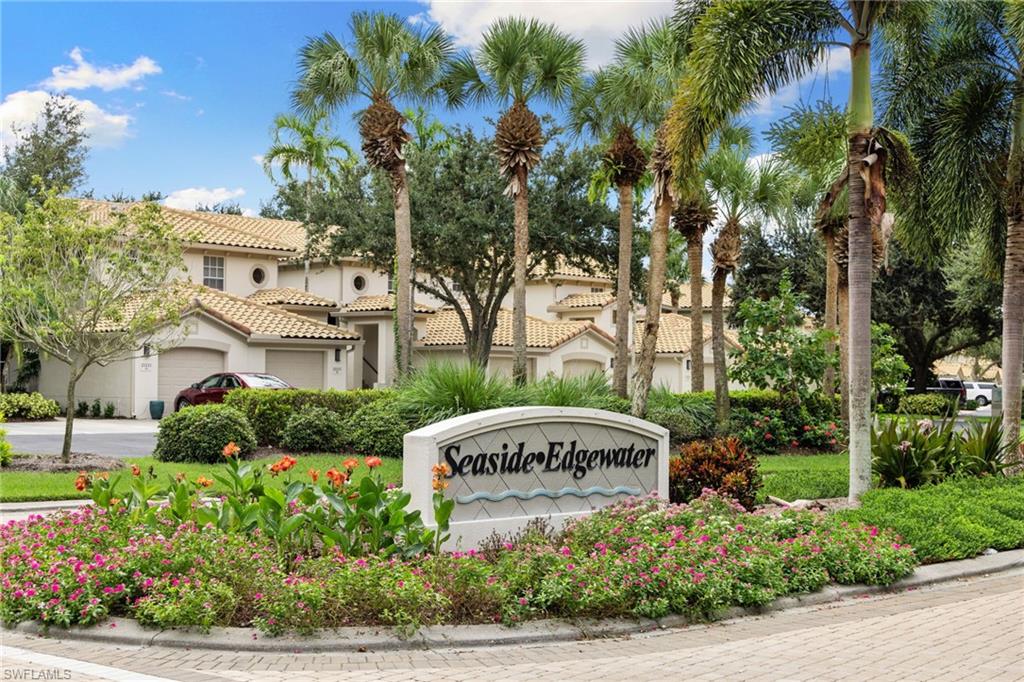 Move right into this immaculate second floor coach home in southwest Florida's premier bundled golf community, Pelican Sound. This home is furnished with coastal chic furniture, decor, and custom lighting, and offers a fairway view of the first hole on the Lakes course. The kitchen features updated counters, 42 inch cabinetry, glass backsplash, and pull out drawers. The serene primary suite offers a tray ceiling, lanai access, walk in closet, and updated bath with dual sinks, new tiled shower and seamless shower door. There is a pocket door to the hallway for the guest bedroom with adjacent guest bath offering fantastic privacy, and the third bedroom offers space saving pocket door, with a closet. This room is currently used as an office/den with a pull out couch. Other upgrades are plantation shutters throughout, large tile on the diagonal in living area, tiled lanai, newer washer and dryer with cabinetry in the laundry, new a/c in 2024, and electric hurricane shutter on lanai - making this home as functional as it is beautiful. Park your car or golf cart in the garage with epoxy floor! Brand New Roofs were just added to Edgewater II and New exterior lighting. Just move in and enjoy! If you are looking for an active lifestyle look no further: 27 holes of Championship golf, 14 pickleball, 8 tennis and 6 bocce courts. State of the art fitness center that is professionally staffed. Pelican Sound is nestled up to the Estero River with access to the Gulf. The community offers dry boat storage, kayaks, canoes and paddle boarding, along with a shuttle boat to Lovers Key State Beach Park. Minutes from RSW International airport and surrounded by fabulous shopping and restaurants. Start Living The Dream!