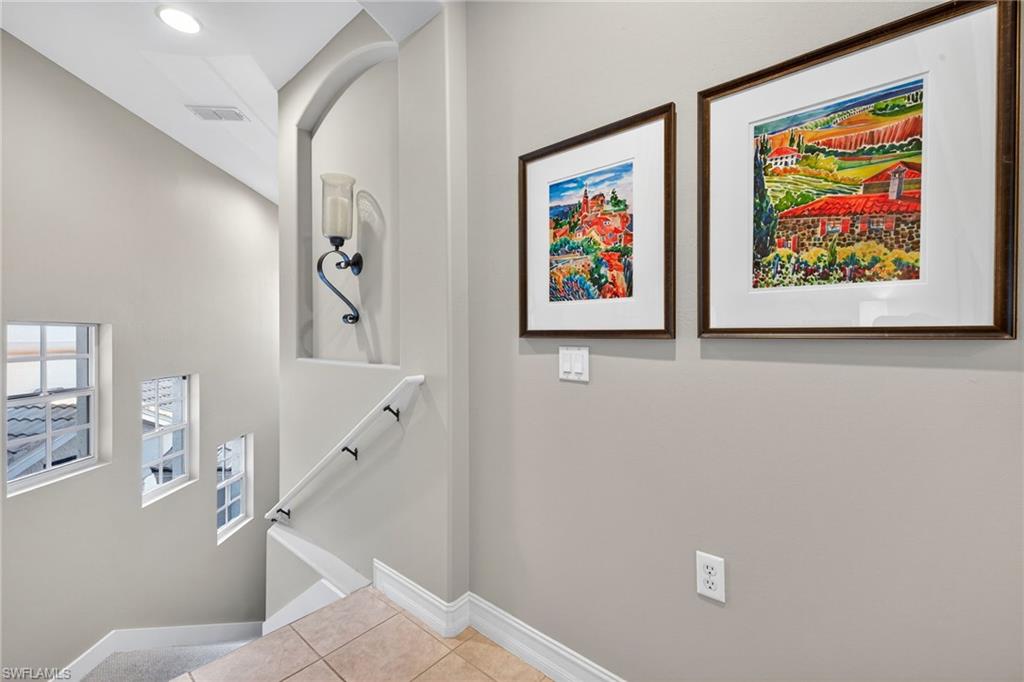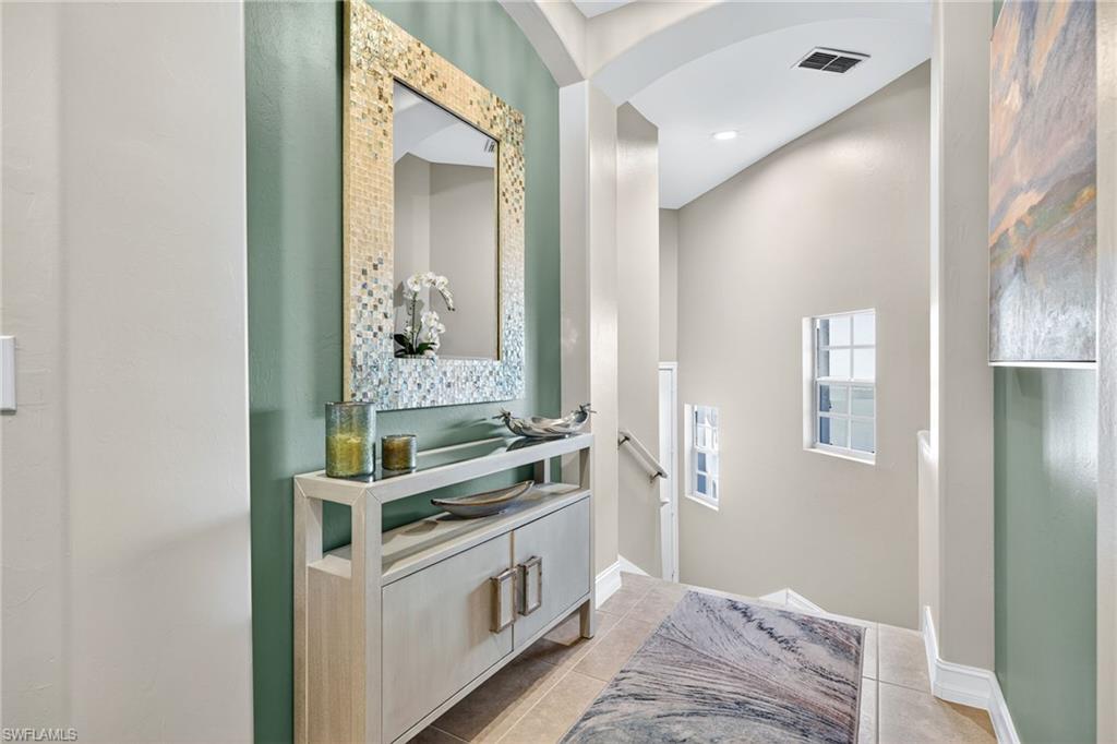 Immediate Golf Membership is included with this former “WCI” decorated model featuring over 250k in designer upgrades.. This 2nd floor 3 bedroom plus den coach home offers 2 bathrooms and an oversized 2 car attached garage located behind the gates of prestigious Pelican Sound. This home was chosen by the developer because of its unparalleled SW exposure highlighting the spectacular golf course and expansive long lake views. This lovely property offers over 2100 sf of pure living bliss in the most sought after bundled golf neighborhood in SW Florida. Upon entering the home, you will notice the upgraded paint and tile flooring on the stairway. The private office is perfect for the work from home or self employed enthusiasts with plenty of space to work in true comfort. The open great room concept features soaring ceilings and a central kitchen and living space. Dining options are plentiful including a breakfast room next to the kitchen, a breakfast bar, a formal dining room and of course alfresco dining on the patio. The primary retreat is spacious and features a tray ceiling, new tile floors and a well designed primary bath with an extra large shower with custom glass. The 2nd bedroom and bathroom as well as the bonus room / 3rd bedroom offer complete comfort and privacy for family and weekend guests. The den / office offers unlimited opportunities and can substitute for a 4th bedroom as needed for your family and friends. The outdoor living space in this home is exceptional, offering an expansive “ L shaped wrap around” lanai that has been finished beautifully including extended tile and “Storm Smart” hurricane protection for complete peace of mind. The sunsets are simply breathtaking and show off the magnificent scenery that only this property can offer. This home is proudly offered turnkey and is in move-in-ready condition. The prime location, exceptional views and flexible floor plan provide any buyer with a wonderful opportunity to live in a premier bundled golf community within minutes to shopping, dining, entertainment, the beaches and RSW airport. Pelican Sound is the region’s premier bundled golf community known for its superb amenities and welcoming atmosphere. The bundled membership approach keeps fees low, a significant advantage in a market where golf club initiation fees can often reach hundreds of thousands of dollars. In addition to 27 holes of championship golf, a Pelican Sound membership includes Gulf-access boating (with optional storage), 14 Pickleball courts, 8 Har-Tru tennis courts, 6 Bocce courts and four diverse dining locations within updated clubhouses. Residents also benefit from an attended state of the art fitness center and a dog park for our furry friends. Pelican Sound's convenient location provides a short drive to the beach, shopping, RSW airport, and numerous local restaurants and include a rear gate of Williams for easy access.