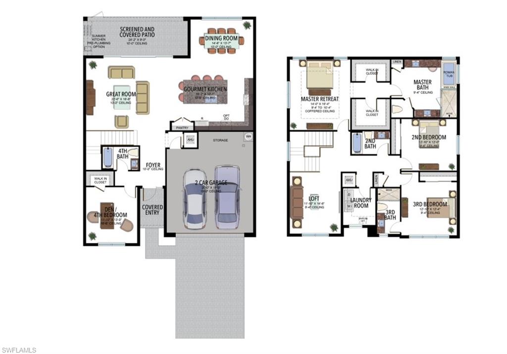 HUGE SUMMER SAVINGS! 4.99% interest rate and closing incentives available for a limited time (subject the availability)! Immediate occupancy! Denali floor plan home in the highly sought-after Rivercreek community in Estero! This beautiful home has stunning finishes and features 4 bedrooms, 4 bathrooms, and a loft, offering the perfect blend of luxury and functionality. With over 2,900 square feet of living space, this home is designed for both comfort and style. The open-concept design creates an inviting flow between the kitchen, living, and dining areas, ideal for entertaining. Featuring upgraded cabinetry, stainless steel appliances and gas cooking, quartz countertops, and a large island, this kitchen is a chef’s dream. High ceilings and large windows fill the great room with natural light and provide serene views of the private lanai and backyard. The large master bedroom includes a tray ceiling, walk-in closets, and a spa-like en-suite bath with dual vanities, a soaking tub, and a separate shower. Step outside to your covered, screened lanai – perfect for enjoying the Florida lifestyle, whether you're relaxing or entertaining. From engineered hardwood flooring to chef's kitchen, every detail has been thoughtfully considered in this home. Rivercreek offers a gated, secure environment with resort-style amenities including a clubhouse, pool, fitness center, and more. Ideally located near shopping, dining, and entertainment, plus easy access to I-75, SWFL International Airport, and pristine Gulf Coast beaches.