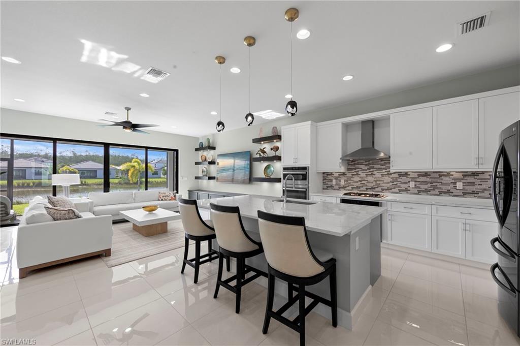New construction available for Immediate Occupancy! This "Denali" home with Lake View offers Impact Resistant Windows throughout and has 4 Bedrooms plus a Loft, 4 Baths, and a 2-Car Garage, an open kitchen with stainless steel GE Appliances including Gas Cooktop and Quartz Countertops. The master bedroom offers a coffered ceiling, spacious closets and master bath. Other features include: upgraded window coverings, modern exterior with cultured stone, and room for a future pool if desired. RiverCreek is Estero’s hottest new gated community and features numerous amenities for everyone including a 12,000 square foot Clubhouse with Resort–style pool, event room, fitness center, indoor sports court, tennis, pickleball, basketball and more!
