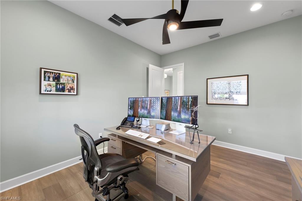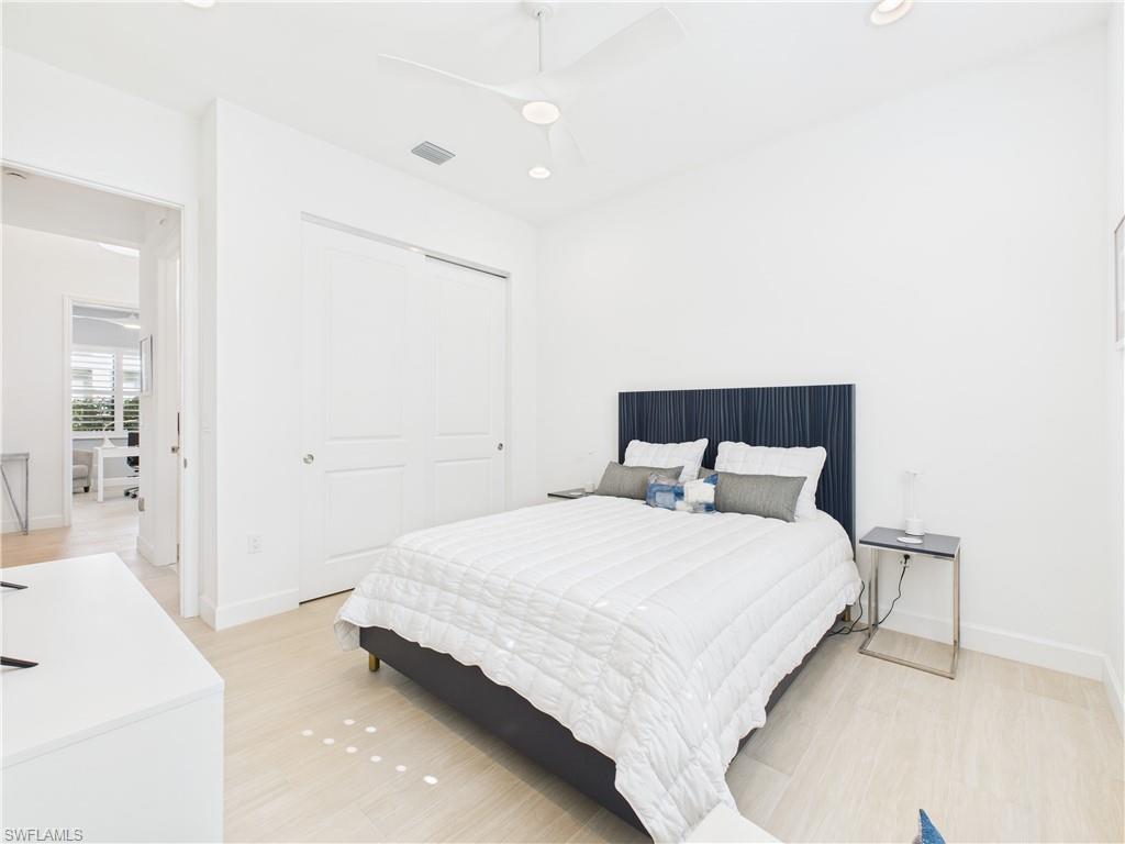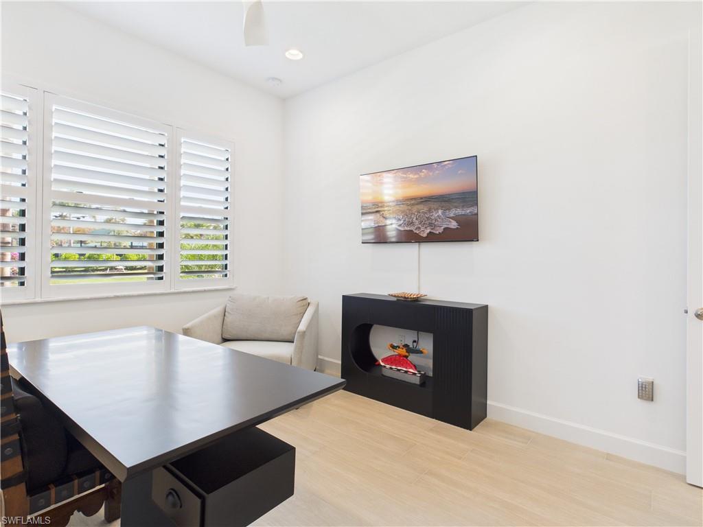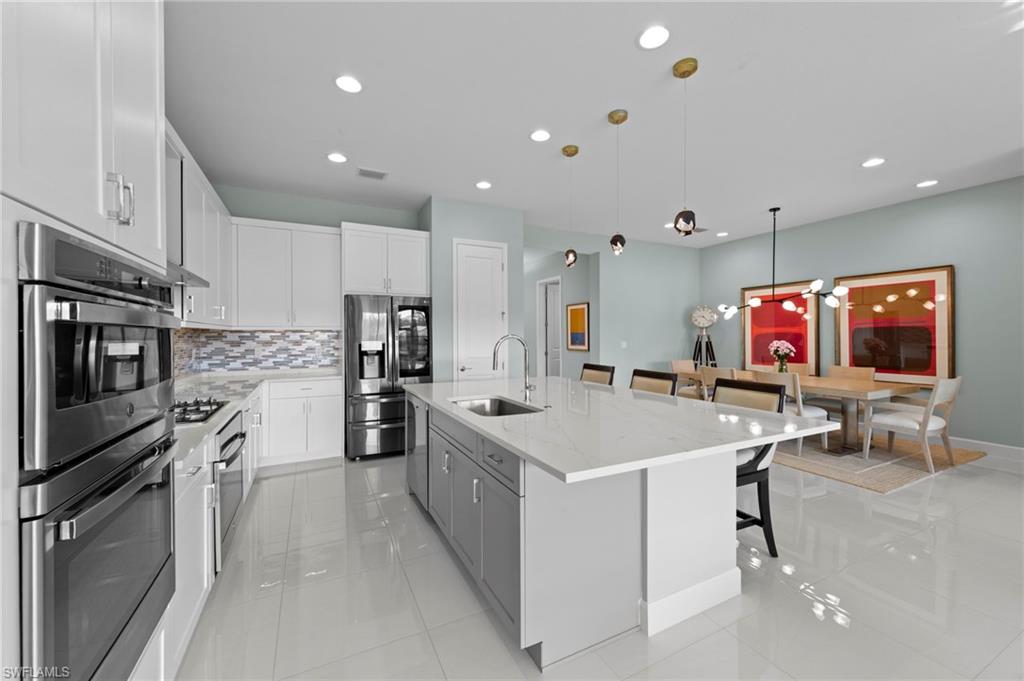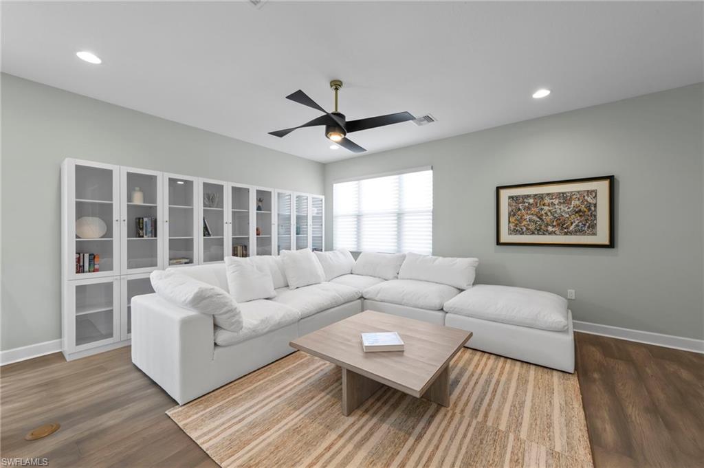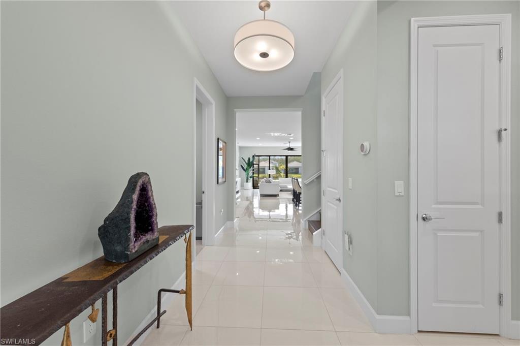 Welcome to this stunning lakefront home, built in December 2023 by award-winning GL Homes, located in the highly sought-after Corkscrew Corridor. This single-story residence offers 3 bedrooms + den (or optional 4th bedroom), 3 bathrooms, Impact-resistant windows and doors for peace of mind and provides 2,135 sq. ft. of living space with a 2-car garage. Designer upgrades throughout: new high-end lighting, fans, and plantation shutters, fresh interior paint and tile plank flooring for a modern, cohesive look. Quartz countertops make the chefs kitchen a delight along with 42" white shaker cabinets and stainless-steel appliances. Natural gas house w/oven, dryer, and hot water heater for efficiency and performance. Volume ceilings and tall doorways create an open, airy feel, new Kohler toilets, master bath fixtures, and frameless shower door. Custom closet cabinet systems and remote-control solar shades in the living room. New epoxy garage floor for durability and style, tile roof, paver driveway and screened lanai with mounted 55" Smart TV. New landscaping enhances curb appeal and plenty of room in the backyard for a pool. Ring-style Doorbell and Security System. Community & Amenities (opened in December 2024): Located in a gated community of only 554 homes. Residents enjoy low HOA fees and an unmatched amenity package: 12,000 sq. ft. clubhouse with indoor sports complex (basketball, fitness, yoga, billiards, card/game room, catering kitchen, lounge, meeting room). Resort-style pool w/ Cabanas, 6 lighted pickleball courts, 4 lighted tennis courts, bocce ball, outdoor basketball, playground, splash park, firepit, picnic area & sidewalks throughout for easy access to amenities, lawn care, irrigation, exterior pest control, and 24/7 security included. This home combines luxury finishes, modern convenience, and resort-style living in one of Southwest Florida’s most desirable locations close to: Miromar Outlets, Coconut Point, University Village, Gulf Town Center, Florida Gulf Coast University, Lee Health Hospital, Public Golf Courses, Estero Park & Sports Complex, Walking Trails & Bike Paths. RSW AIRPORT & I-75 are just minutes away for easy access to the BAREFOOT BEACH, Fort Myers Beach, LOVER'S KEY and all that NAPLES has to offer! This is the perfect Primary and Vacation Residence or as a Seasonal or Annual Rental for Investors (no waiting period)! Pet Friendly (no weight or number of pets restrictions)!