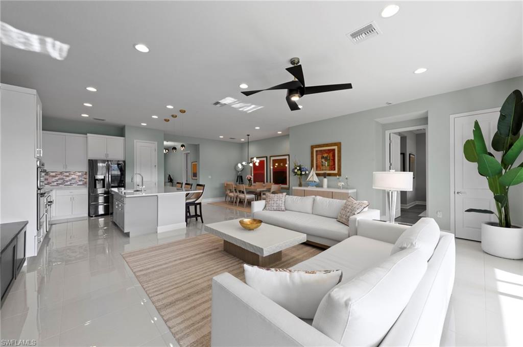New construction available for Immediate Occupancy! This "Denali" home offers Impact Resistant Windows throughout and has 4 Bedrooms plus a Loft, 4 Baths, and a 2-Car Garage, an open kitchen with stainless steel GE Appliances and Quartz Countertops. The master bedroom offers a coffered ceiling, spacious closets and master bath. Other features include: window coverings, engineered Wood in main living, stairs, and loft (tile in bathrooms & carpet in bedrooms), Interior Paint Upgrade, Window Coverings and more! RiverCreek is Estero’s hottest new gated community and features numerous amenities for everyone including a 12,000 square foot Clubhouse with Resort–style pool, event room, fitness center, indoor sports court, tennis, pickleball, basketball and more! Photos are the Denali model, not the actual home.