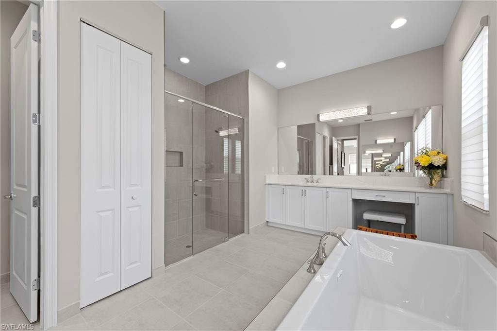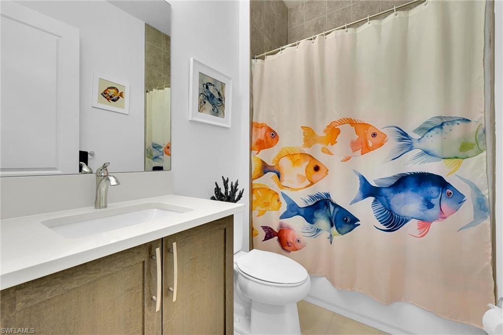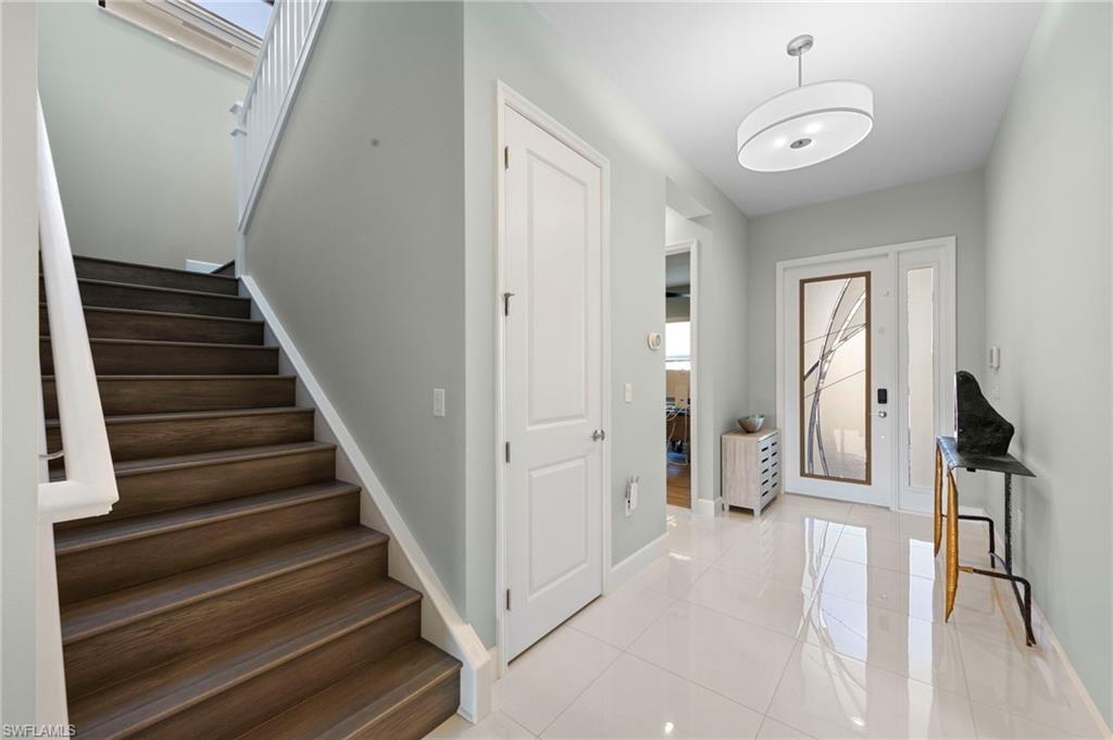 Stunning 4-Bedroom Lakeview Pool Home with Loft, Pool & Designer Finishes! Experience luxury living in this beautifully appointed 4-bedroom plus Loft, 4-bathroom single-family pool home, perfectly designed for comfort and style. Located in a serene community with breathtaking lake views, this pool home offers an impressive blend of indoor and outdoor living. Inside, you’ll find a spacious open floor plan with elegant tile flooring throughout and a cozy fireplace TV wall that creates the perfect focal point for the main living area. The gourmet kitchen is a chef’s dream, featuring quartz countertops, a gas stove, double oven, stainless steel appliances, and ample cabinet space. Upstairs, a versatile loft provides flexible space for a home office, playroom, or media area. The large owner’s suite is a private retreat with two sinks, a walk-in shower, and a luxurious Roman tub—perfect for unwinding after a long day. Enjoy Florida living at its best with a private pool, fenced backyard, and a stunning lake view that makes every sunset feel like a vacation. The 2-car garage adds convenience, and the layout is ideal for both everyday living and entertaining. This pool home truly has it all—Impact Hurricane windows, modern upgrades, functional space, and a location that combines privacy with beauty. So many upgrades such as professional motorized blinds that are room darkening, upgraded showers/shower enclosures, widened driveway, upgraded washer/dryer, and extra storage add a touch of luxury to this already impressive home. The RiverCreek Community has so many things to offer for the entire family and boasts a 12,000 sq ft Clubhouse with an Indoor Sports Complex, a Resort Style Pool, Fitness Center/Exercise Studio, Event Room, Catering Kitchen, Card Salon, Sports Lounge, Fire Pit, Playground, Splash Park, Lighted Courts for Pickleball, Tennis and Bocce. That's over 4,000 Acres of Amenities! Don't miss your chance to own this beautiful property in one of Estero's most desirable neighborhoods! NO FLOOD INSURANCE REQUIRED!