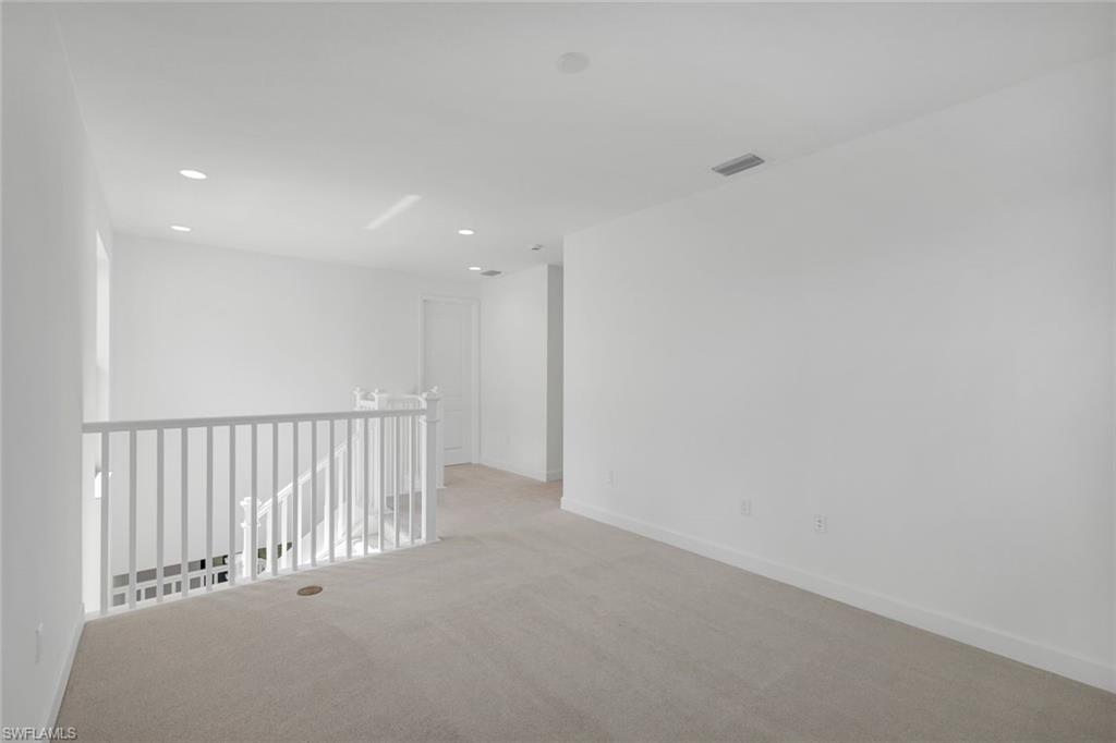 This brand-new “Biscayne” model will be ready for move-in this September or October in RiverCreek, Estero’s premier gated community. Built with impact-resistant glass and a modern exterior featuring cultured stone, glass entry doors, and an upgraded landscape package, the home offers stunning curb appeal along with a peaceful lake view. An extended driveway adds extra convenience, while the backyard provides room for a future pool. Inside, the Biscayne showcases rectified 24x24 tile in the main living areas, quartz countertops throughout, and upgraded Shoji White interior paint accented by upgraded window coverings. The gourmet kitchen is a standout with a chimney-style hood, GE stainless steel appliances—including a gas range—and an upgraded electrical package for added functionality. Additional thoughtful details include pre-plumbing for a future laundry sink and carpeted bedrooms for comfort. Offering 3 bedrooms, 4 bathrooms, a den, a loft, and a 2-car garage, the layout is both flexible and spacious. The primary suite features large closets and a spa-style bath with both a soaking tub and a walk-in shower. Upstairs, the loft creates the perfect space for a media room, play area, or additional office. RiverCreek residents enjoy a vibrant lifestyle with a 12,000-square-foot clubhouse, resort-style pool, state-of-the-art fitness center, indoor sports complex, and multiple courts for basketball, tennis, and pickleball. With shopping, dining, and the best of Southwest Florida just minutes away, this home perfectly blends modern comfort with a resort-inspired community lifestyle. Please note: photos shown are of the model home and may feature options and upgrades not included in the home for sale.