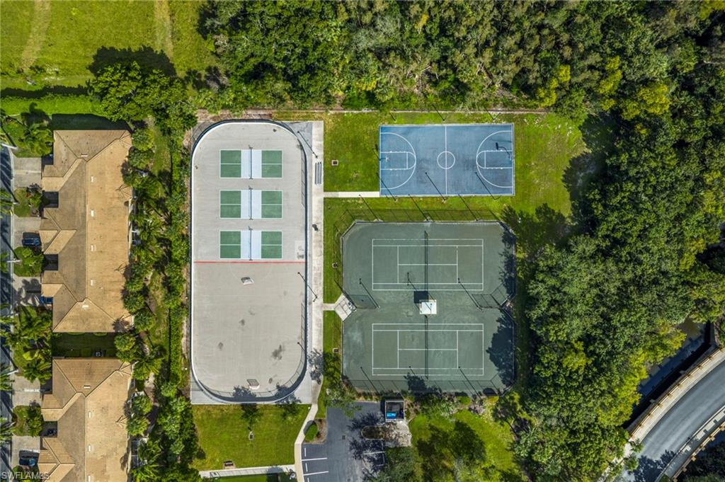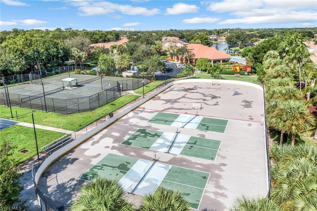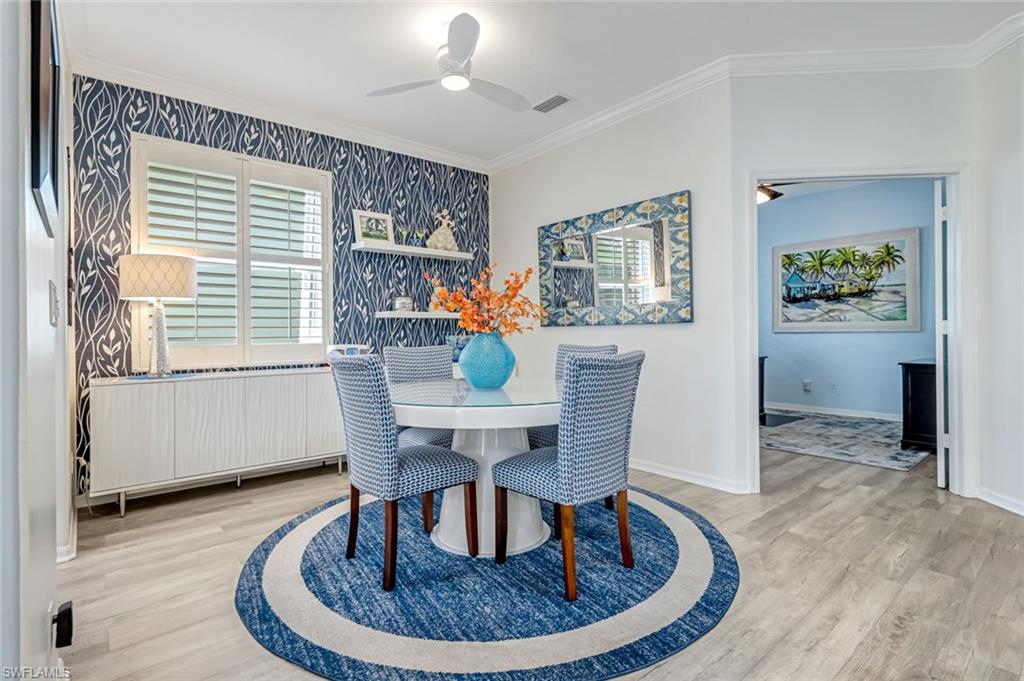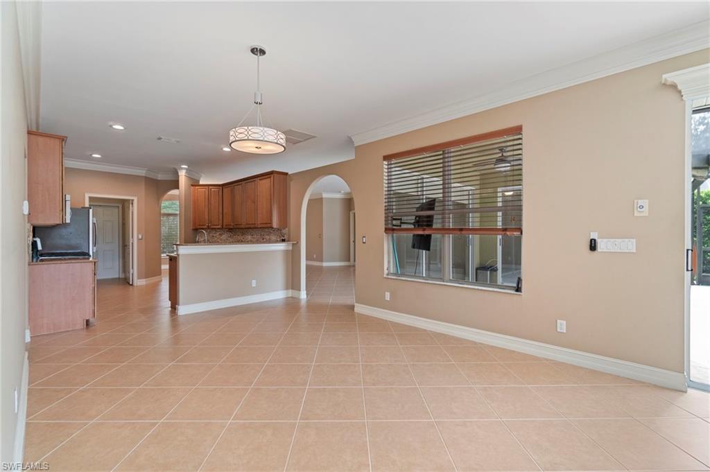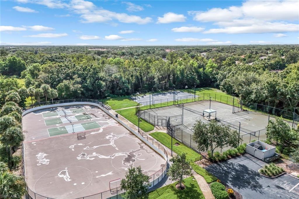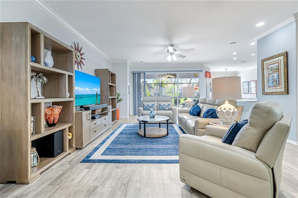 Your sunny Southwest Florida search ends here – this is The One! Start with excellent curb appeal, as mature trees and manicured landscaping gives a great first impression to prospective residents and guests alike. Past the garden area, you’ll find the interior to be reminiscent of a model home - from the coastal-themed furnishings to design choices that take full advantage of abundant natural light. Spanning 2076 square feet under air, this immaculately maintained home consists of two bedrooms, a den, two full baths, and multiple common areas. Both bedrooms are spacious, with the guest bedroom significantly larger than those found in Estero’s new construction neighborhoods. The kitchen, modern and stylish, features a natural gas range, stainless steel appliances, and stone counters that accommodate bar seating. Those familiar with Florida Living will appreciate the tile floors in nearly every room, and the garage floor has an epoxy coating that makes cleanup a breeze. Two sets of sliders lead from the dining area to the oversized lanai. The lanai offers the best of both worlds, with a sizable covered section adjoining a much larger area that is complemented by picture window screens offering a panoramic view of the lake & fountain. While there is room for a pool, you may choose to forego the associated maintenance, insurance, and electrical costs in order to preserve such a wonderful space for entertaining friends & family. Speaking of lower insurance costs, this home benefits from a newer roof, hurricane shutters, and an elevation that protected it from water intrusion during the recent storms. Flood insurance is not required, as the structure is not in a flood zone. For those considering a second home in Florida, this is an ideal location - quick access to Southwest Florida International Airport for your family and friends. Rookery Pointe is a gate-secured community conveniently situated near popular upscale & casual attractions. You’ll be minutes from shopping, dining, and entertainment. Close proximity to the expressway means that trips to Naples and Sarasota are a breeze. When you visit, make sure to tour the resort-style amenities that include an exercise room, community pool, pickleball, and tennis. Association fees are low and include cable & internet, irrigation water, and lawn care. This is one of the rare Estero developments without an annual CDD assessment on the tax bill. Make your offer with confidence – an “As-Is” contract is not required. Furnishings are negotiable. Although this home must be seen in person to be appreciated, the 3D virtual tour may tide you over for now!