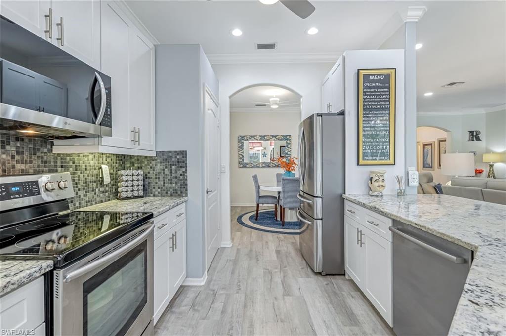 BEST price in Rookery Pointe. Exceptional value for this meticulous single family home which has been updated with NEW interior paint from floor to ceiling and luxurious LVP which flows seamlessly throughout the house (NO CARPET) and a newer, flat tile roof. Location is everything! This Single story, Beautiful home is conveniently located in the natural gas and gated community between 41 and I-75. Well appointed home boasts a spacious, open floor plan with the primary bedroom overlooking the private preserve, dual sink vanity bath, jacuzzi tub, private water closet, two other full bedrooms and full bathroom tucked away behind glass, French doors which create another layer of privacy and quiet for guests or office space. The large kitchen features a gas cooktop, a plethora of cabinet space, pantry and large breakfast bar- seating 4-6 along with an eat in kitchen. The spacious great room spills onto the screened lanai via retractable, 3 sliding glass doors which extends your entertaining space and offers an abundance of natural light. Here, you can relax, enjoy your coffee overlooking the private and peaceful preserve. SW rear exposure. The Preserves of Rookery Pointe protect the home from hurricane damage (NO Flooding from Hurricane Ian, Helene or Milton), hurricane shutters for extra protection. Just a short drive to sandy-white beaches and Steps away from the large clubhouse with screened in party/eating area, where you can enjoy the heated resort style community pool with lap lanes, water aerobics, stretch class, clay tennis courts, pickleball courts, fitness room, inline skating rink, basketball court, and new kids playground with artificial turf! The active community is virtually maintenance free, lawn care included. It is ideally located close to Coconut Point Mall, Miromar Outlets, Gulf Coast Town Center, FGCU, tons of fabulous dining choices, hospitals, right between I-75/US-41 and 1 exit away from RSW airport. Location, Location, Location! New AC 2017. Some photos are virtually staged.