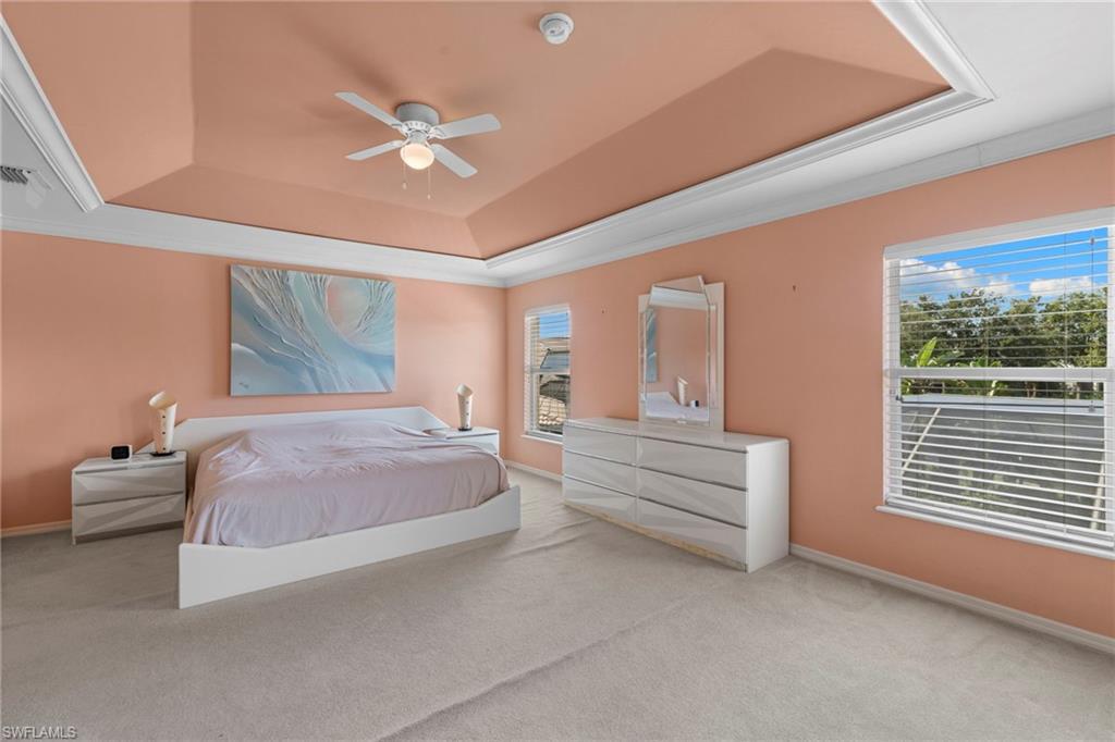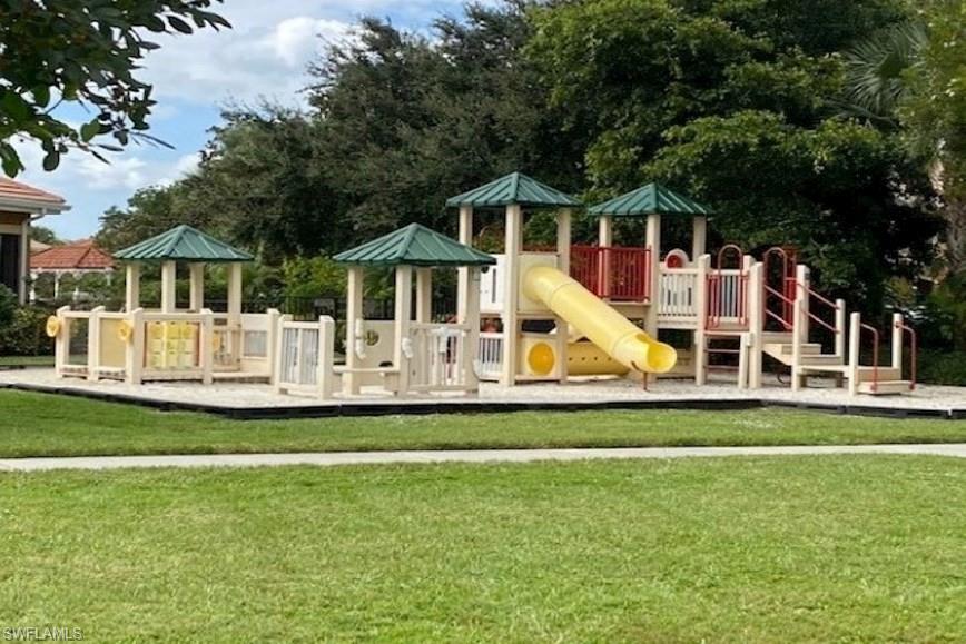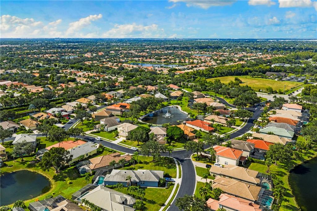 Fully Furnished and MOVE IN Ready! Enjoy your best SWFL lifestyle watching GORGEOUS SUNSETS every evening over looking the water and listening to the tranquil fountain. Welcome home to this hidden gem that is centrally located to everything in SWFL! This Beautiful home is being offered Turn-Key with designer furniture and is situated on a beautiful lakefront lot with an amazing West facing view! The meticulous home boasts 2 large Bedrooms plus den/office with custom built in cabinets (easily can be a third bedroom), two full bathrooms. The large eat-in Kitchen with breakfast bar, has neutral countertops, a plethora of cabinet space, newer stainless appliances, large great room which spills onto the lanai via large Sliding glass doors overlooking the peaceful Lake and fountain. You will enjoy relaxing in your pool or entertaining watching Magnificent Sunsets from your oversized private Lanai! New roof(2022), new pool pump(2025), newer pool heater, custom glass and tile shower, freshly painted lanai. The home also features newly painted oversized two car garage with extra storage space and paver driveway. Enjoy the community amenities with Fitness Center, Resort-Style Pool with Lap Lanes, Water Aerobic classes, large Sundeck, Media Room, Catering Kitchen, Enclosed lanai picnic area, 4,500 SQ FT Club House, brand new turf Playground, In-Line Skating Rink, Pickleball, 2 clay Tennis Courts and a Basketball Court. This low density, gated community's central location is minutes to top notch shopping, dining and entertainment at Coconut Point Mall, Gulf Coast Town Center, Miromar Outlets, RSW Airport and the sandy white beaches of the Gulf No damage and No flooding from past storms. For added protection, home comes with hurricane shutters. Perfectly located to reach anywhere in SWFL quickly. PRICED TO SELL! Don't miss this!