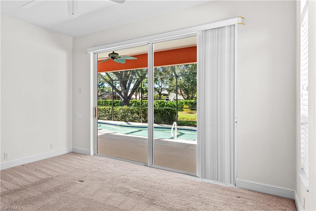 ASSUMABLE 2.25% LOAN FOR QUALIFIED VETERANS! FRESH PAINT AND BRAND NEW CARPET! This stunning 2-bedroom + den pool home in Rookery Pointe, Estero, is designed for comfort, style, and flexibility! Featuring a spacious great room, large walk-in closets in both the primary and guest bedrooms, and French doors to a versatile den that can easily be converted to a third bedroom, this home offers options galore. Enjoy a beautifully upgraded pool area, with fresh acid etching, new tile, and a new heater for year-round enjoyment, all framed by lush new landscaping for added privacy. A new concrete pad by the pool pump simplifies maintenance, while upgraded exterior lighting lets you make the most of your outdoor space day or night. The home is energy-efficient with a 12.5kWh solar panel system feeding into the Lee County grid, set up with Enphase for potential credits. Added features include a new roof (2023), modern flooring, new exterior and interior paint, LED lighting, keypad entry locks, a video doorbell, and a wall-mounted air conditioner plus epoxy flooring in the garage. With its many upgrades, this home provides the perfect blend of luxury and ease.
