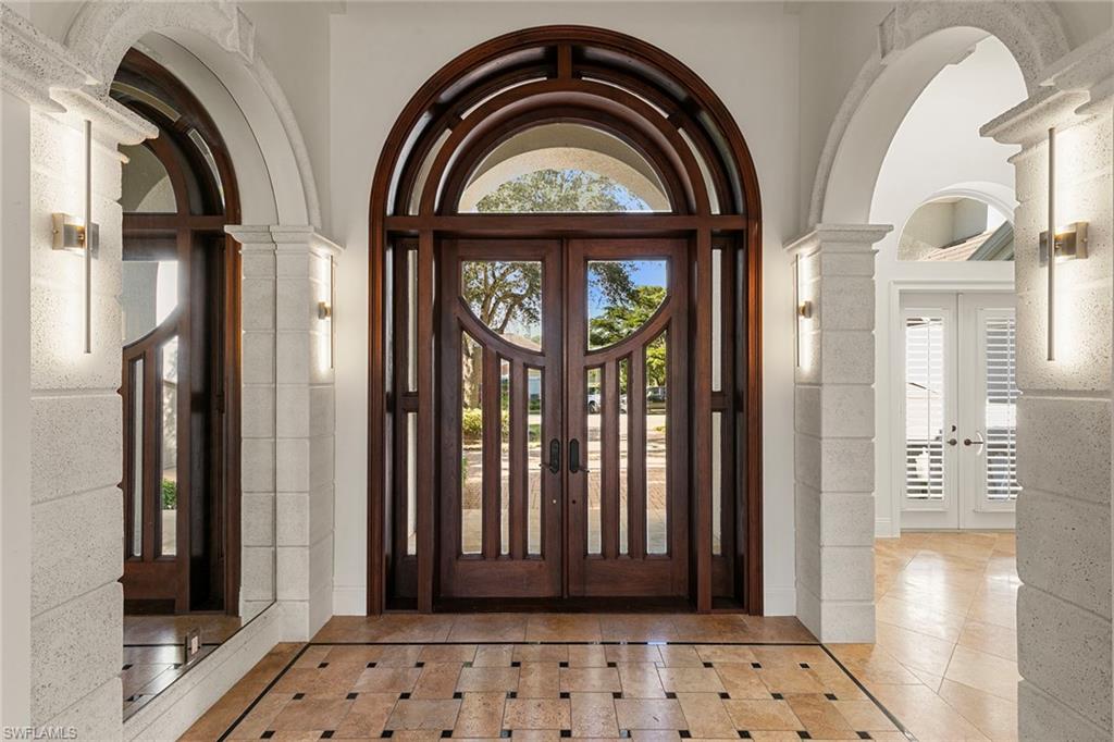 Welcome to this magnificent custom estate in Shadow Wood at The Brooks, where timeless design meets modern luxury. Spanning two floors of elevated living, this home has been meticulously updated inside and out over the past three years, offering the perfect blend of sophistication, comfort, and functionality. Set on a premier golf course lot with tranquil lake views, this residence features over 5,300 sq ft of air-conditioned living space and an exceptional outdoor lifestyle—complete with three verandas, a cozy fireplace, summer kitchen, and a resort-style pool and spa. All exterior elements have been refreshed or replaced, including the roof, driveway, front porch, pool equipment, screen enclosure, outdoor tile, landscape lighting, and irrigation. The outdoor living areas are fully integrated with smart features, including app-controlled pool systems, exterior security cameras, and smart garage openers. Inside, the home is just as impressive. The oversized kitchen has been updated with refinished cabinetry, new custom doors, and commercial-grade Sub-Zero and Wolf appliances, along with a large center island ideal for gathering. A stylish wet bar opens to the formal living room, while the adjacent dining room offers elegant space for entertaining. The family room’s 90-degree zero-edge sliders disappear to reveal seamless access to the outdoor living area, creating a true indoor-outdoor experience. The first floor also includes a spacious study, powder bath, guest suite with private pool bath, and a generous laundry room. The primary suite is a retreat of its own, complete with a morning room and coffee bar, his-and-hers walk-in closets, and a spa-inspired bath with walk-through shower and jetted Roman tub. Upstairs, a billiards room with full bar overlooks the living space below, and two additional guest suites—each with private baths and balcony access—offer comfort and privacy for visitors. Throughout the home, you'll find all-new tile flooring (no overlays), fully renovated bathrooms, Emtek hardware, updated lighting, power shades, Lutron lighting controls, beverage coolers, and ice makers—all lightly used and beautifully maintained. Furnishings are included, with everything less than three years old. This is luxury living redefined—where every detail has been considered, and every finish speaks to quality.