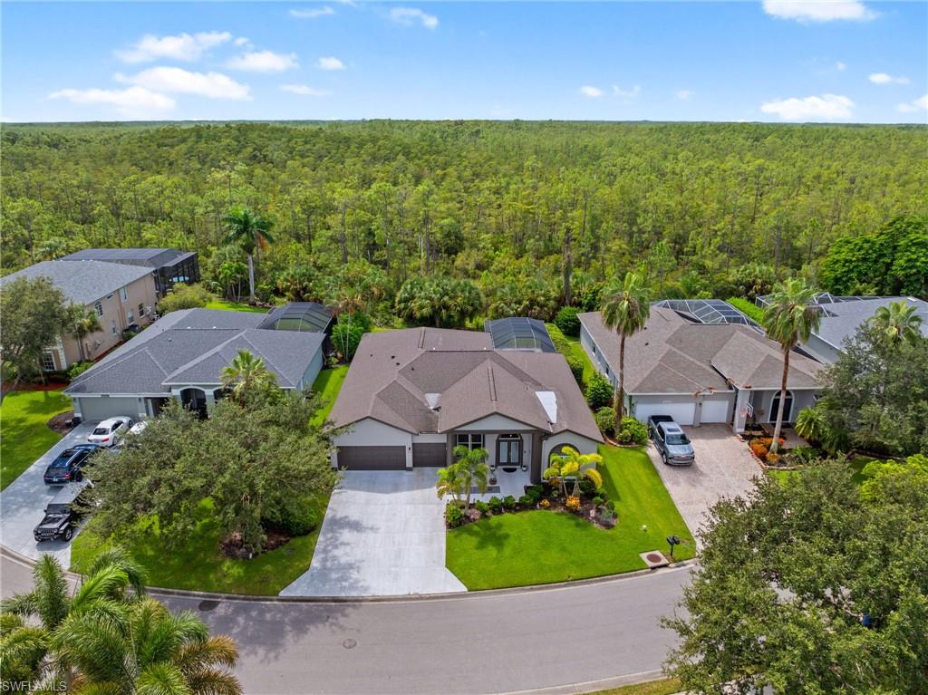 This stunning 4 bedroom, 3 bath pool home with den offers the perfect blend of style, comfort, and privacy—backing to a serene preserve with no rear neighbors. Thoughtfully maintained, this home features new impact glass windows and doors on the front, along with electric roll-down shutters on the back for added storm protection and peace of mind. The inviting pool area has been beautifully renovated with new tile surround, a new picture window screen enclosure, and stamped concrete decking, creating the ideal outdoor space to relax and enjoy the lush preserve views. New pool pump and heater were installed 2023. Inside, you’ll find a spacious and functional floor plan with 11-foot ceilings, vinyl and tile flooring throughout, and abundant natural light. The kitchen overlooks the family room and breakfast nook, where a mitered glass bay window frames the pool and preserve beyond. Featuring raised panel cabinetry, stainless steel appliances, and plenty of counter space, the kitchen is both stylish and functional. The large primary suite offers a walk-in closet and a well-appointed en-suite bath with dual sinks, a separate soaking tub, and walk-in shower. Three generously sized guest bedrooms are located on the opposite side of the home, along with two full guest baths, including a convenient pool bath with direct outdoor access. This home offers the perfect combination of indoor comfort and outdoor living in a peaceful, natural setting—ideal for entertaining or enjoying quiet moments by the salt chlorinated pool. Exterior has just been freshly painted! A/C was replaced December 2023, new sprinkler/irrigation system installed 2025. Other updates include a saltwater pool system, reverse osmosis water system, generator included with home and wired in electric panel. Golf cart in garage is available to be purchased. Stoneybrook amenities offer something for everyone! Enjoy access to an exercise room, 3 community pools, tennis courts, pickleball, volleyball, basketball, bocce ball, a playground, and even a baseball field. The public golf course means you can pay as you play—no membership required. Conveniently located near shopping, dining, I-75, FGCU, beaches, and RSW airport. You're just a short walk to the golf clubhouse, CVS, Publix, Miromar Outlets, and Hertz Arena. With low association fees and a full range of amenities, it’s easy to see why Stoneybrook remains one of Estero’s most popular communities.