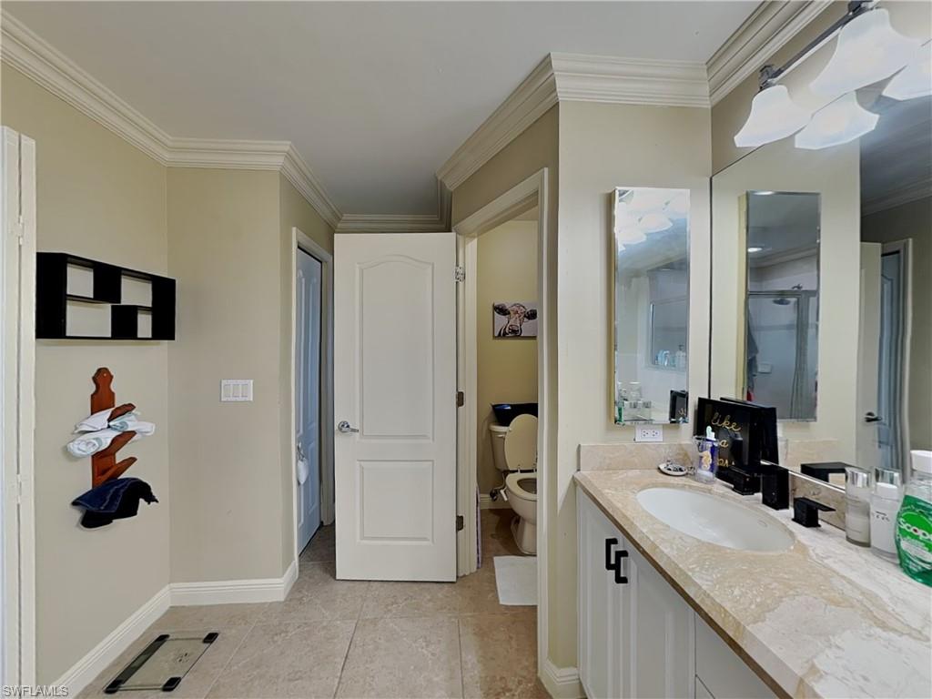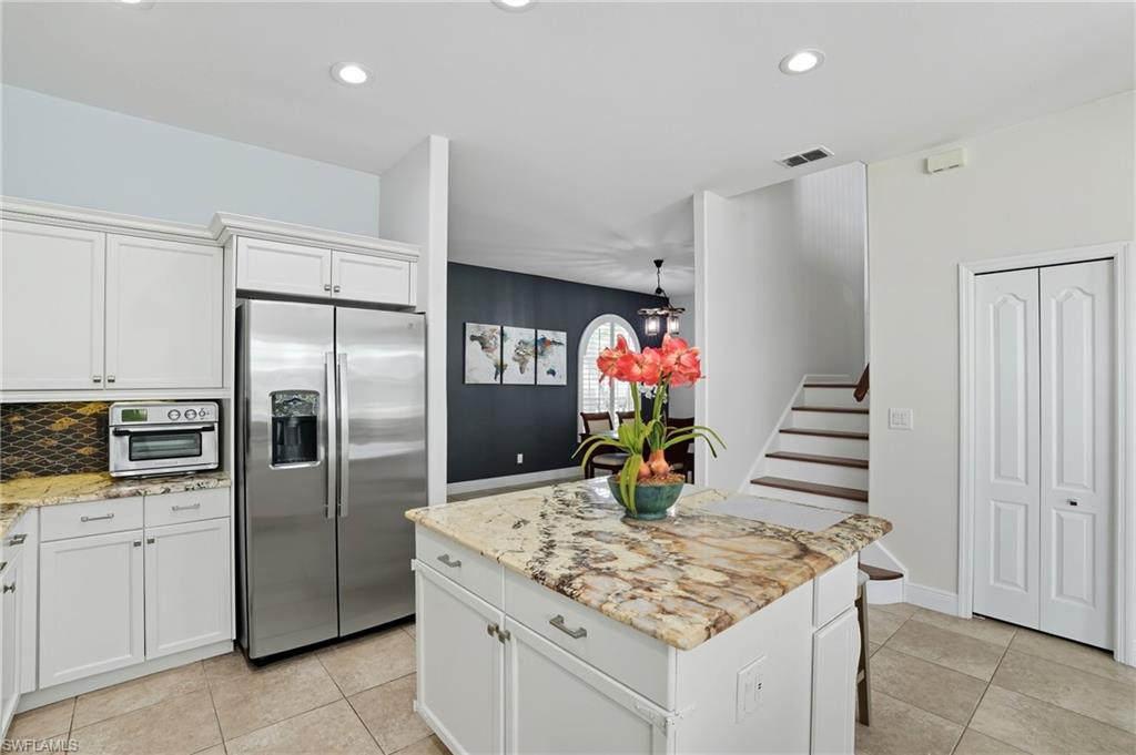 This beautifully updated estate home offers 5 bedrooms plus a den, 3 full baths, and a stunning outdoor living space with a heated pool and spa. The remodeled kitchen and baths bring a modern touch, featuring white shaker cabinets, quartz countertops, stainless steel appliances—including two dishwashers—and travertine tile throughout the main living areas. The first floor includes a bedroom, a den, and a full pool bath. Upstairs, you'll find four additional bedrooms, including the spacious master suite with two walk-in closets, a large remodeled bath with dual sinks, separate tub and shower, and even a washer and dryer for added convenience. Step out onto the private balcony and take in the serene golf course views. The extended covered lanai with paver tile surrounds the pool and spa, creating a perfect space to relax or entertain. A side load garage offers plenty of room for storage, golf cart or toys.Stoneybrook amenities offer something for everyone! Exercise room, 3 pools, tennis courts, pickleball, volleyball, playground, basketball, bocce ball and baseball field! The golf course is public so you can pay when you play. Conveniently located close to shopping, dining, interstate, beaches, university, and airport. Short walk to golf course clubhouse, CVS, Publix, Miromar mall and Hertz arena. 15 minutes from airport baggage claim. Low association fees and great amenities make Stoneybrook a popular choice!