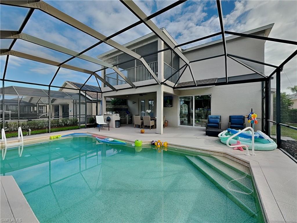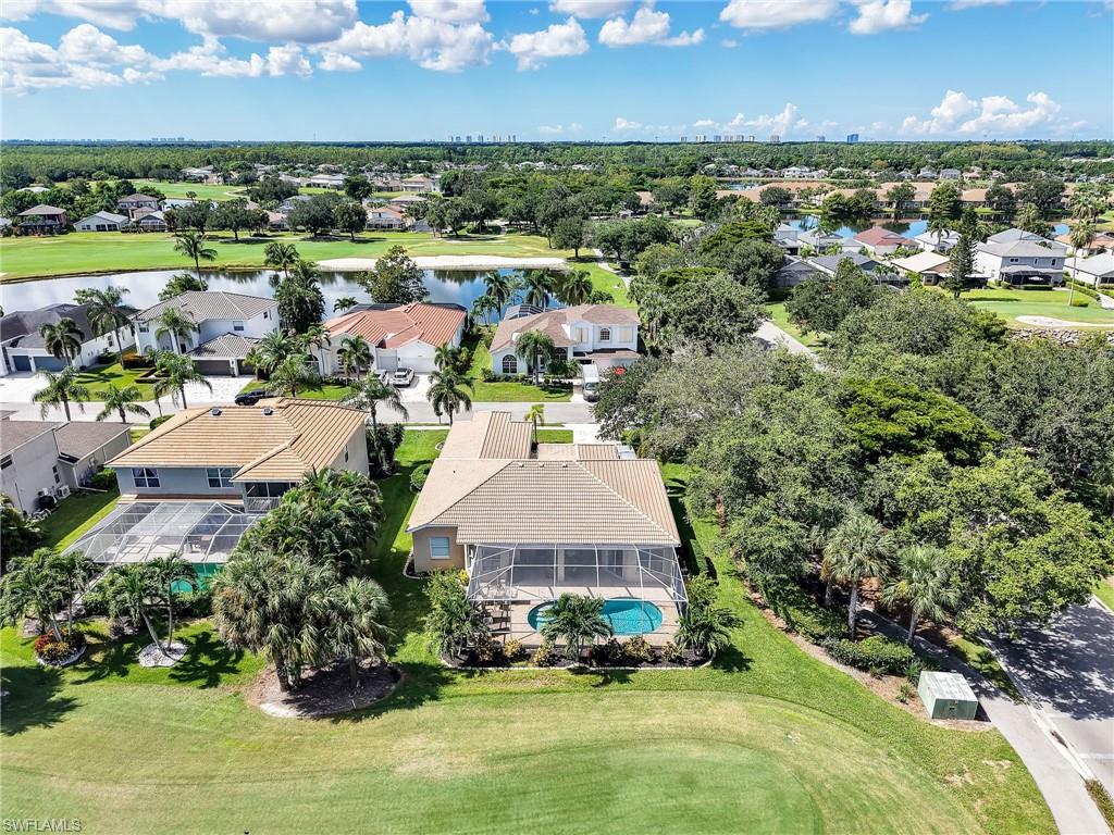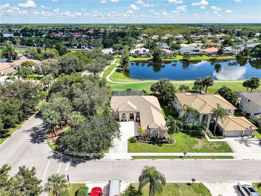 This spacious and beautifully upgraded 5 bedroom + bonus room, 3.5 bath lakefront pool home offers 3,898 square feet of living space and a flexible floor plan designed for comfort and functionality. Separate living, dining, and family rooms provide ample space for everyday living and entertaining. The kitchen overlooks the family room and opens to the screened lanai with heated pool and spa, all set against scenic lake and preserve views. Impact-resistant hurricane glass windows and sliding doors offer added protection and energy efficiency, while whole-house solar panels help keep electric costs low. The oversized primary suite features an ensuite bath with dual sinks, soaking tub, and separate shower. Upstairs, a large bonus room over the garage offers endless possibilities as a media room, game room, or home office. This well-maintained home combines space, upgrades, and a peaceful setting in one exceptional property.Stoneybrook amenities offer something for everyone! Exercise room, 3 pools, tennis courts, pickleball, volleyball, playground, basketball, bocce ball and baseball field! The golf course is public so you can pay when you play. Conveniently located close to shopping, dining, interstate, beaches, university, and airport. Short walk to golf course clubhouse, CVS, Publix, Miromar mall and Hertz arena. 15 minutes from airport baggage claim. Low association fees and great amenities make Stoneybrook a popular choice!